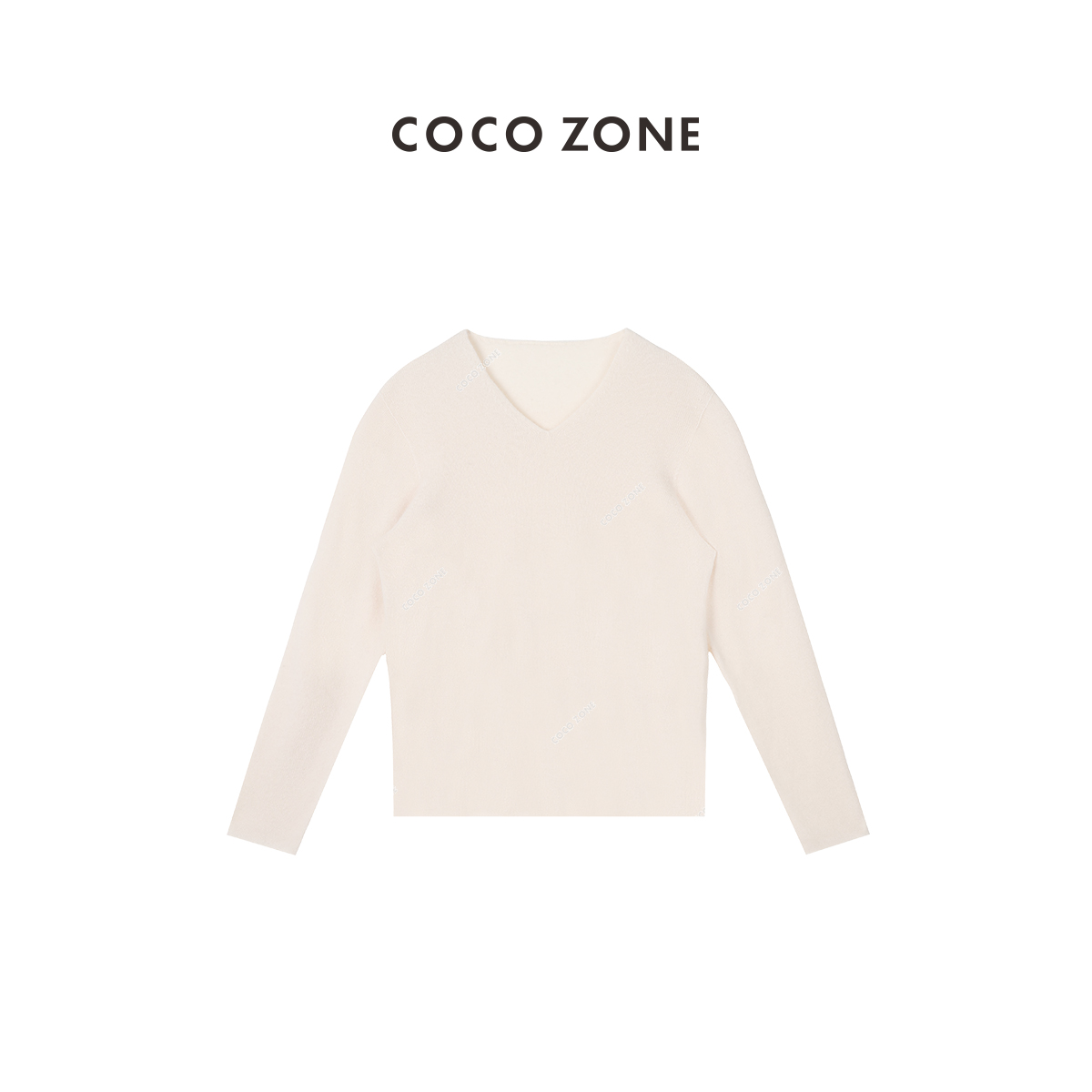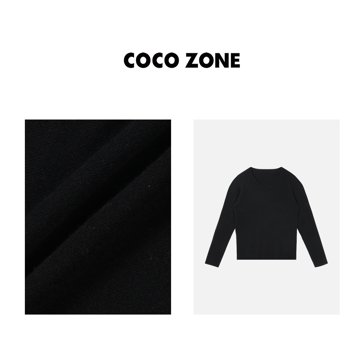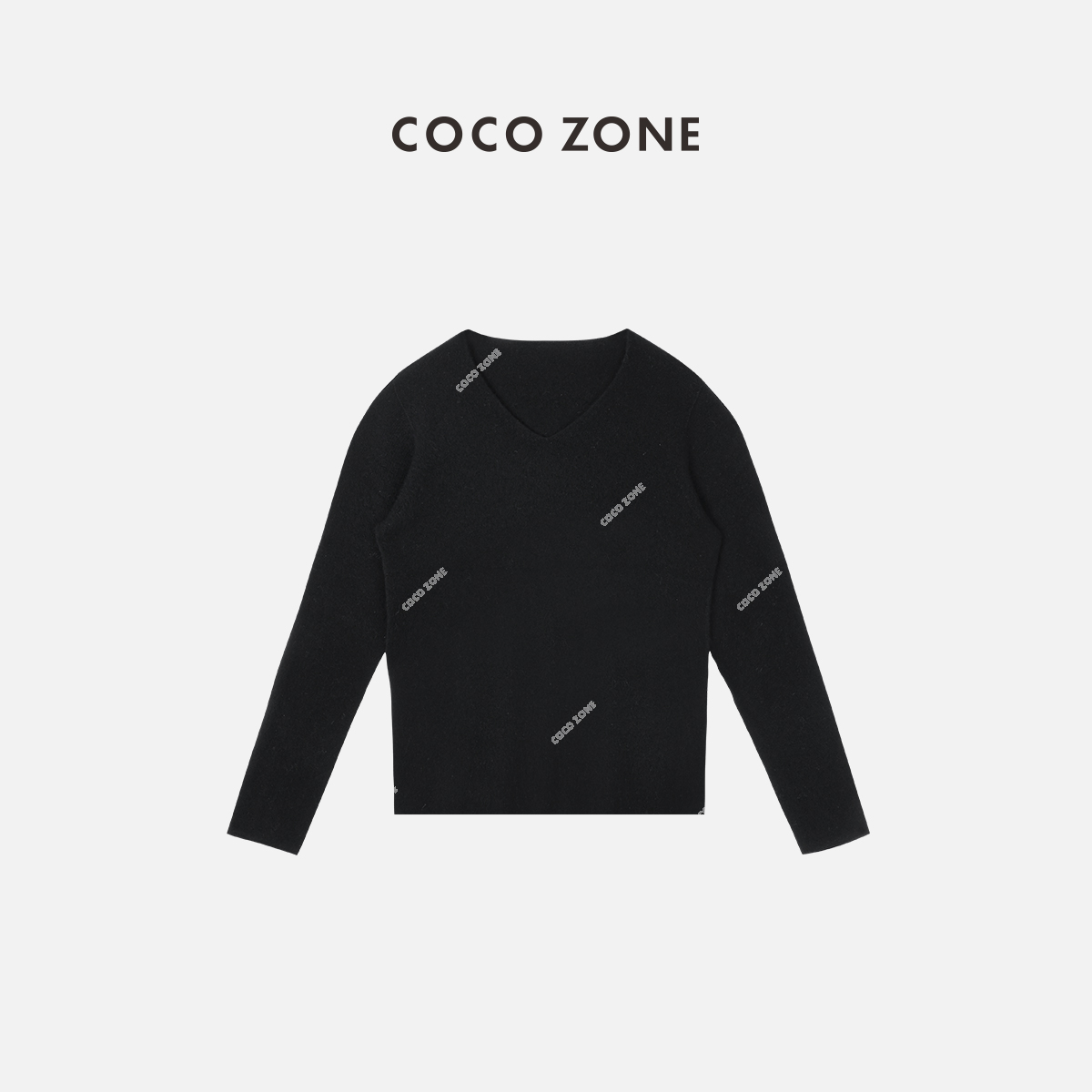 COCO ZONE100%羊毛早秋针织衫V领长袖修身打底衣23C29962