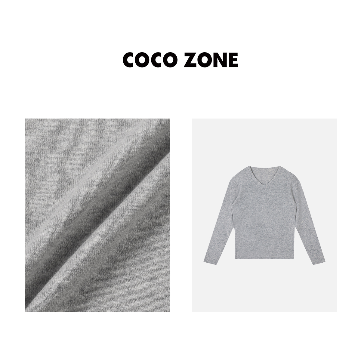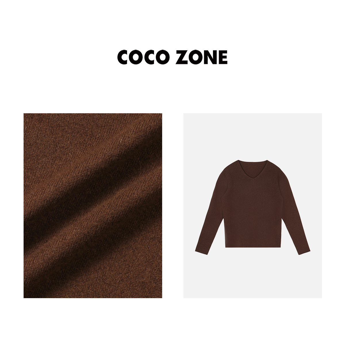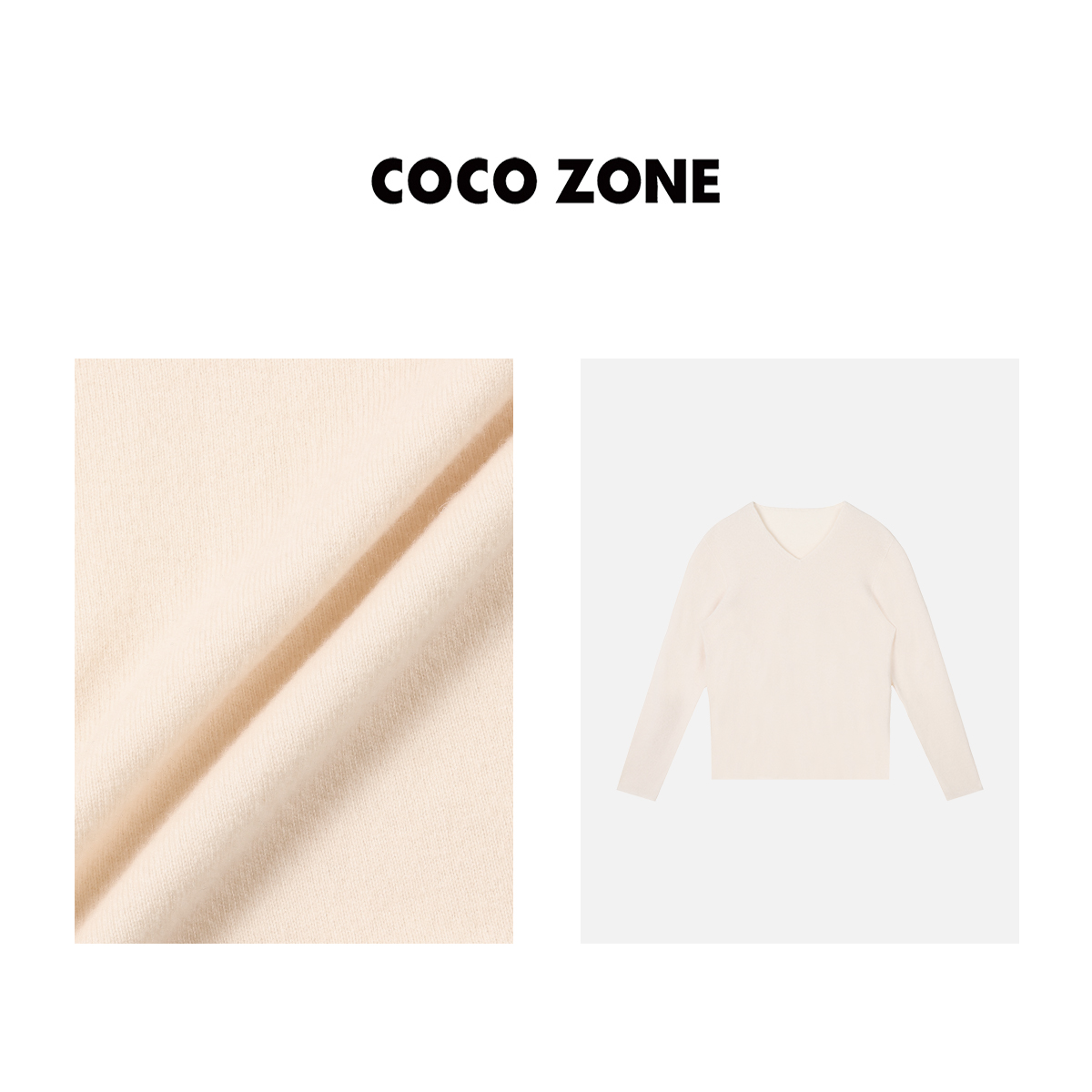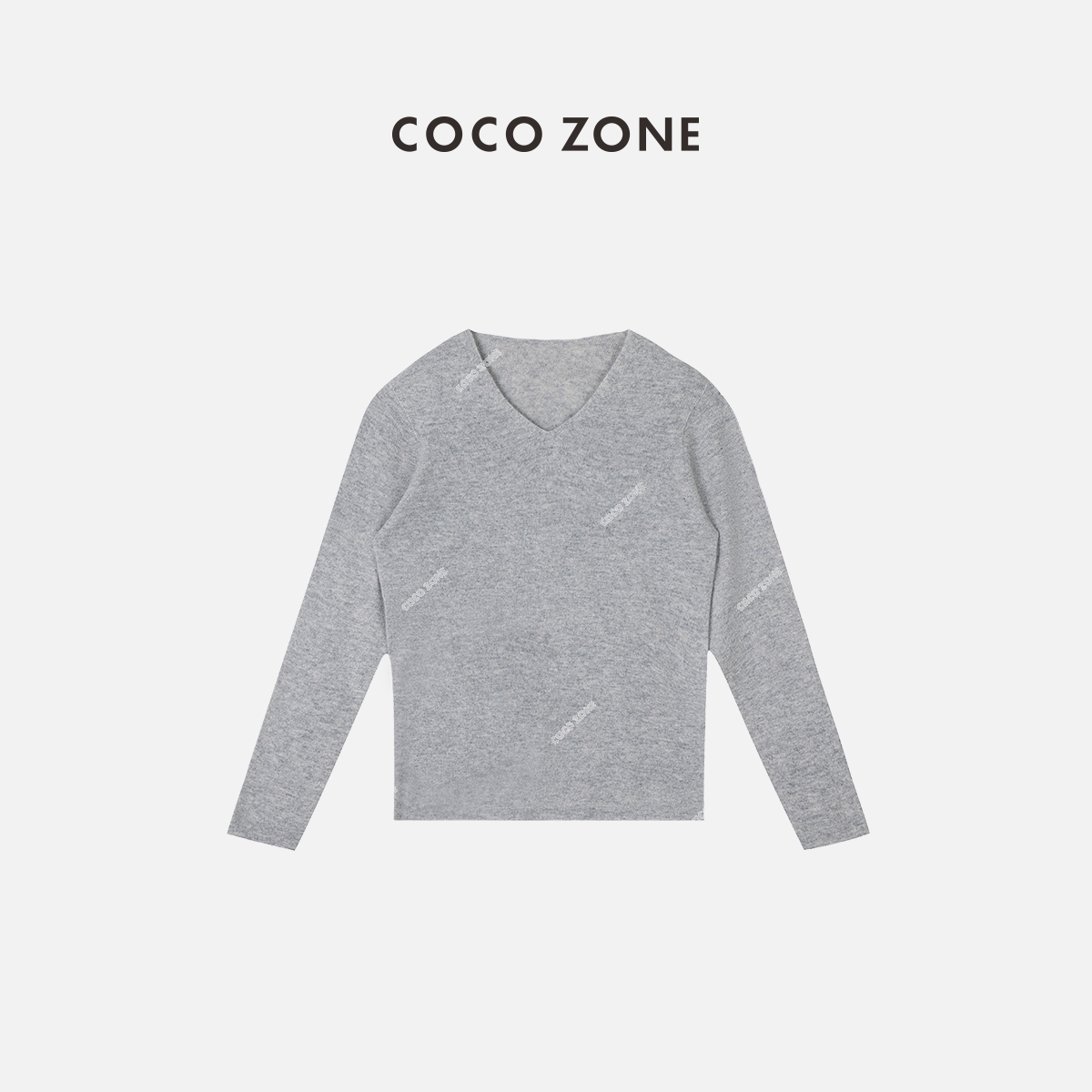 COCO ZONE100%羊毛早秋针织衫V领长袖修身打底衣23C29962