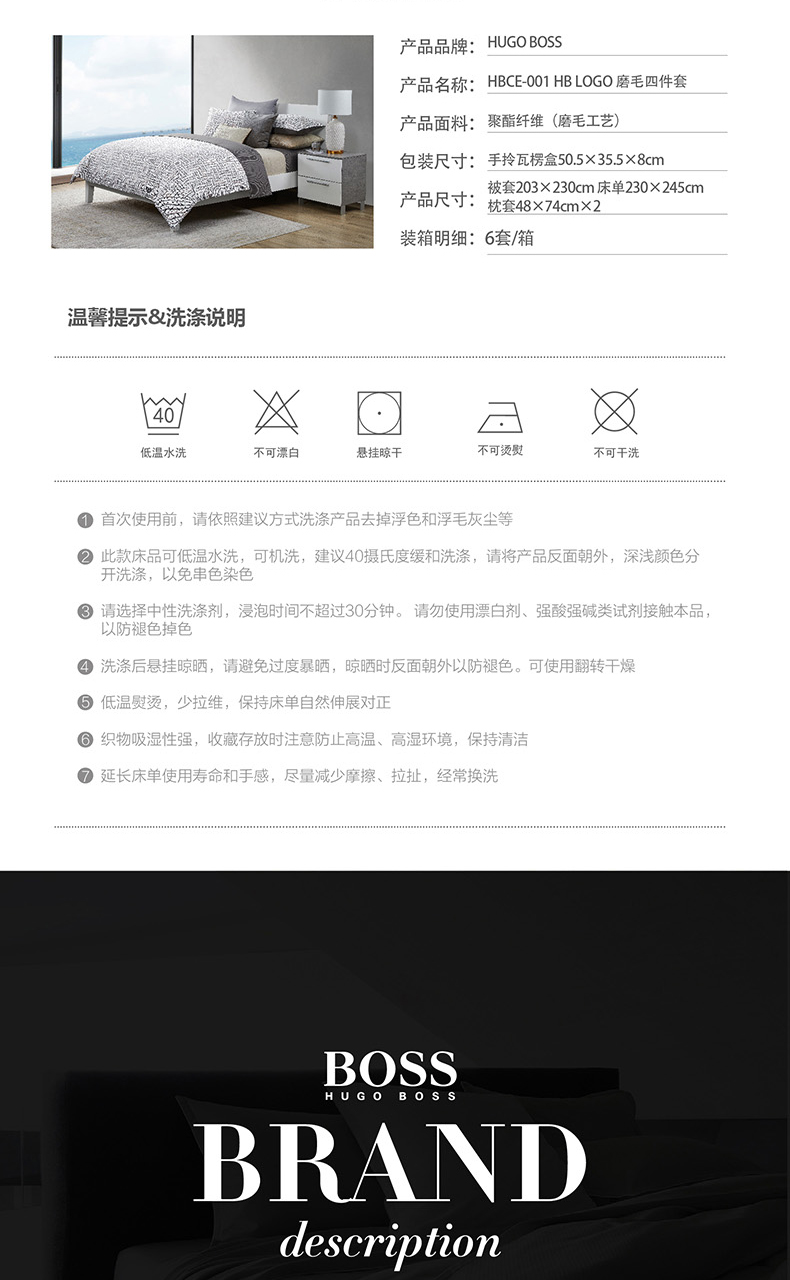 【鼎】BOSS HUGO BOSS精品床品四件套特价清仓