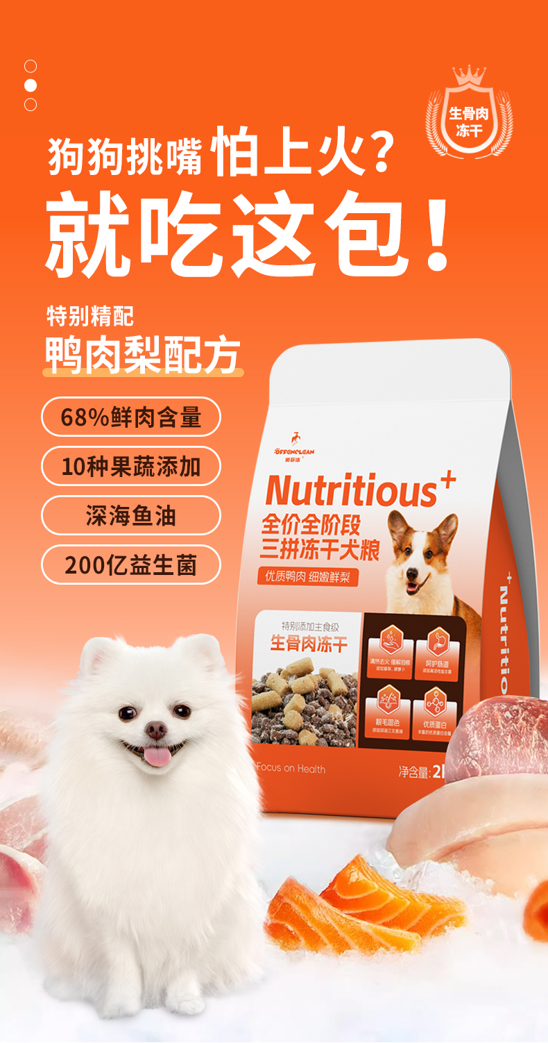 奥芬洁三拼冻干犬粮-鸭肉梨配方-2kg