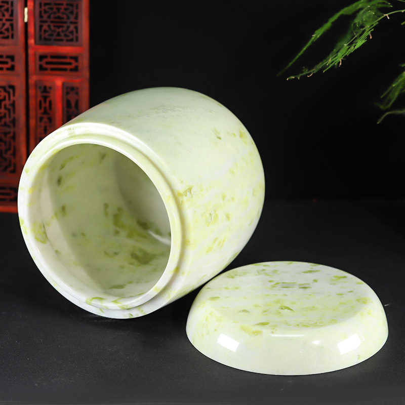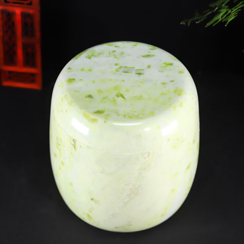 天然玉石骨灰坛蓝田玉净面骨灰桶骨灰盒22.5*23cm