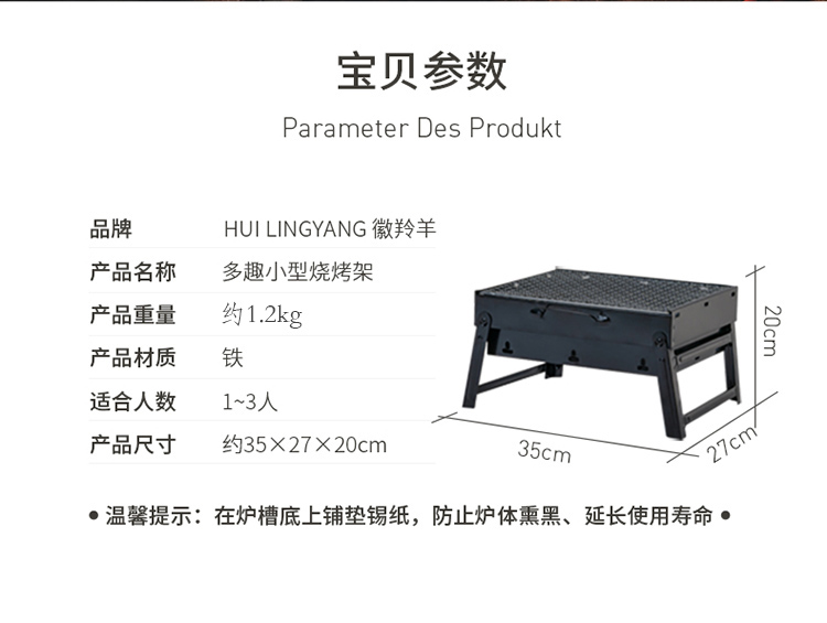徽羚羊 户外折叠轻便迷你烧烤炉烧烤架 烤架尺寸35*27*20
