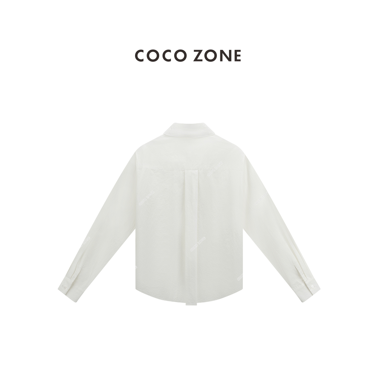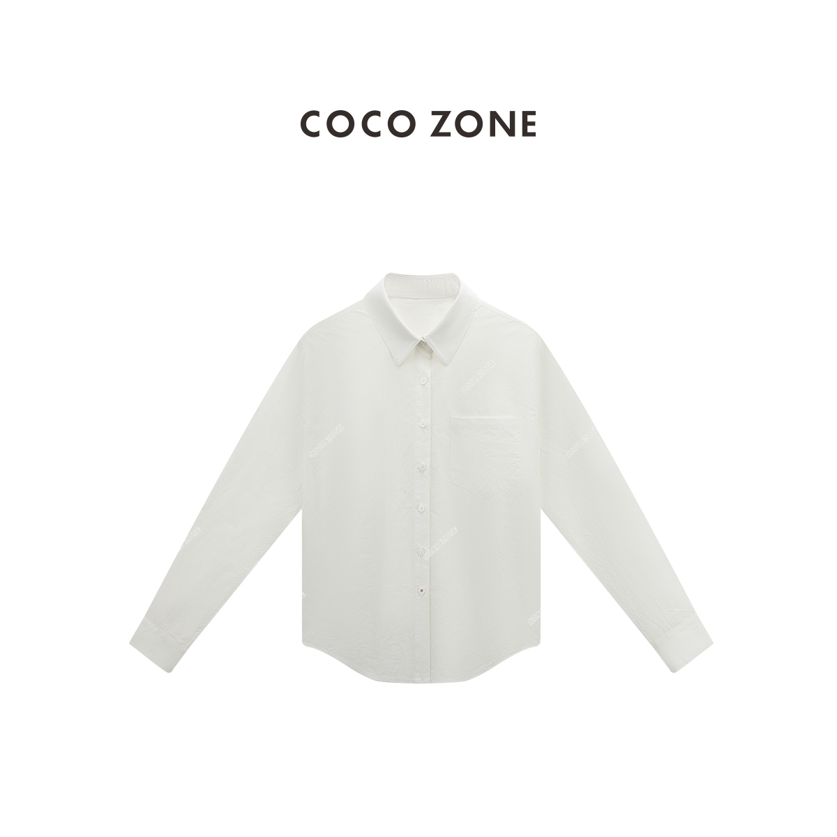 COCO ZONE 100棉夏季薄款翻领衬衫简约长袖上衣CC1B1531