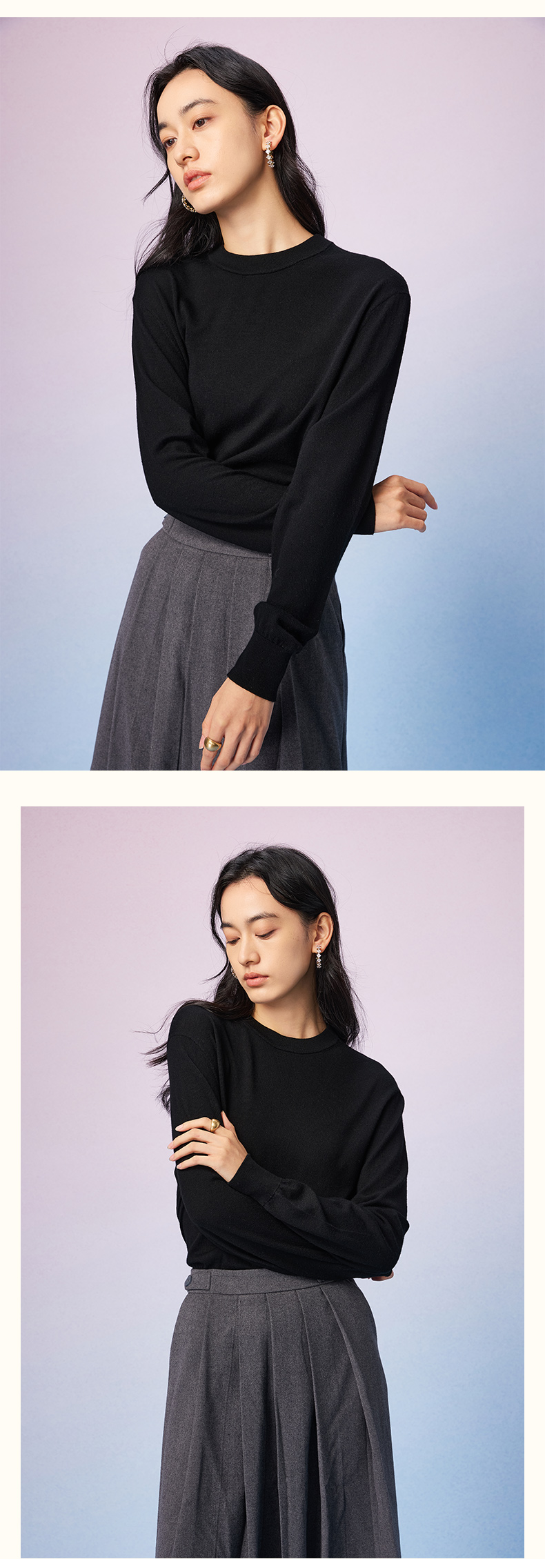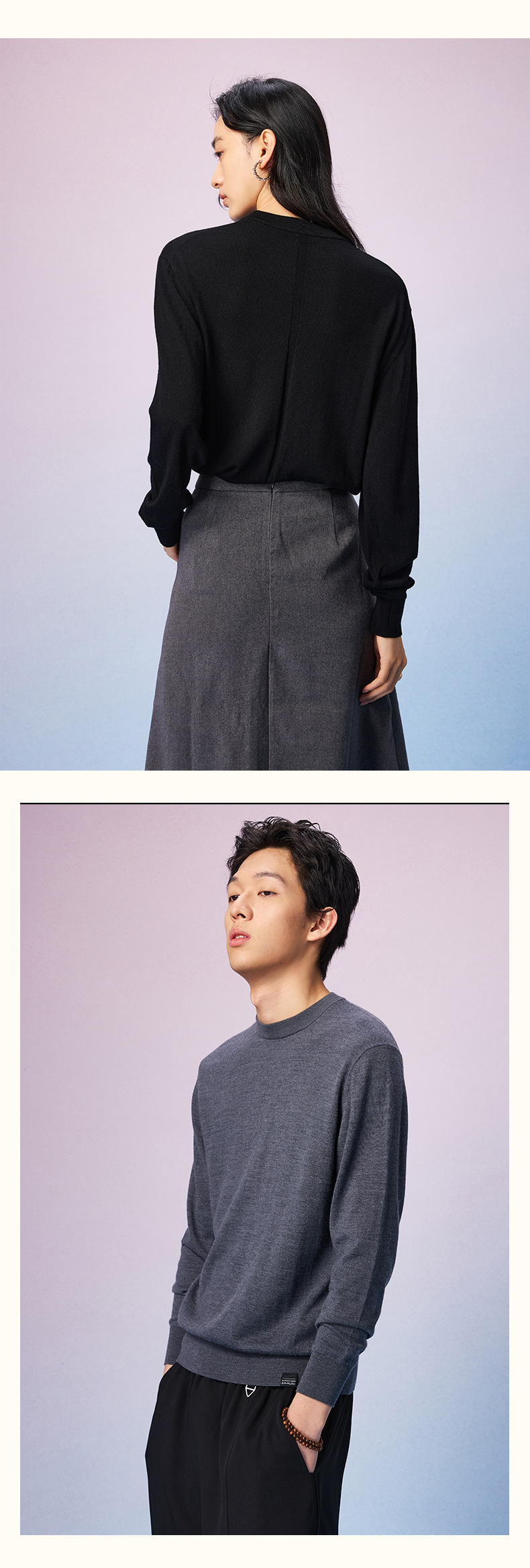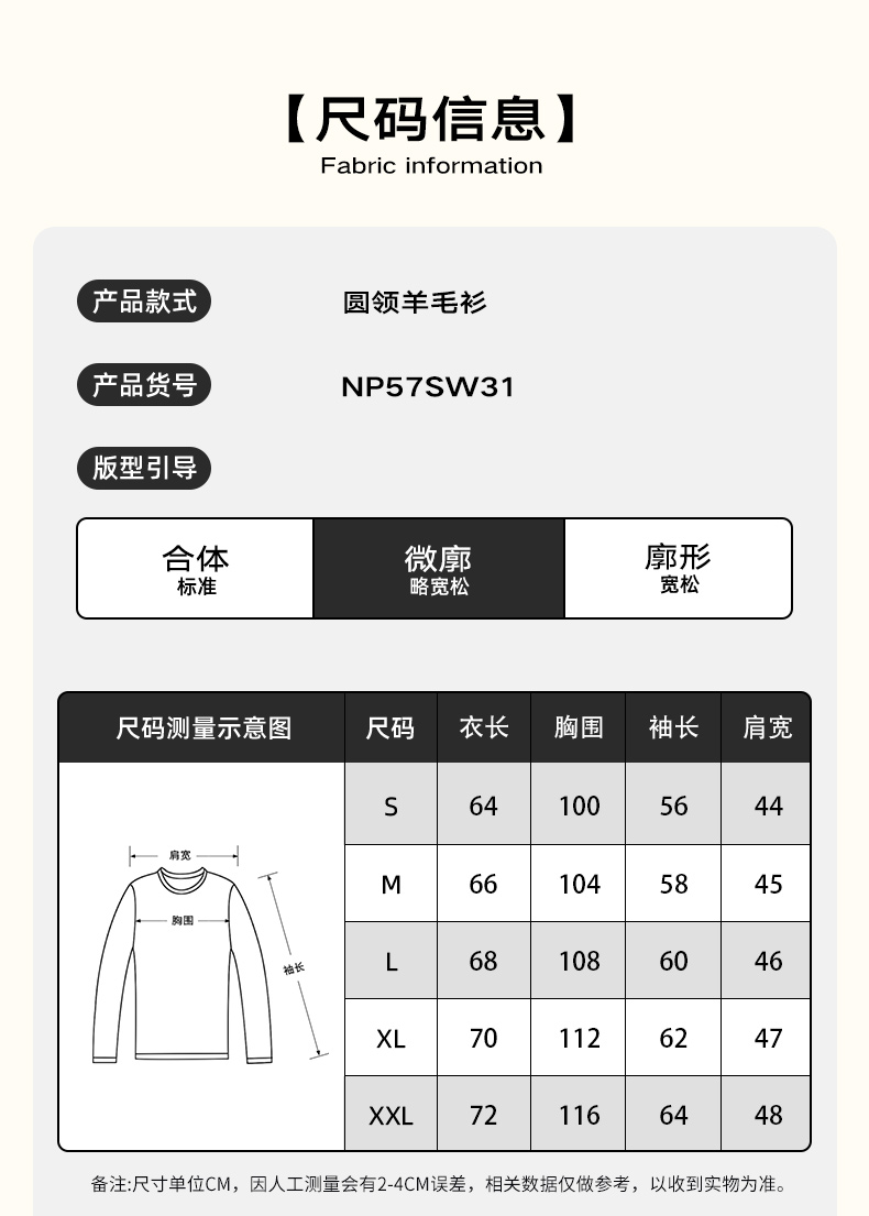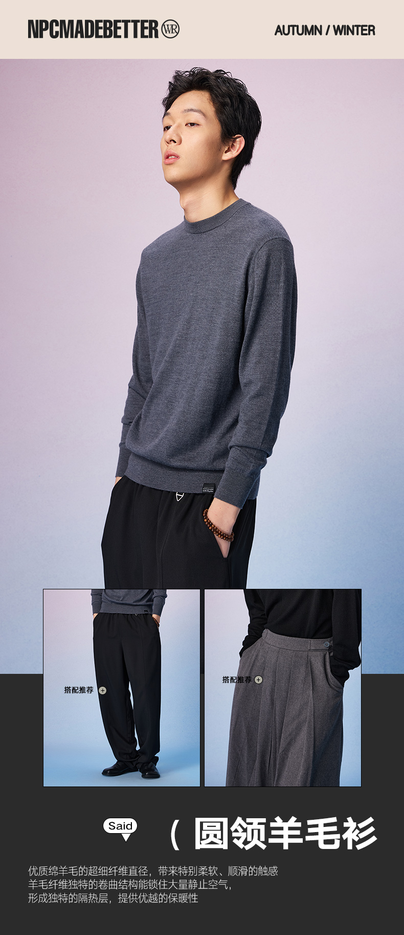 NPC潮牌100%羊毛简约纯色羊毛衫微廓形落肩男圆领秋季NP57SW31