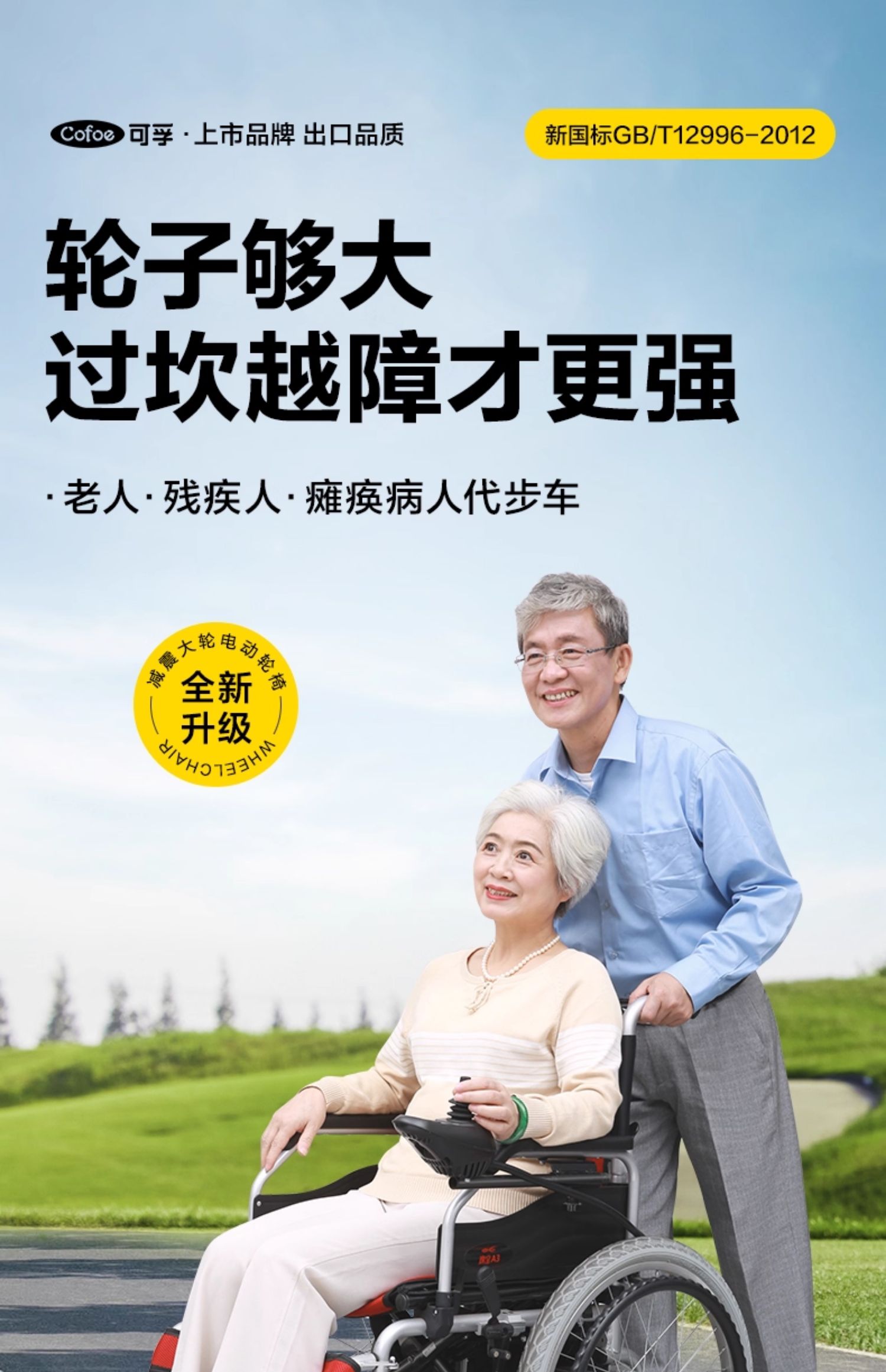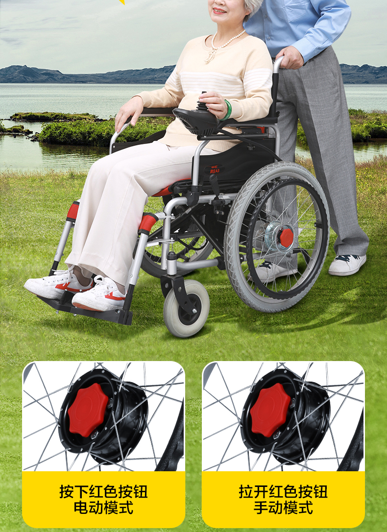 电动轮椅老年人残疾人代步车大轮带手推圈智能全自动越野农村专用