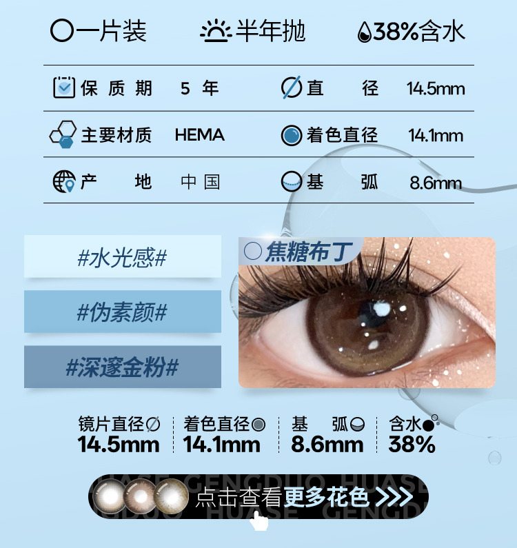 新款【焦糖布丁】14.5大直径半年抛美瞳1片装