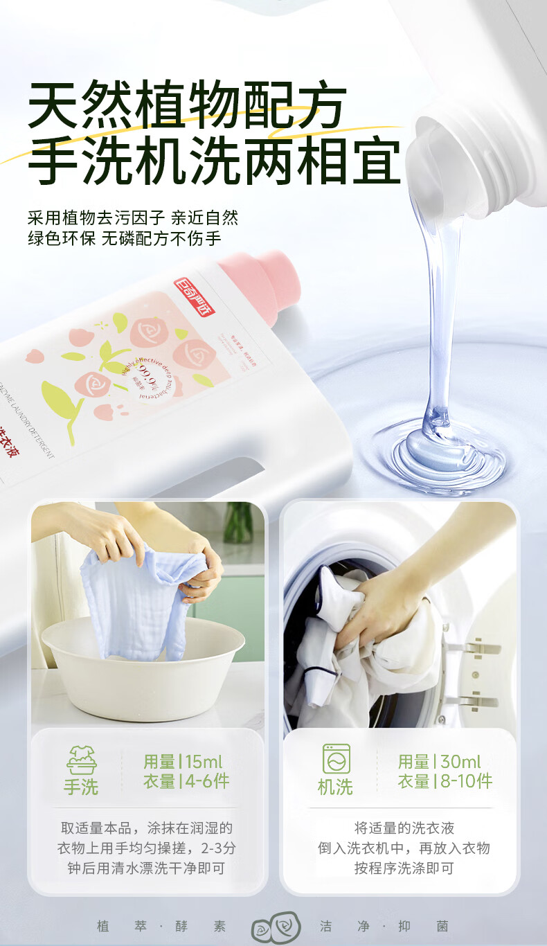 蓝月亮茉莉清香洁净洗衣液3kg+茉莉清香洁净洗衣液袋装500g*2