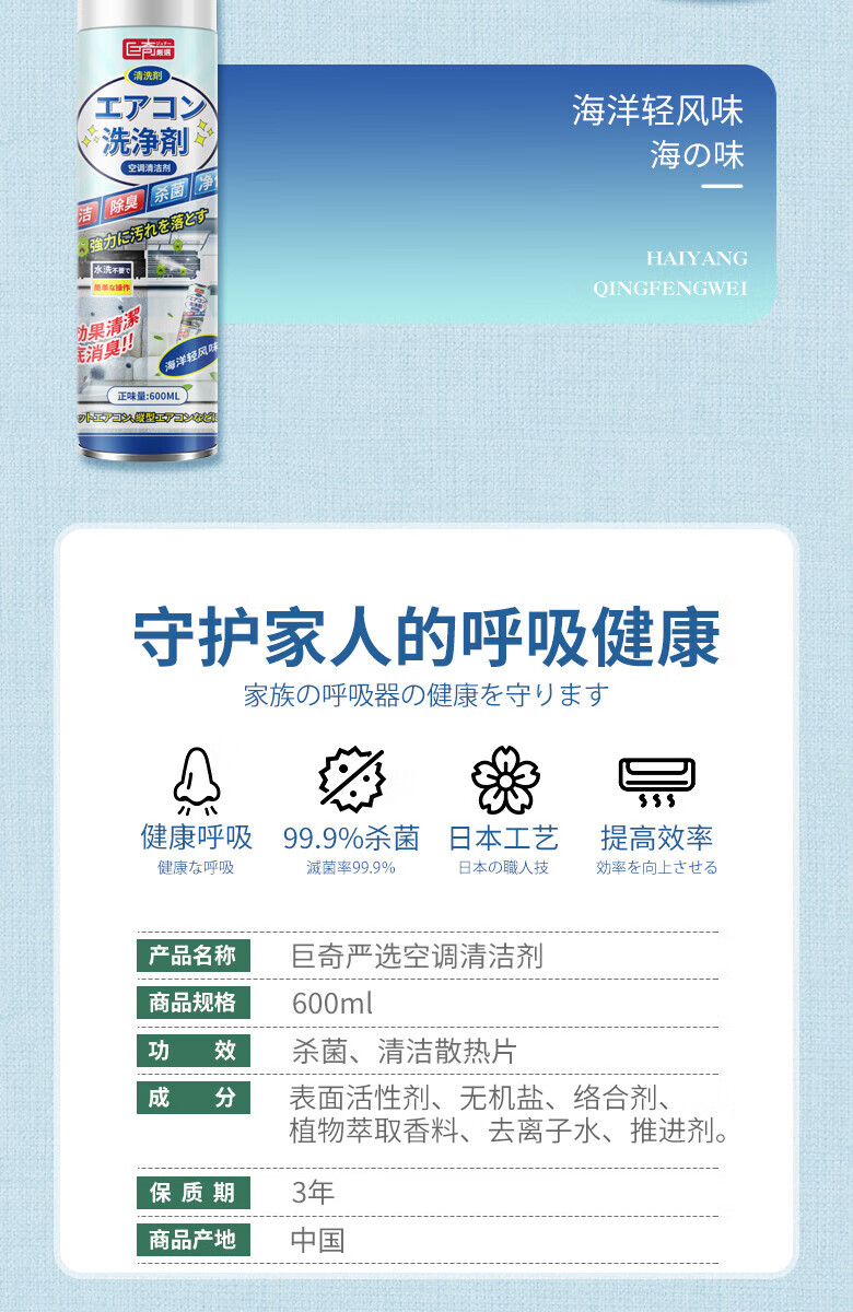 巨奇-空调清洗泡泡-海洋味600ml