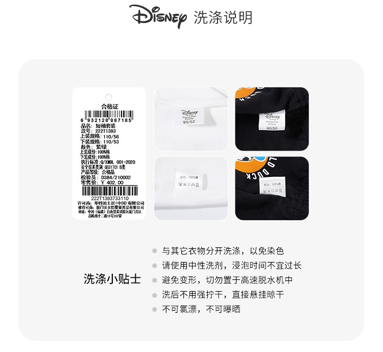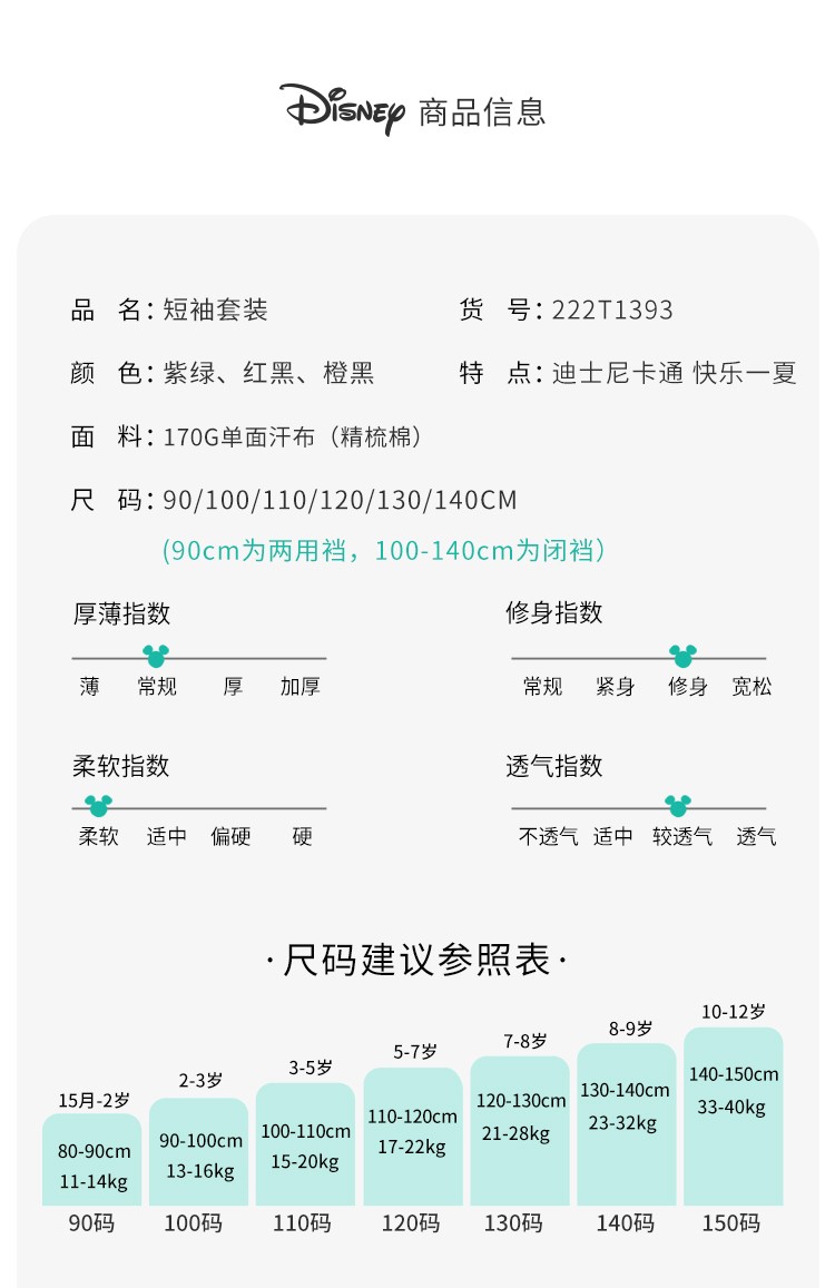 迪士尼套装儿童套装清凉夏日米奇唐老鸭系列卡通短袖套装222T1393