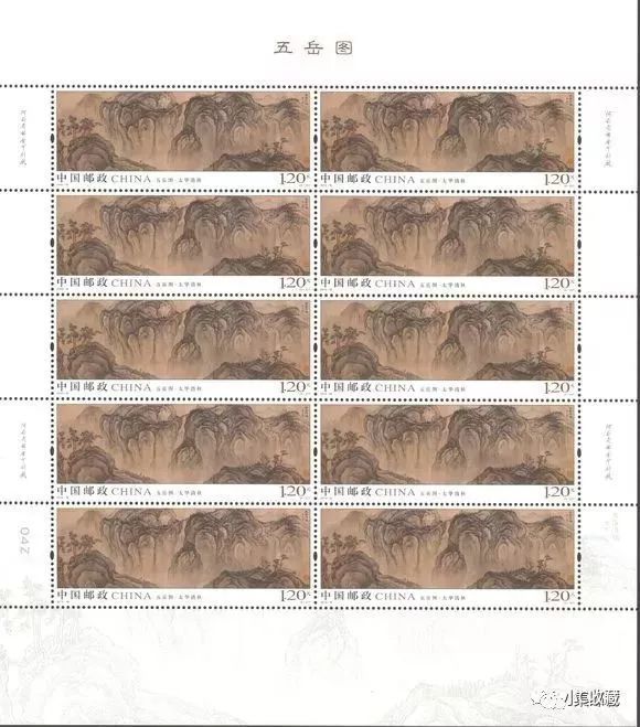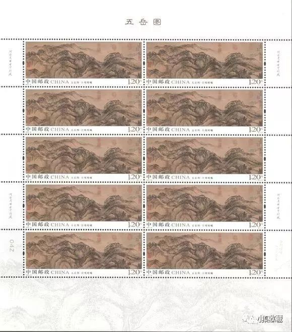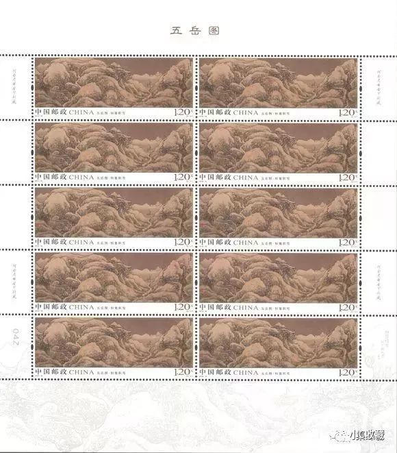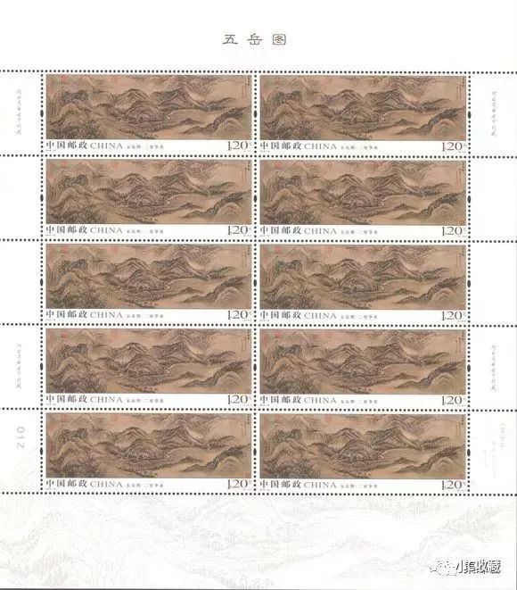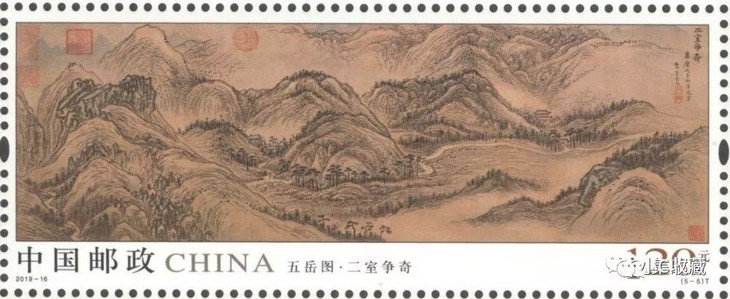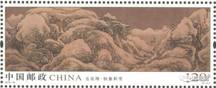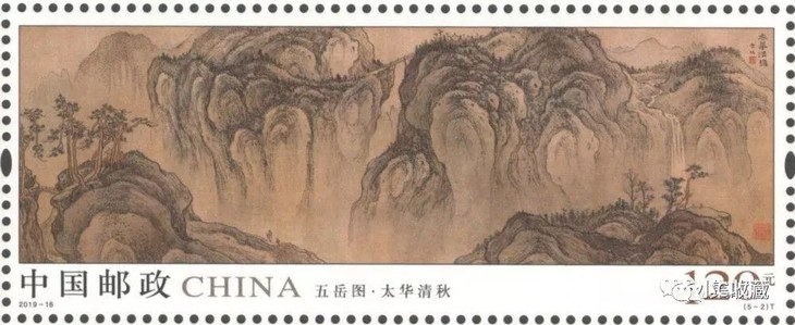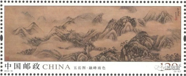 中国邮政定于2019年8月3日发行《五岳图》特种邮票1套5枚,小全张1枚。
