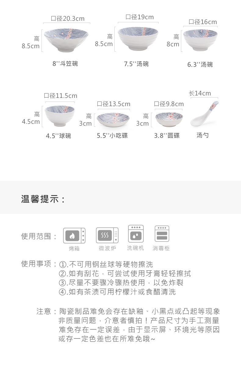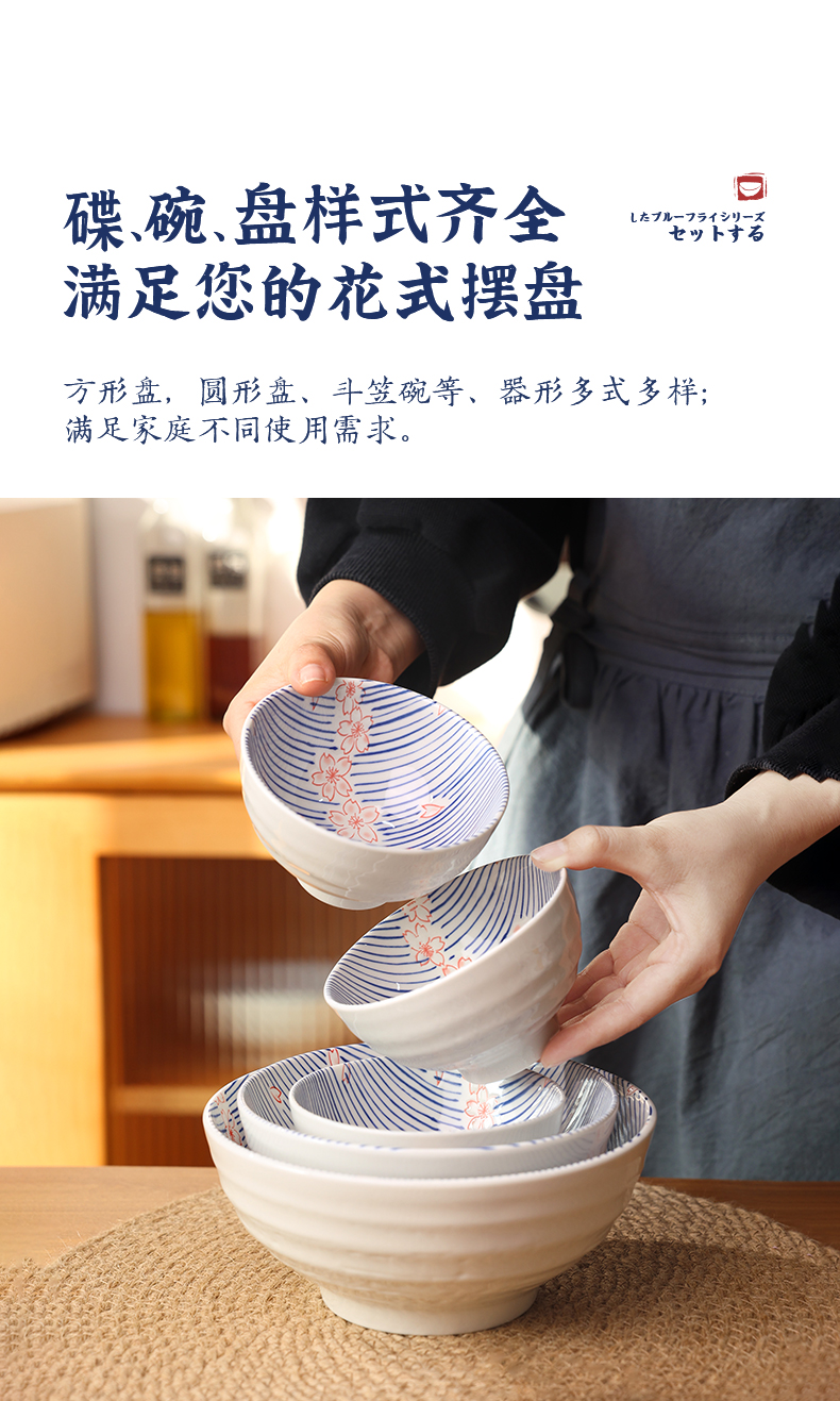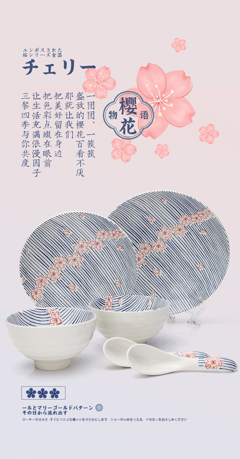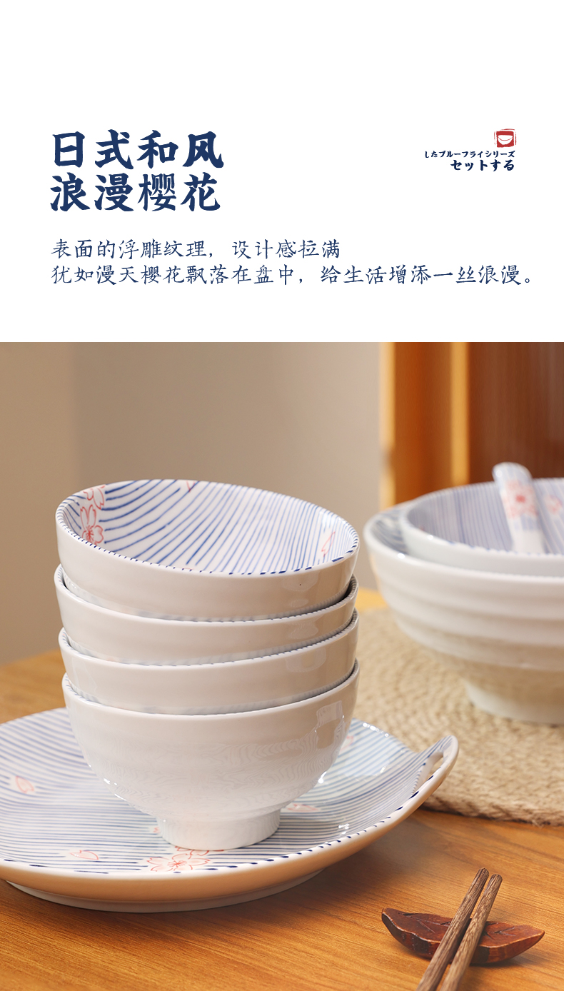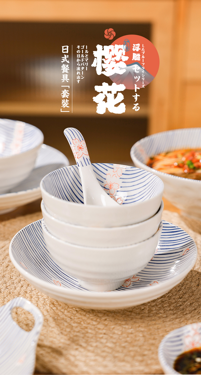 【粉樱浮雕系列餐具】日式樱花浮雕餐具创意碗碟套装家用陶瓷饭碗面碗汤碗菜盘子加厚