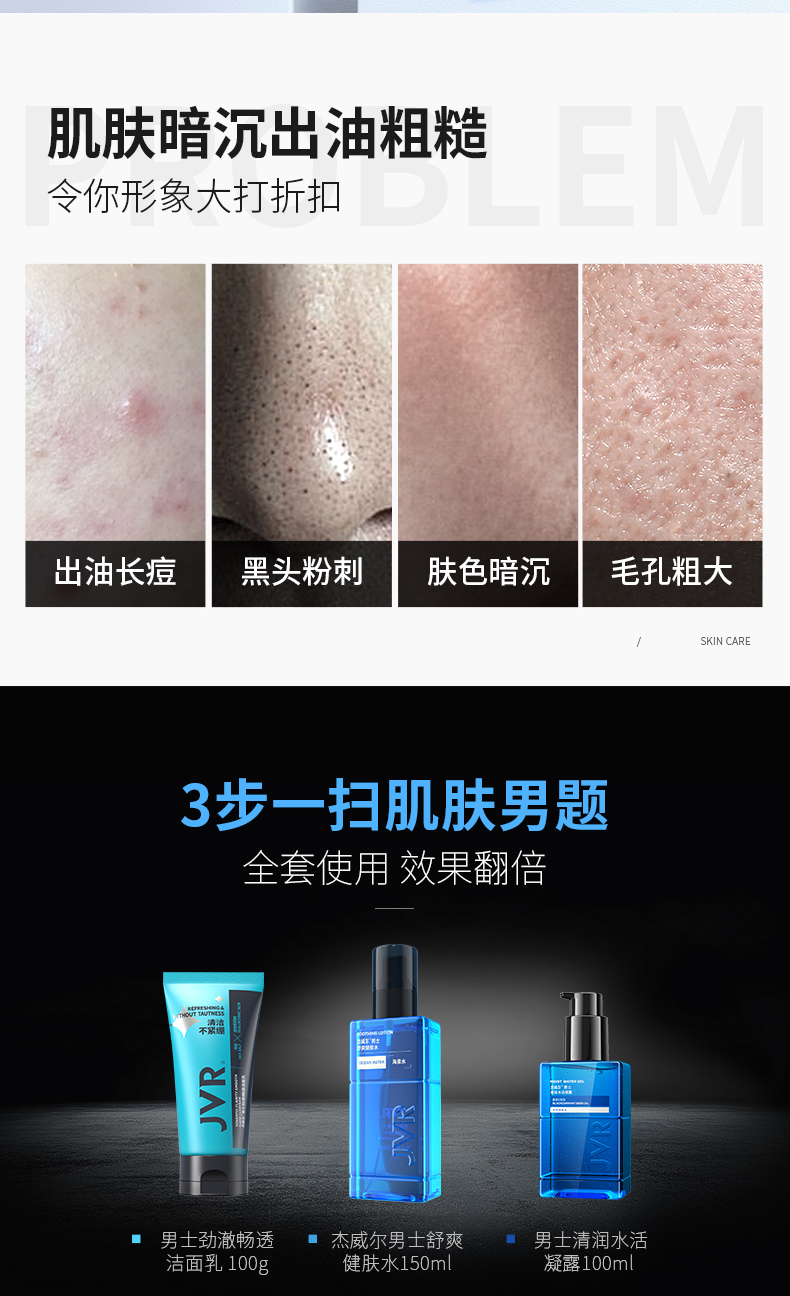 【店铺热卖】杰威尔男士洁面膏补水保湿水乳液套装洗面奶爽肤水脸部面部护肤品夏