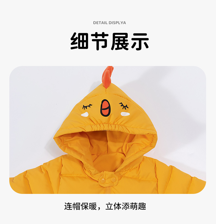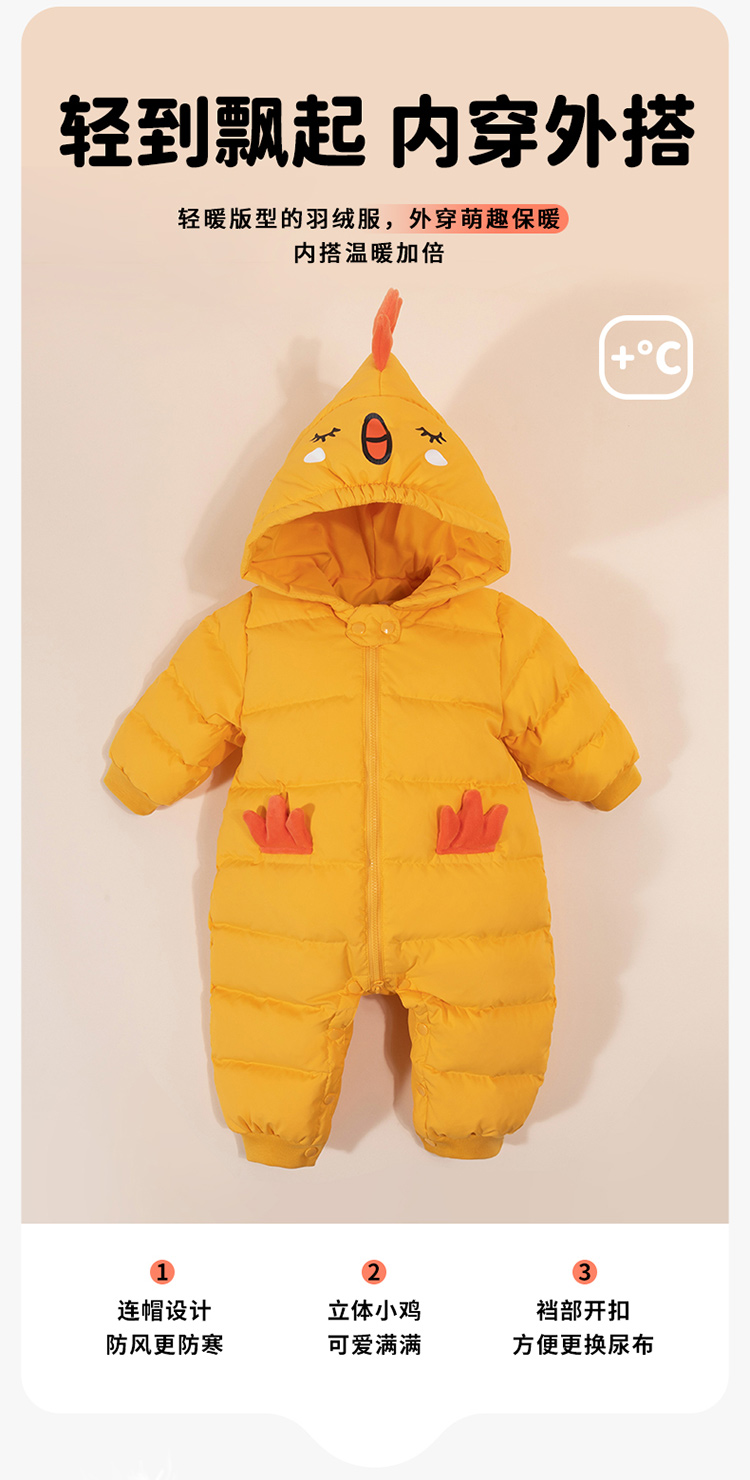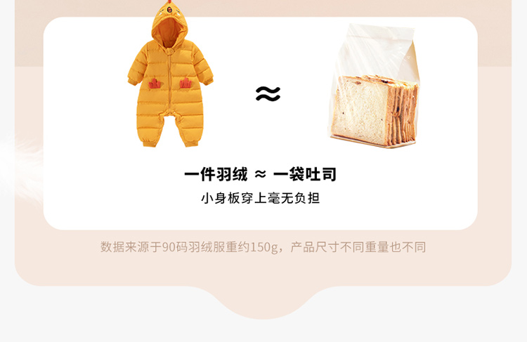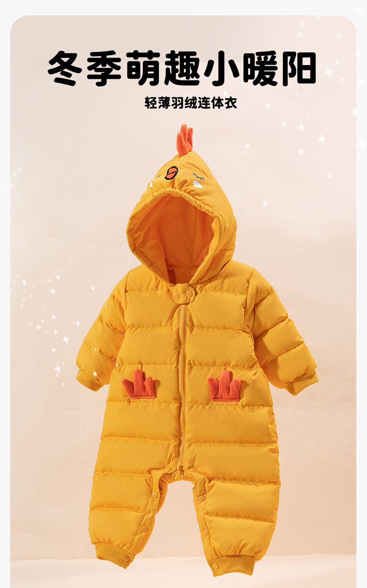 贝贝怡童装婴幼儿连身衣加绒保暖羽绒服男女童可爱外套连帽哈衣234L2066