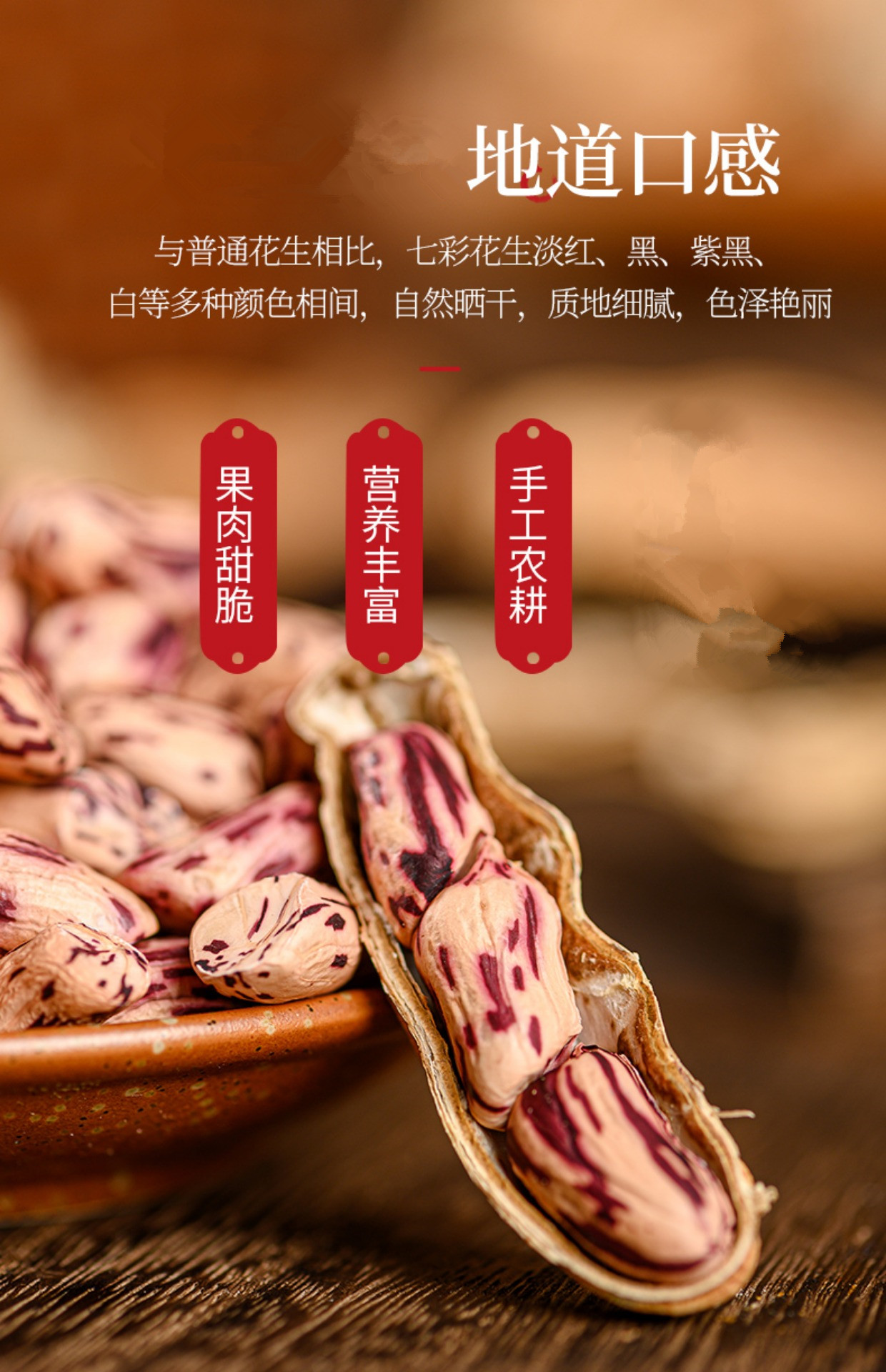 云南高山七彩花生500g 带壳熟彩色花生 新鲜晒干