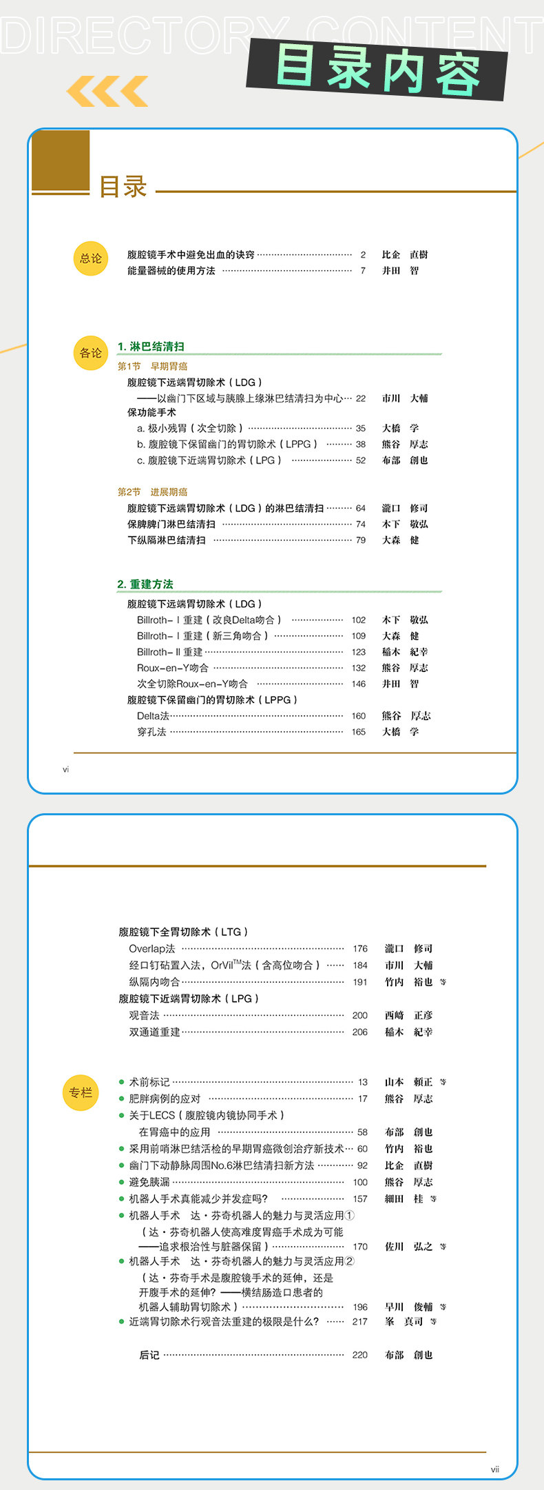 本书分为总论、各论、专栏三个部分,在总论中介绍了腹腔镜手术不出血的诀窍,器械的使用方法。各论部分介绍了关于胃的腹腔镜手术,采用了现在关注度很高的淋巴节郭清、再建法的手法,并将各手术的诀窍投射到手绘插图上。专栏部分细致地叙述了日本胃外科领域的著名专家们的经验。另外,还介绍了机器人手术、腹腔镜、内视镜联合手术等实践性技术。对临床医生的帮助很大。