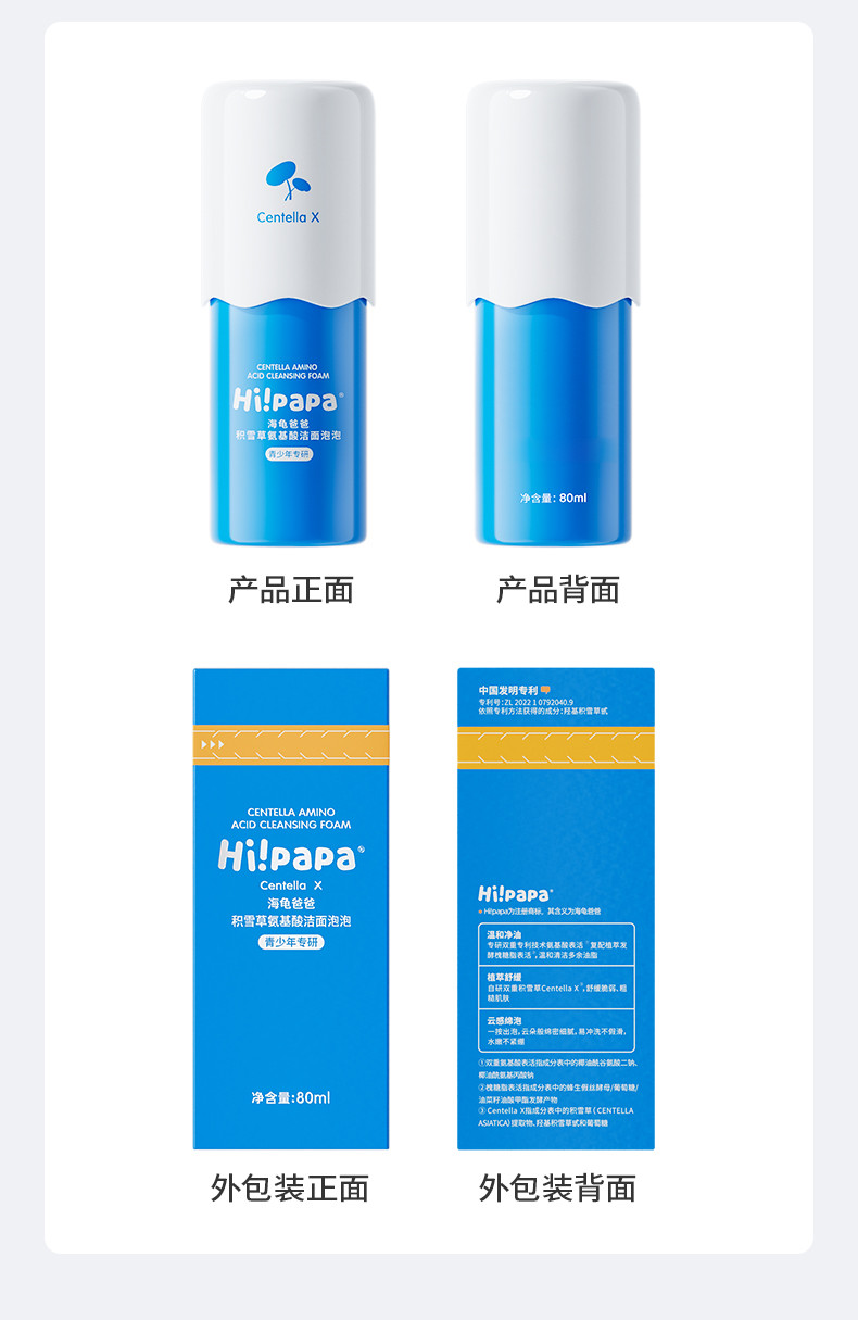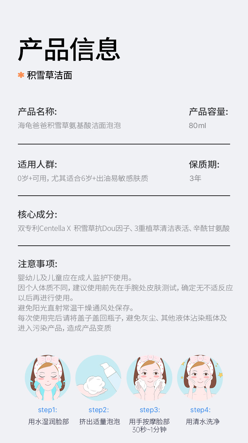 【源码】海龟爸爸积雪草氨基酸洁面泡泡洗面奶80ml青少年专研