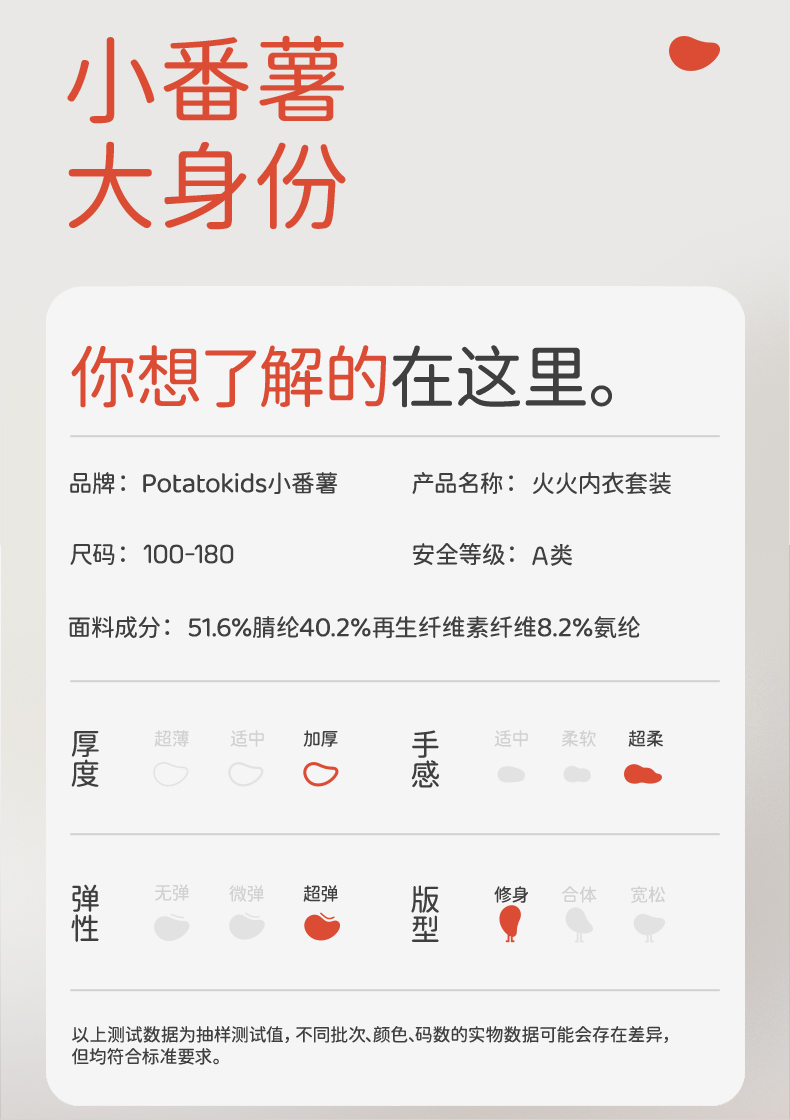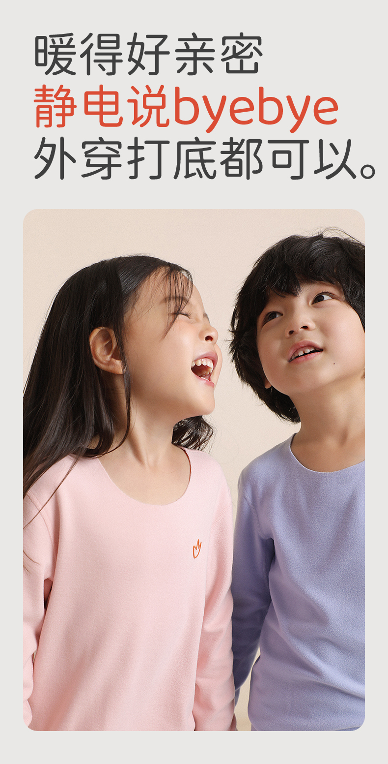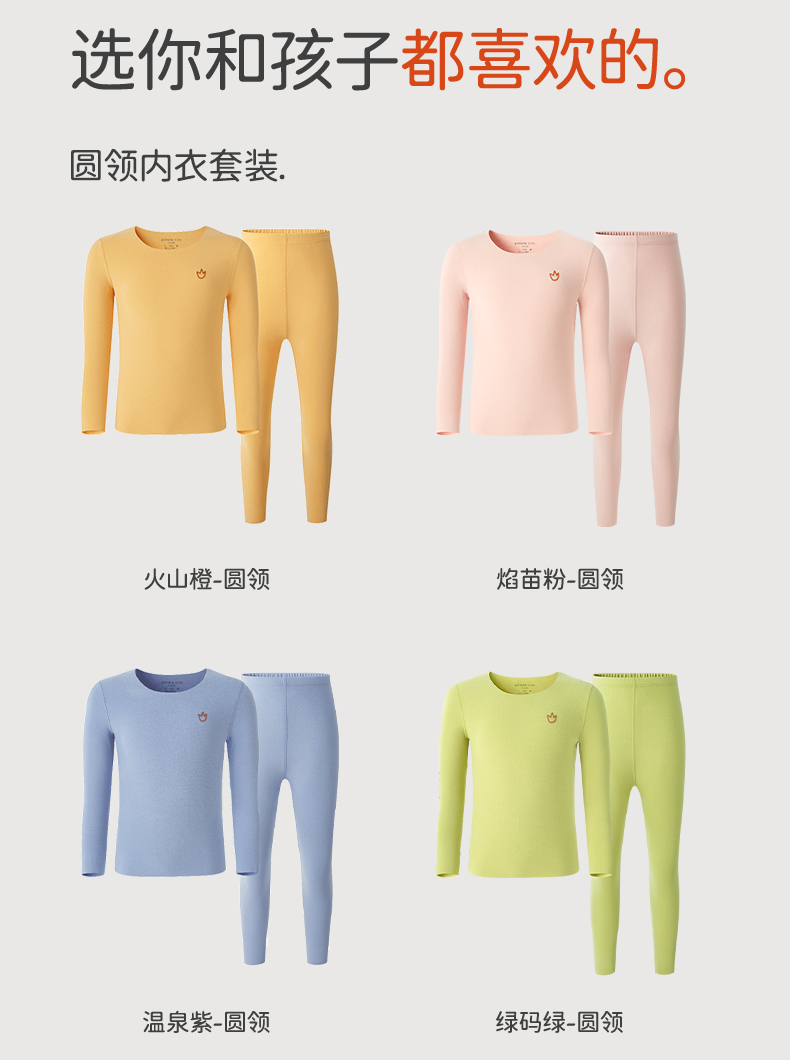 小番薯potatokids秋冬儿童轻暖锁温透气随心裁打底内衣套装PA36154321