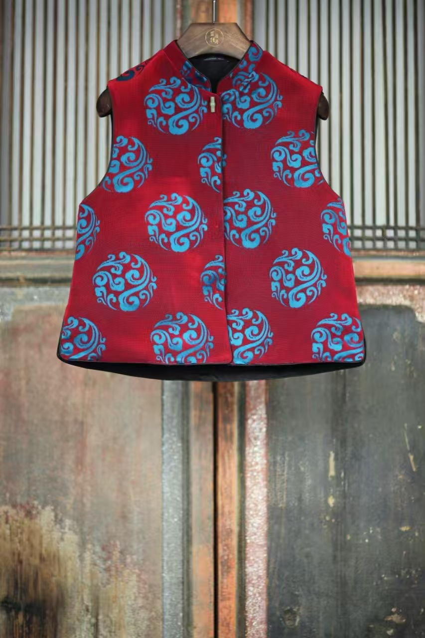 盛唐牡丹| 海浪花纹真丝漳缎马甲