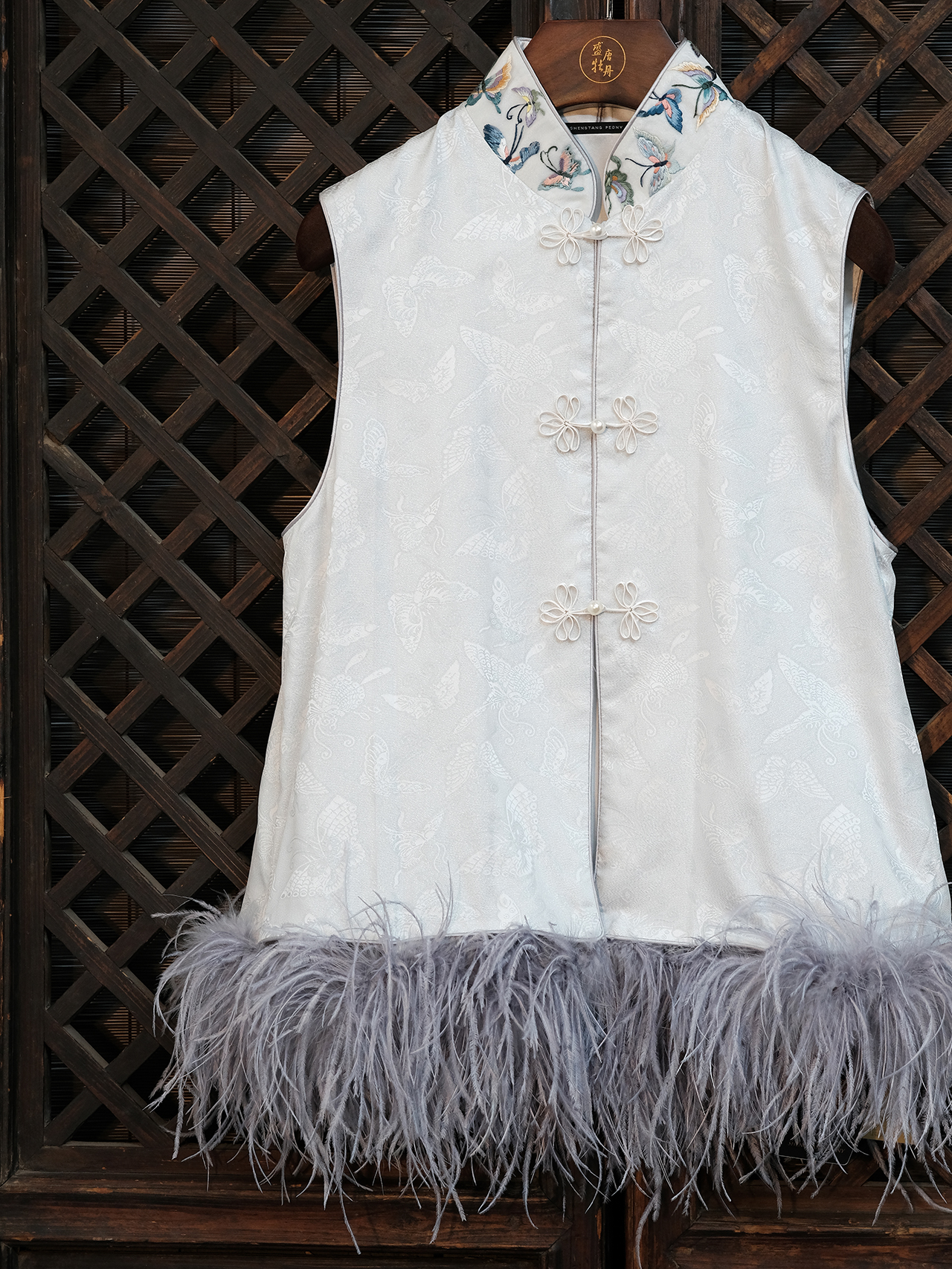 盛唐牡丹|百蝶手绣皮草马甲