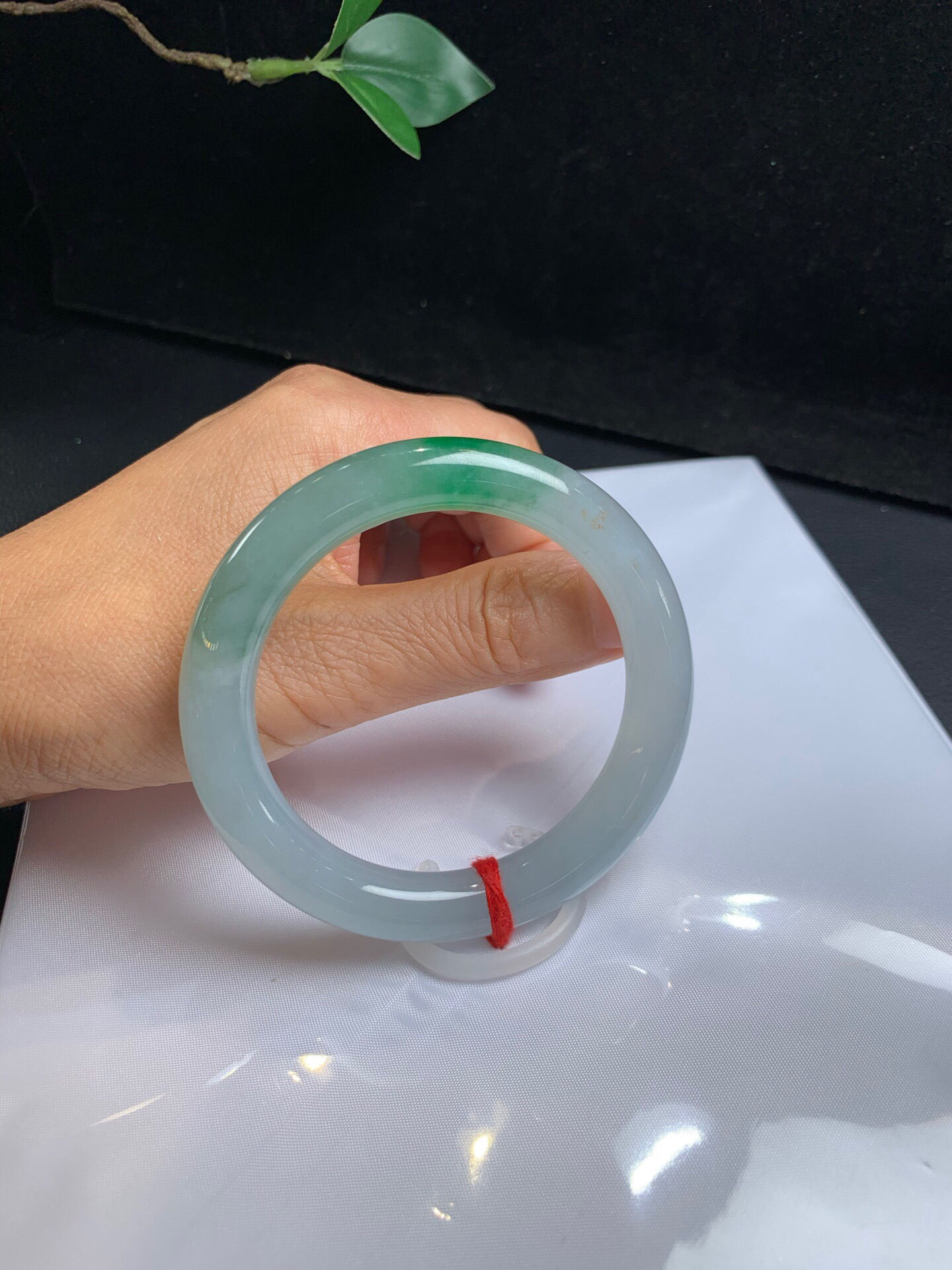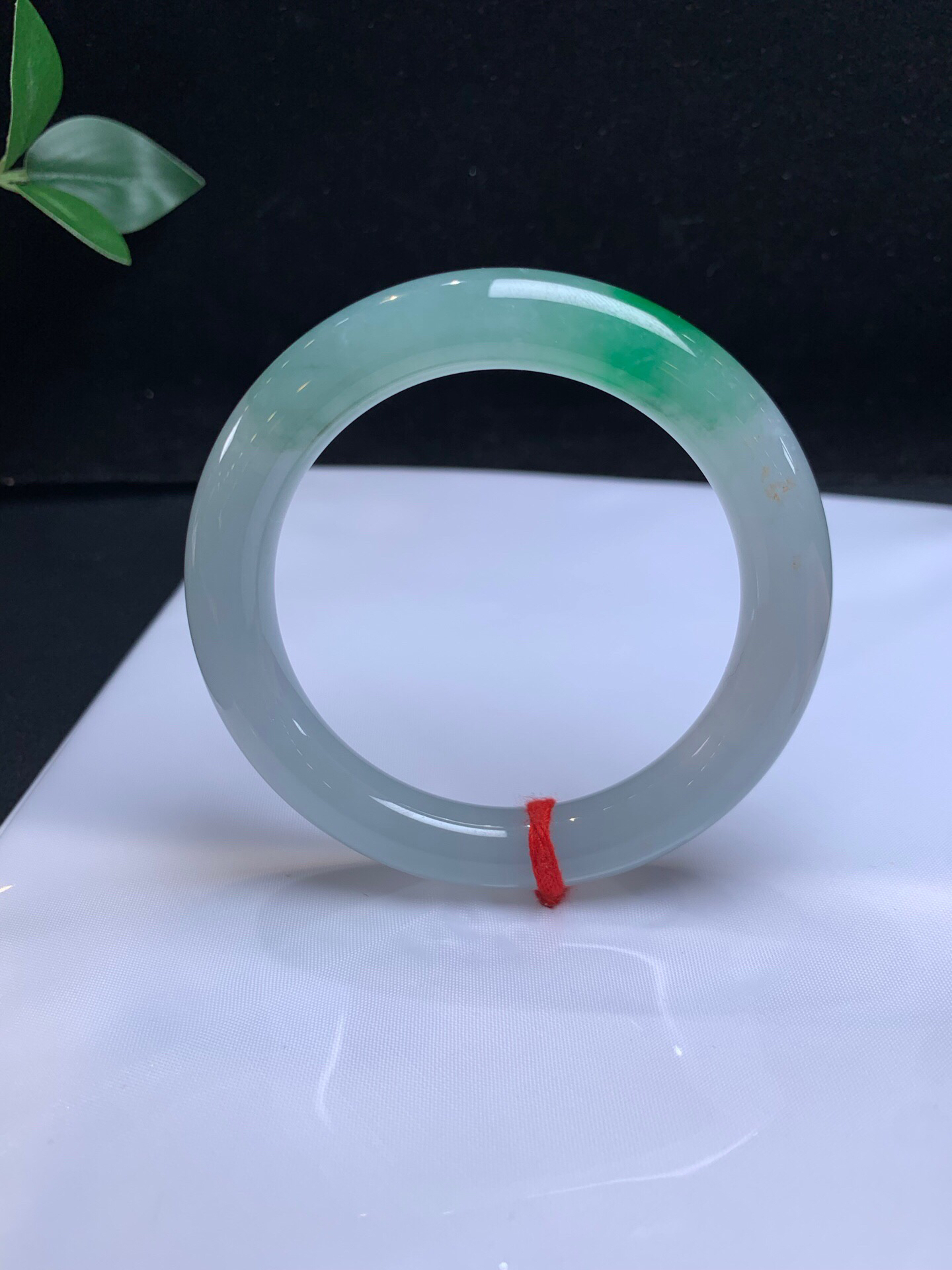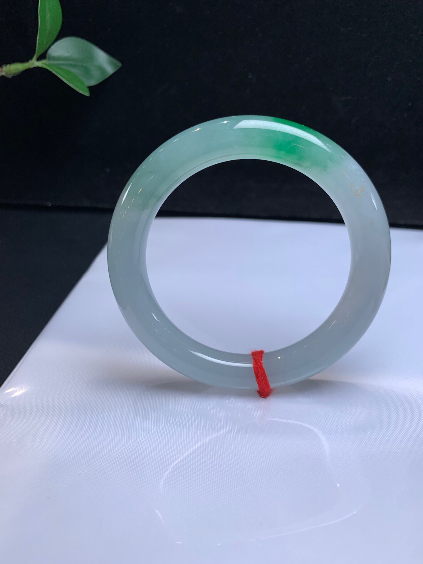 620655,55.3冰飘绿圆条,9.8mm,整体冰冰的,一截绿,条形很好,均匀干净,上手效果漂亮,完美的。超值价💰78300 #优石客珠宝#香玉荟萃