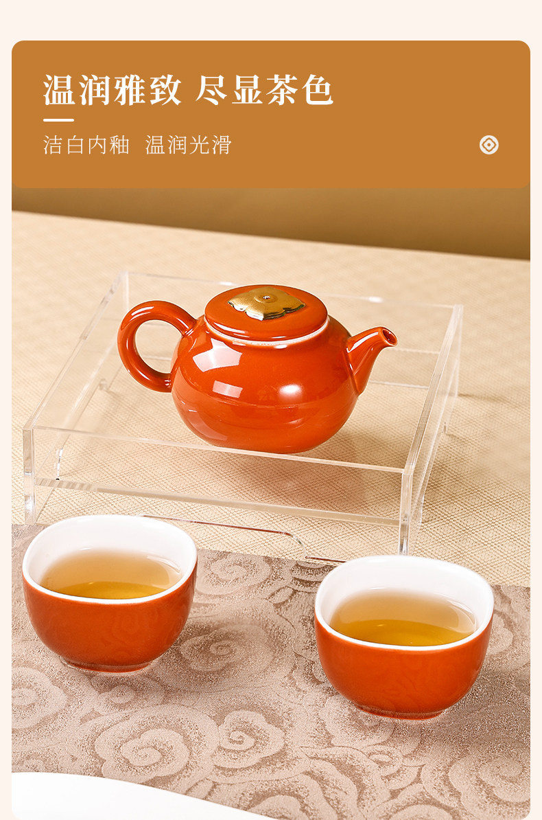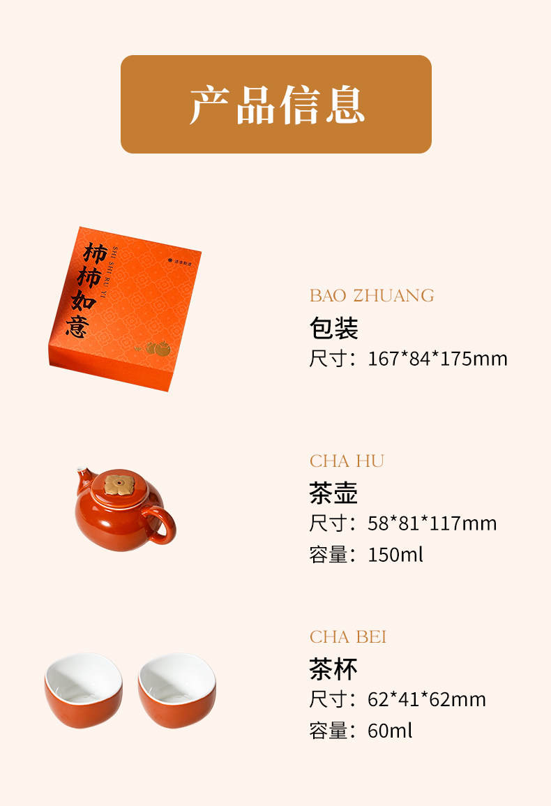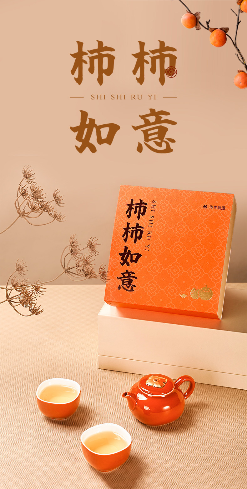 杭州西湖景区柿柿如意茶具礼盒一壶两杯套组
