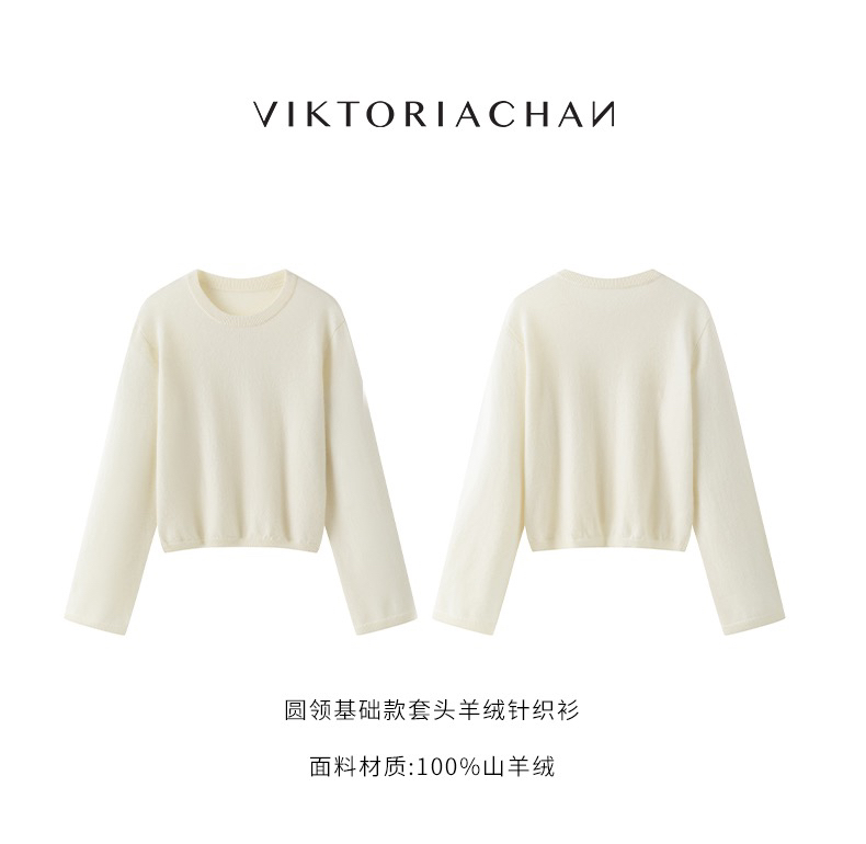 Viktoria Chan | AW22078 Rue cashmere basic [山羊绒圆领毛衣 黑/白]