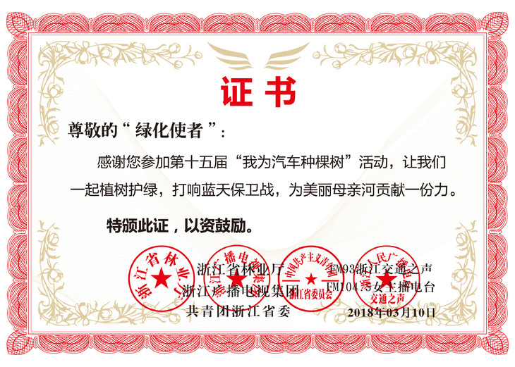 本次活动由浙江省林业厅、共青团浙江省委、浙江广播电视集团联合主办,FM93交通之声策划承办,每一个参与此次活动的公益人士,都会获颁“绿化使者”证书,见证你为绿化事业做出的贡献。