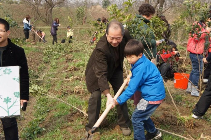 10:30慈湖中学后山开展植树活动,小朋友们还可以在绘画老师指导下描绘小树苗的成长。