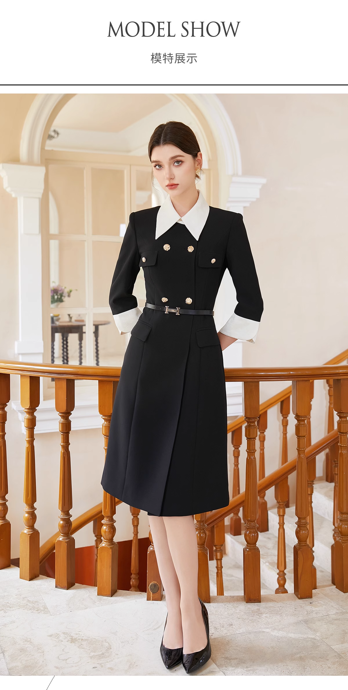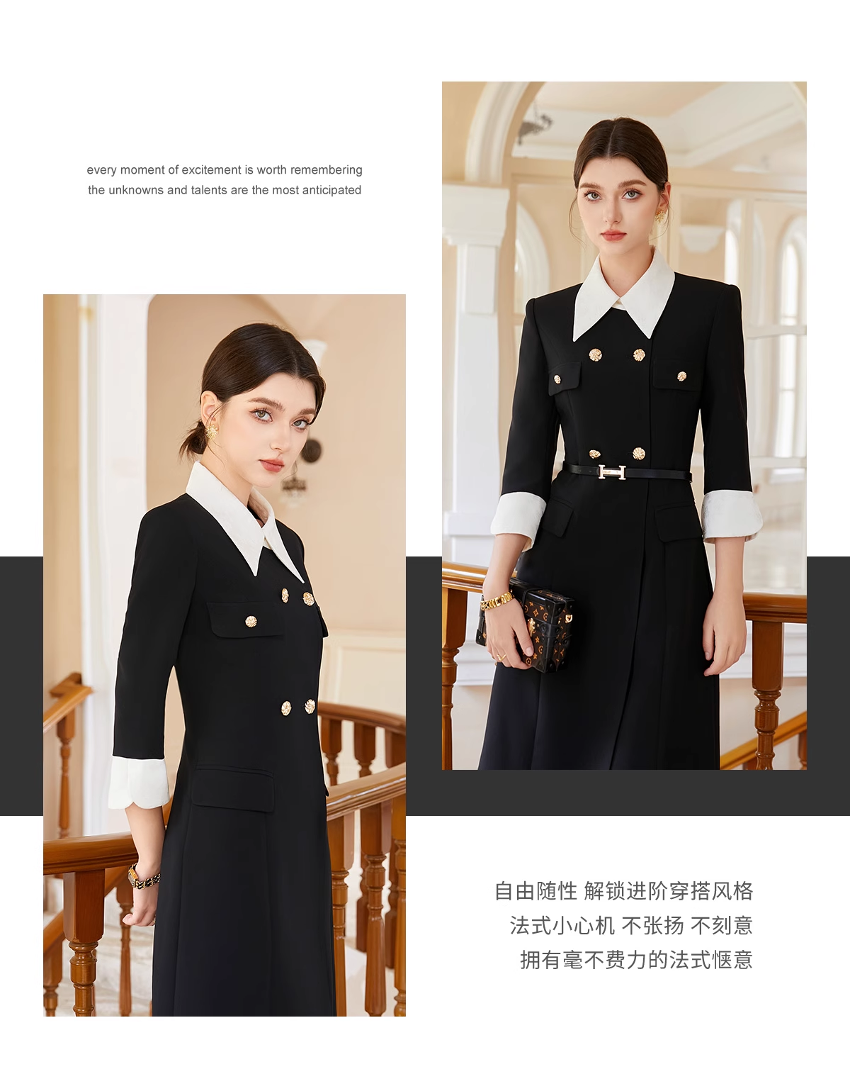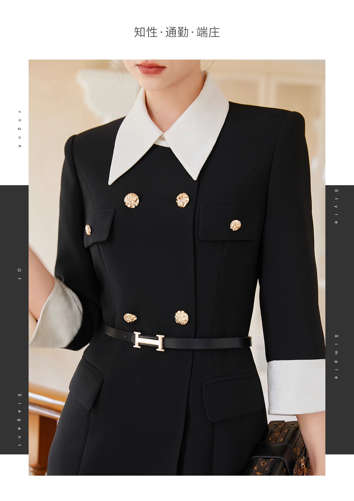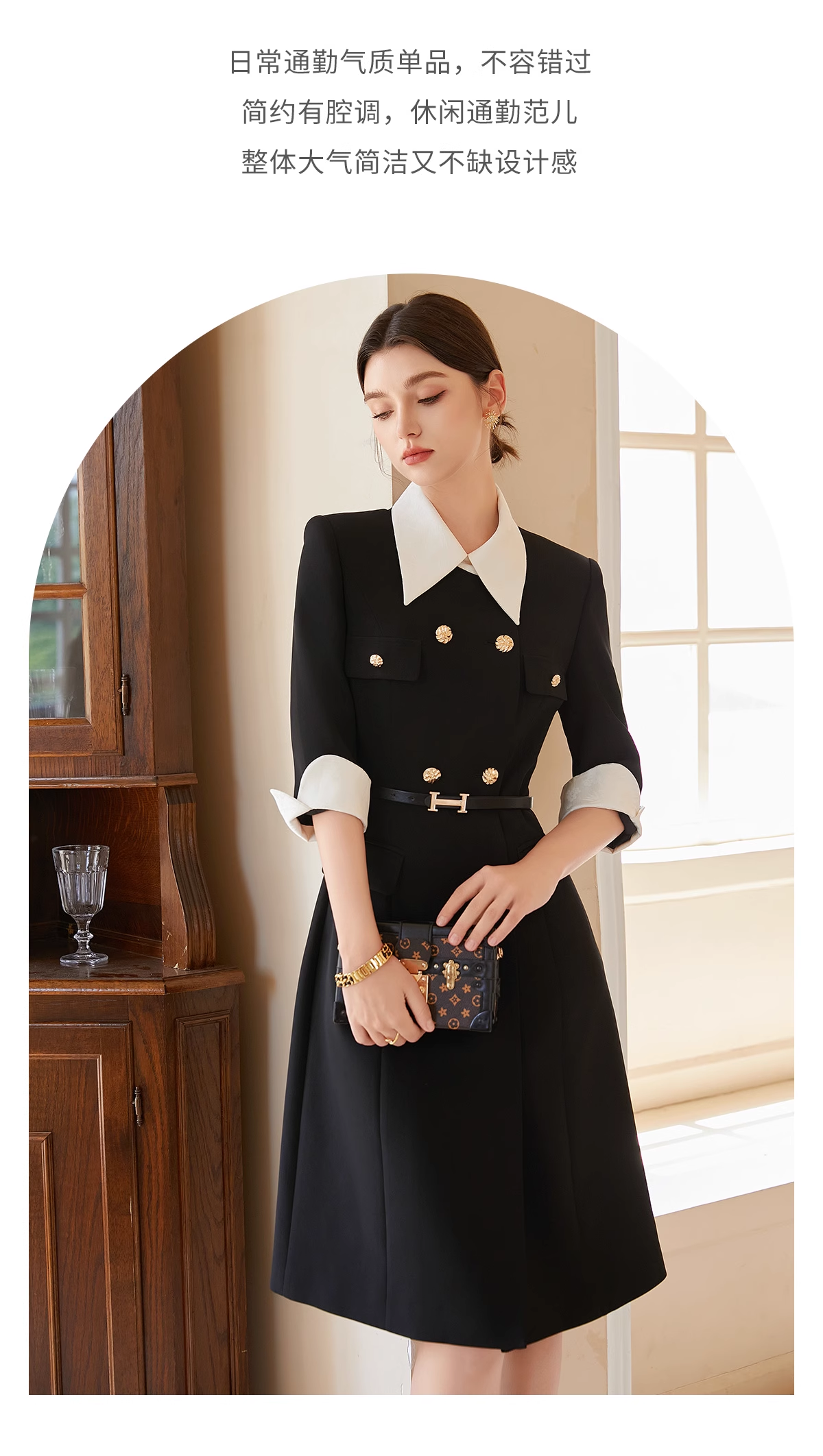 AD优雅知性法式连衣裙女新款轻奢高级感提花撞色西装裙通勤职业装送腰带