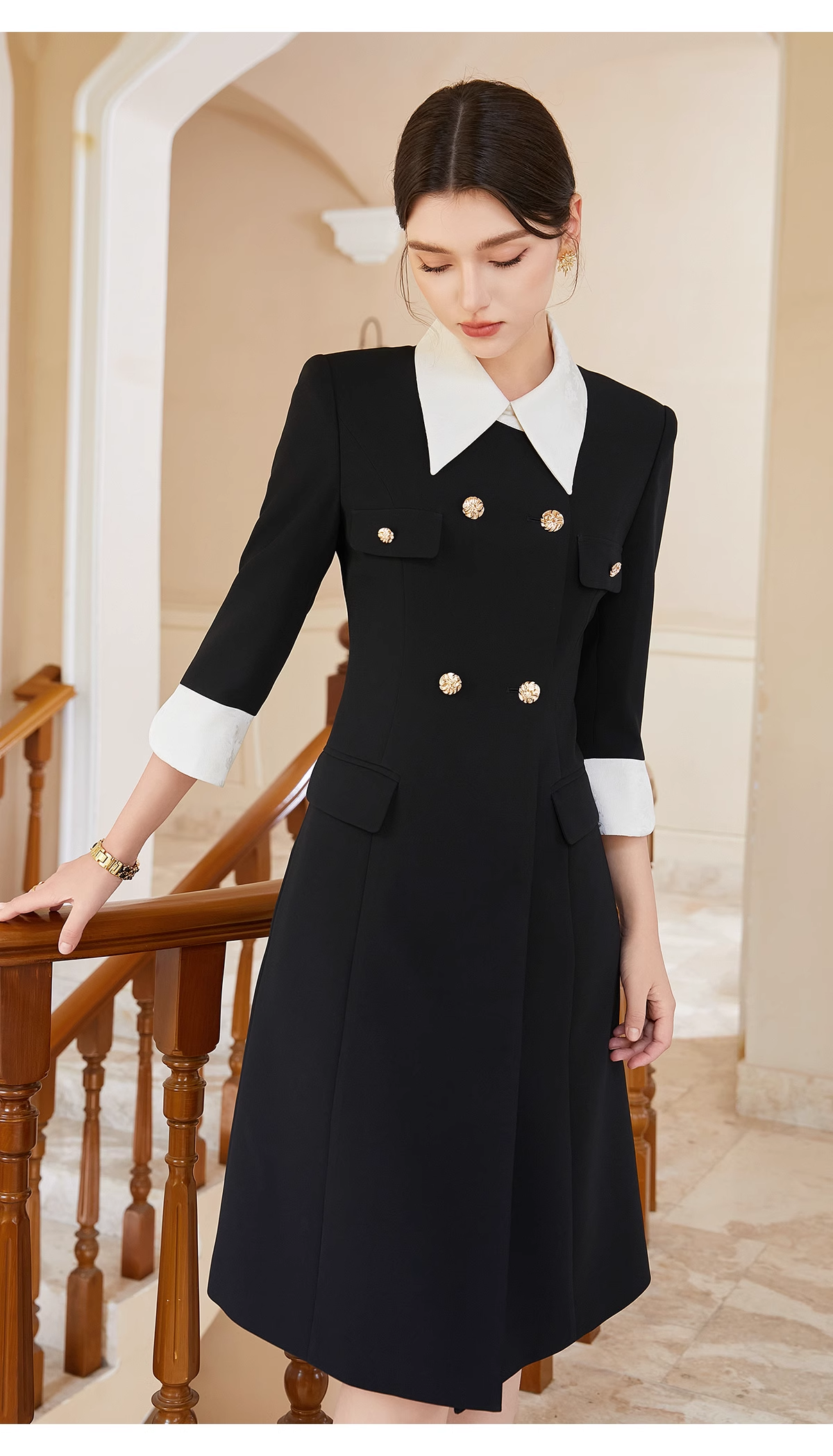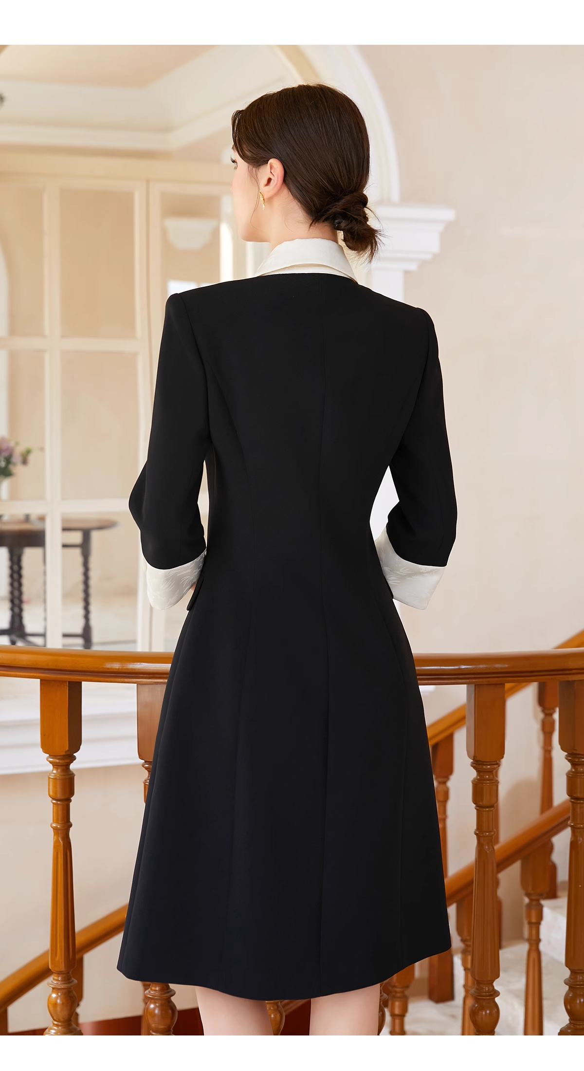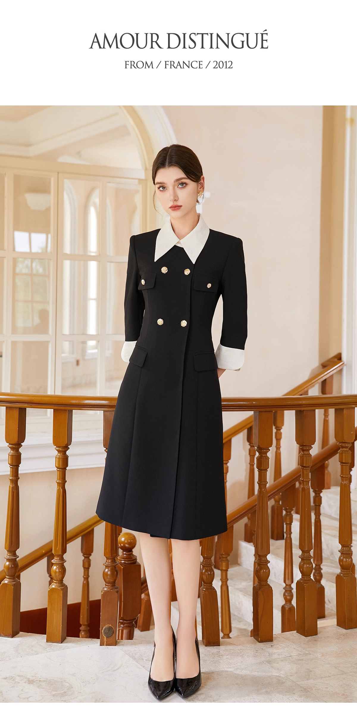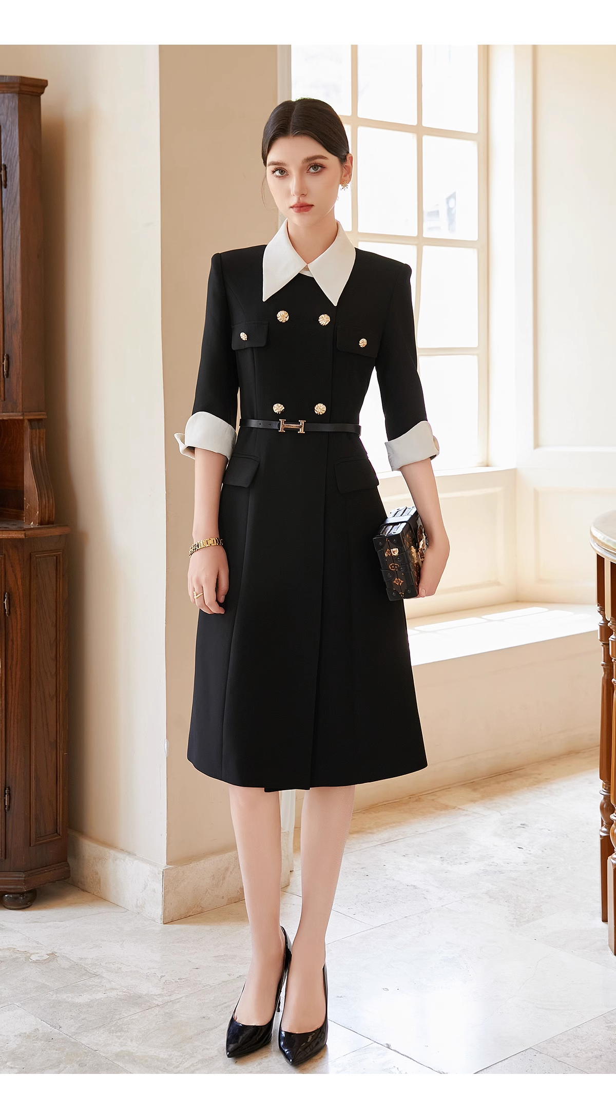 AD优雅知性法式连衣裙女新款轻奢高级感提花撞色西装裙通勤职业装送腰带
