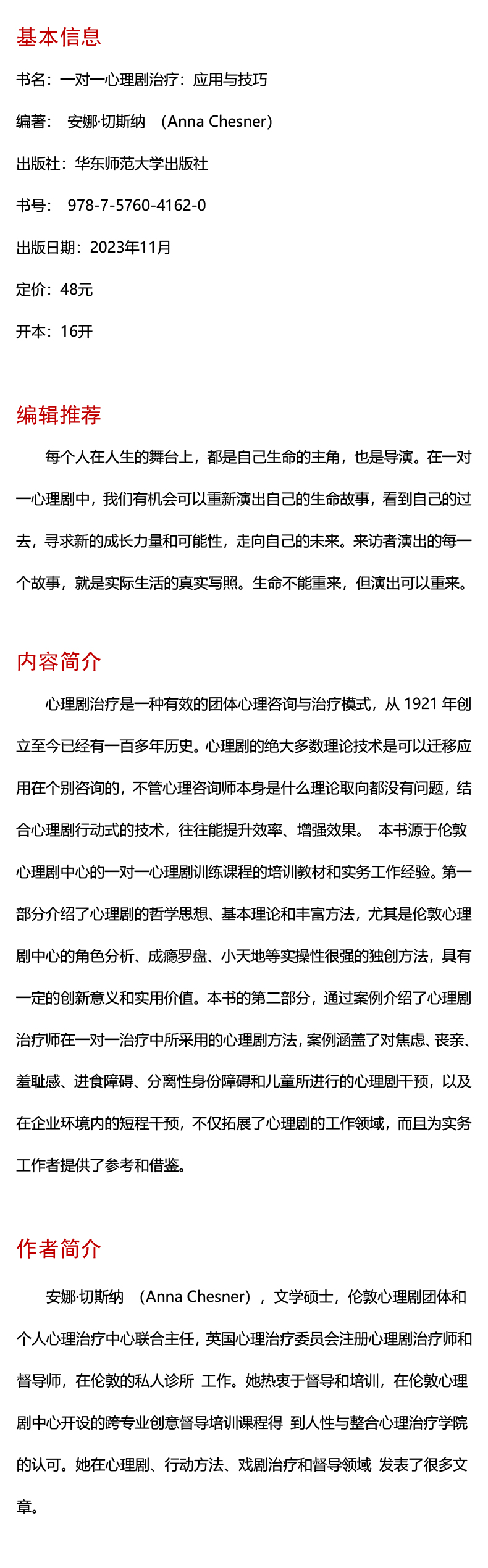 一对一心理剧治疗 应用与技巧 团体心理咨询 安娜·切斯纳