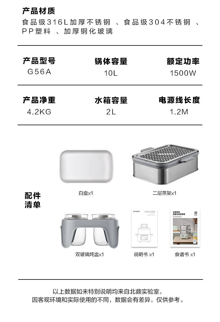 北鼎(Buydeem) 电蒸锅 家用蒸炖锅G56A