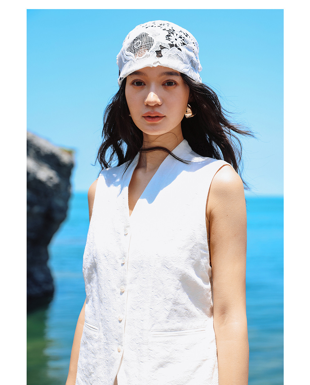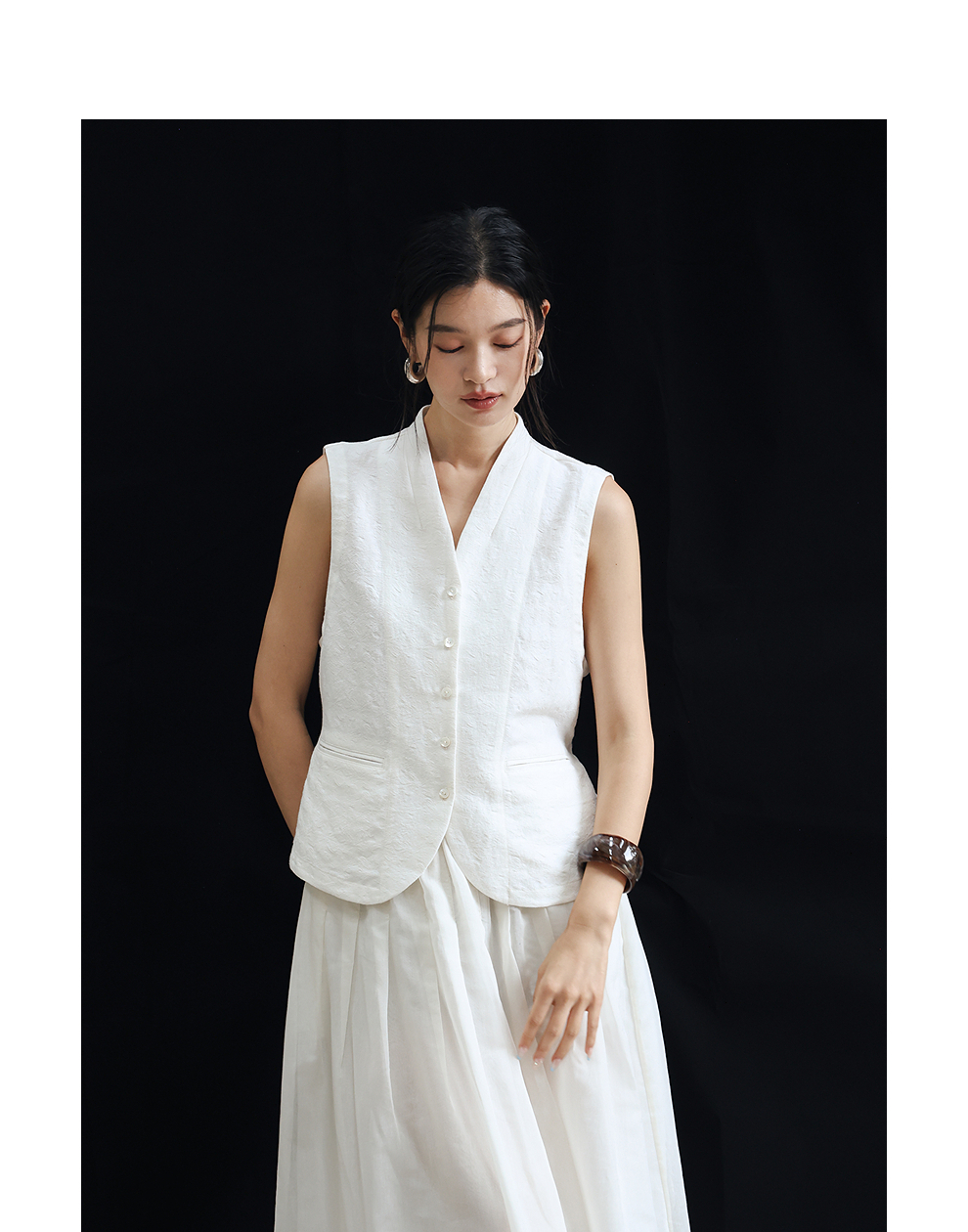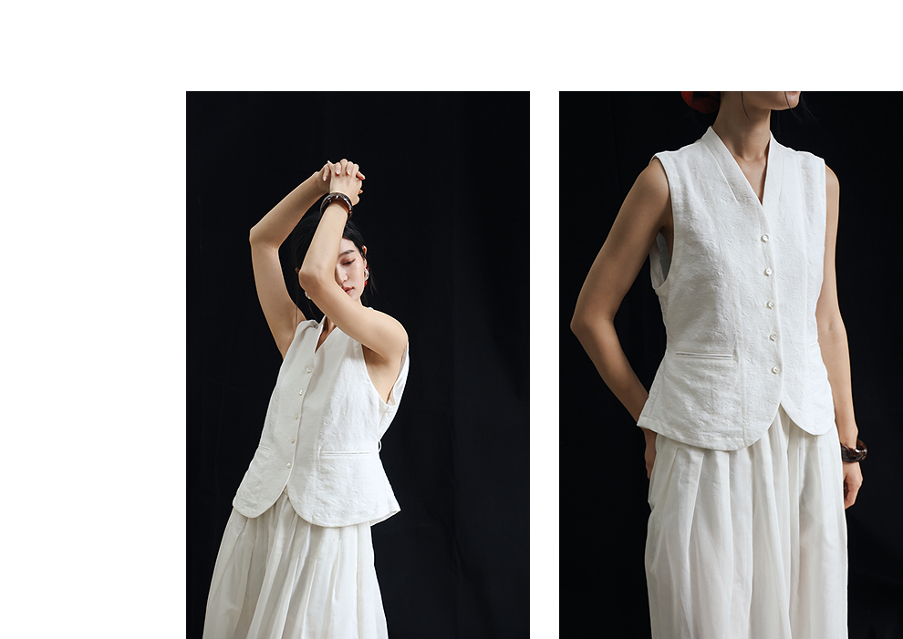 绽放393朵/【黑白灰系列·老钱马甲】复古老钱风提花拼接无袖马甲