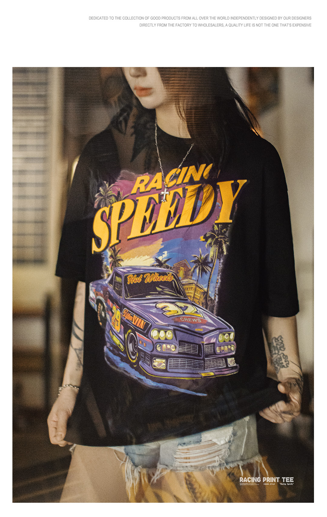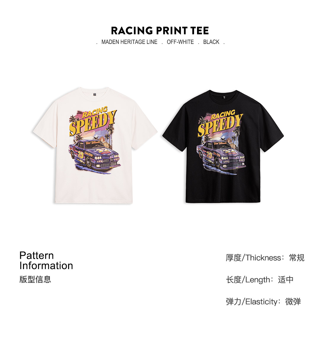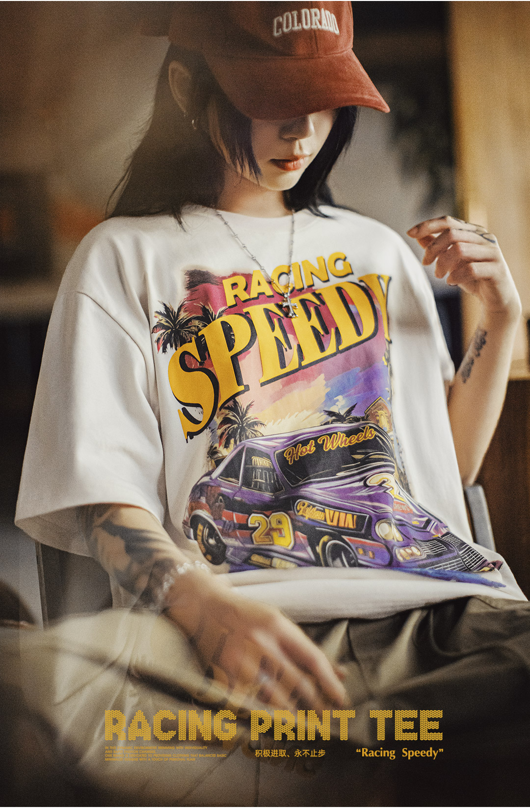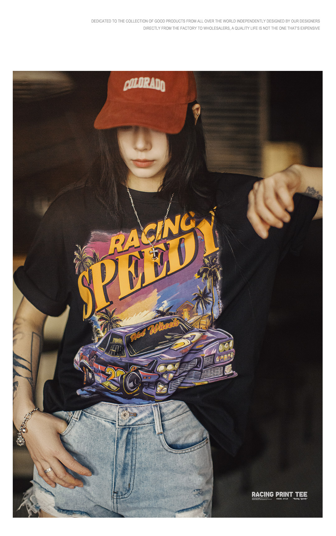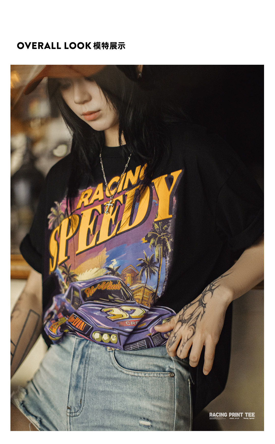 马登夏日美式复古白色大印花T恤高街潮流纯棉插画艺术宽松短袖女