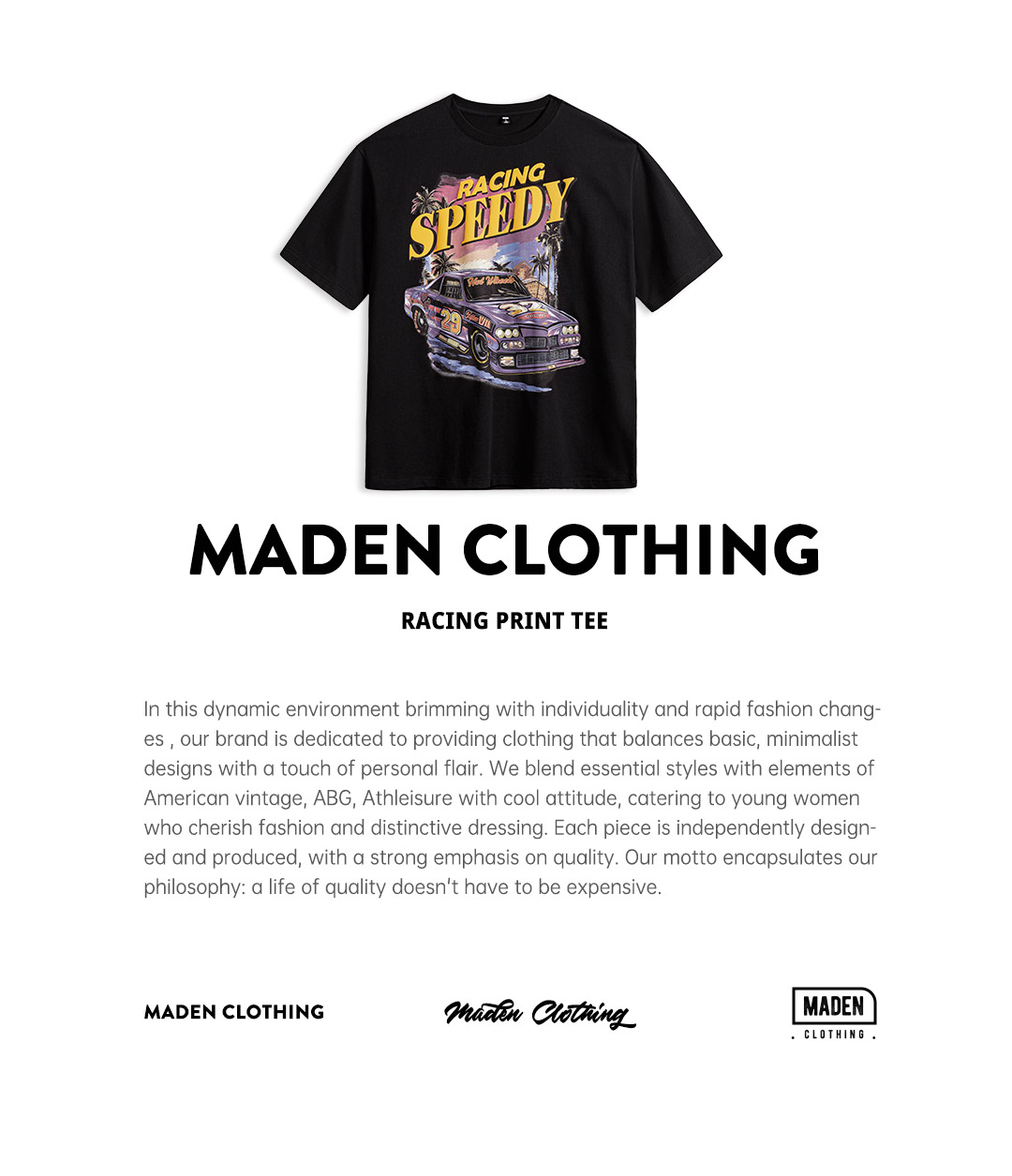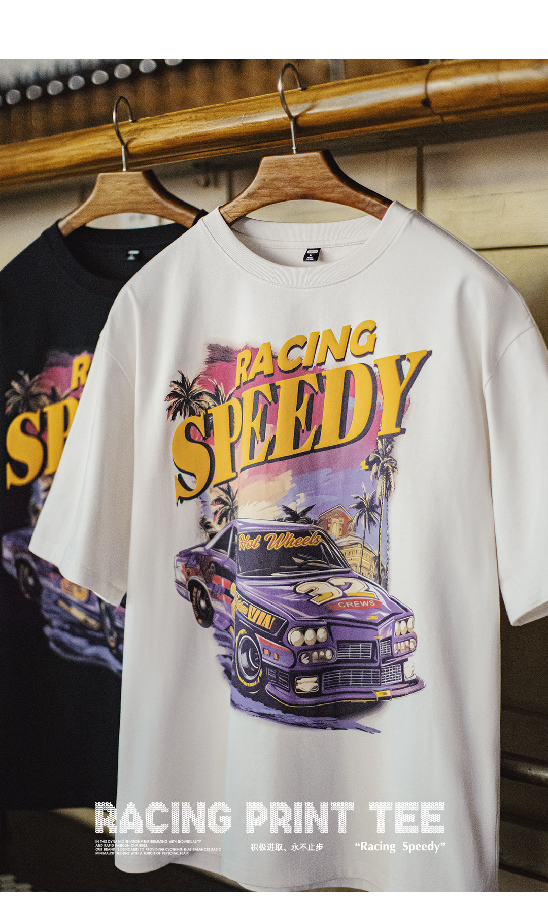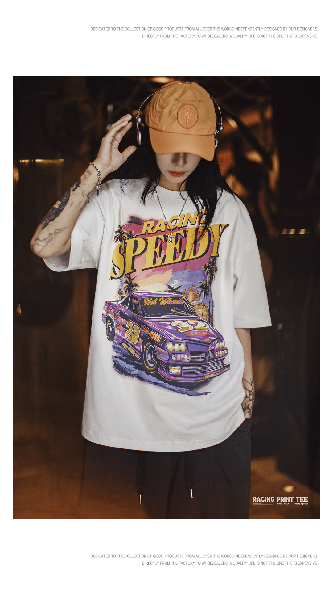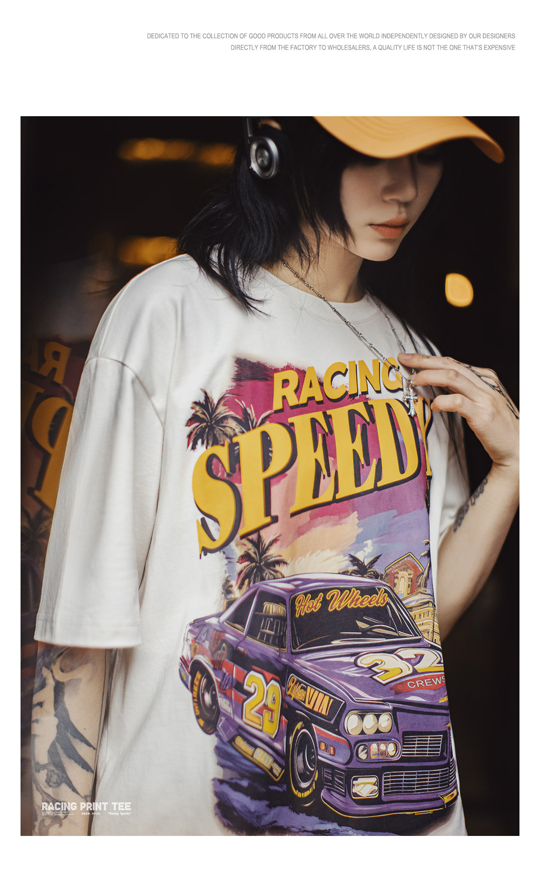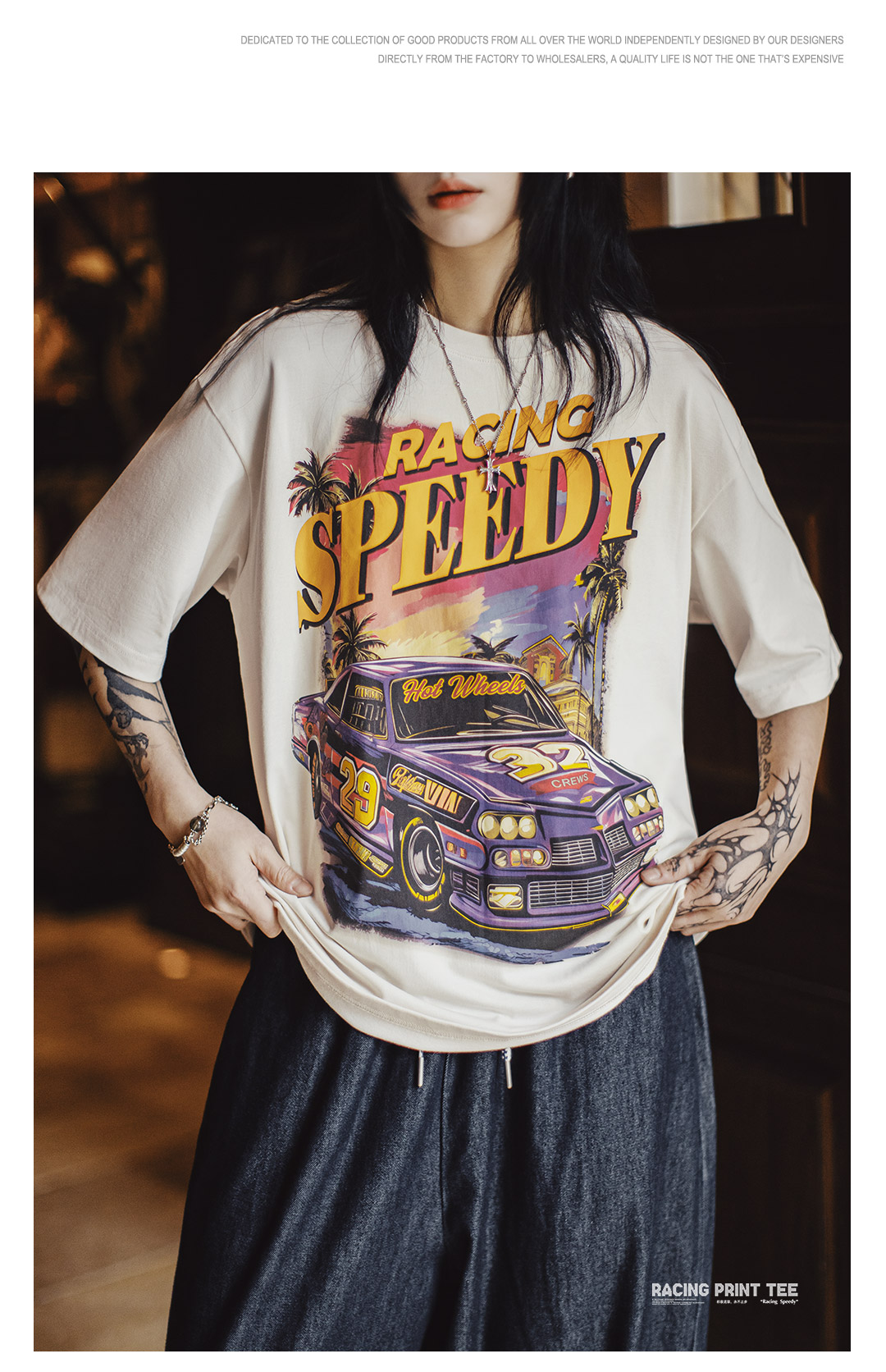 马登夏日美式复古白色大印花T恤高街潮流纯棉插画艺术宽松短袖女