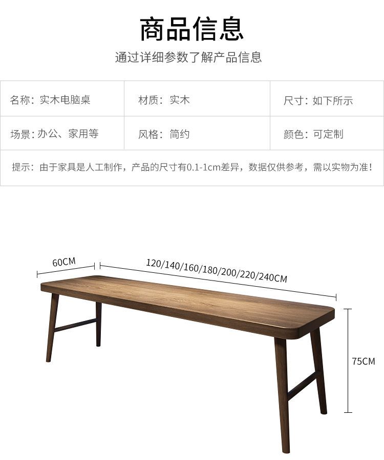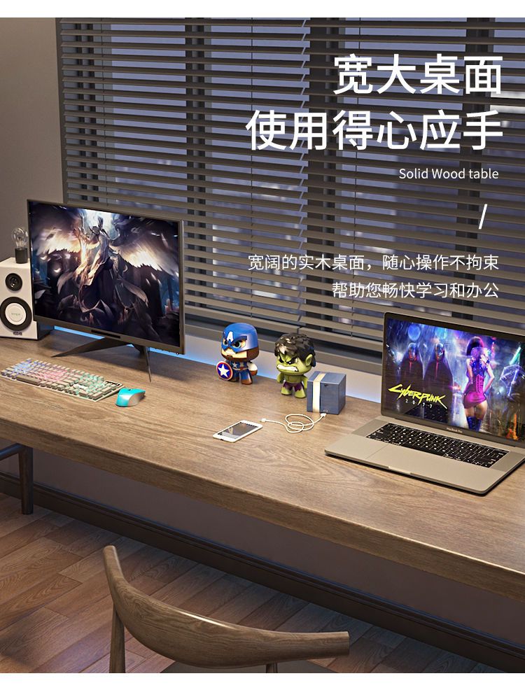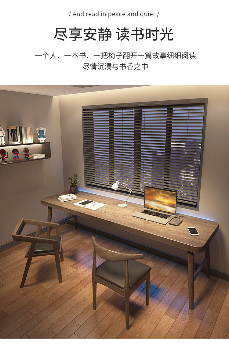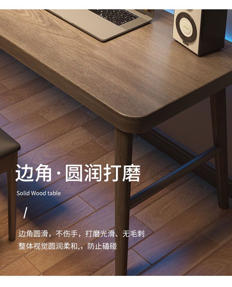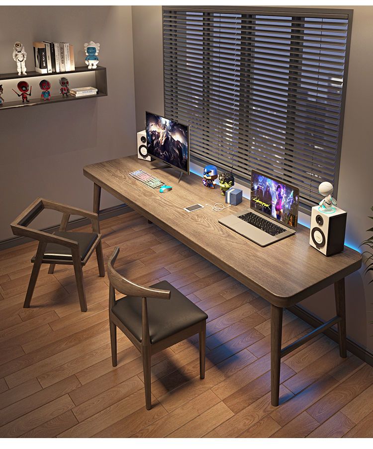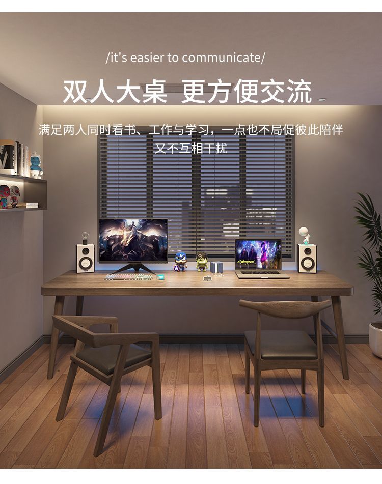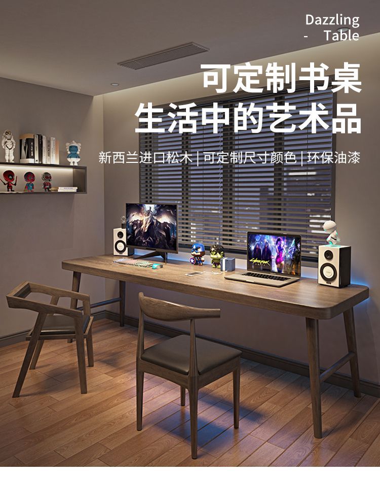 全实木双人电脑桌台式办公桌子家用轻奢学习工作台长条书桌写字