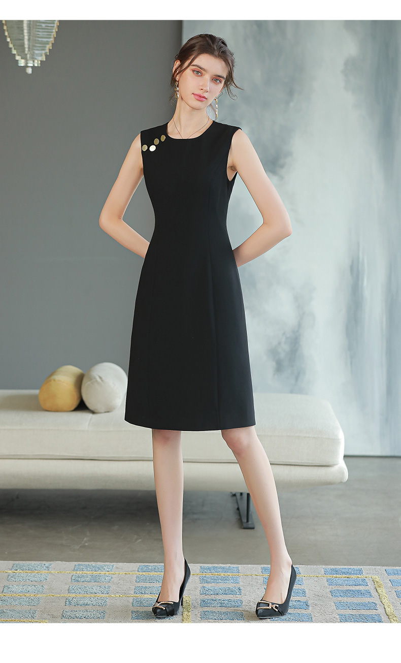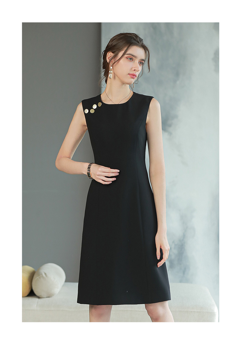 高端无袖西装连衣裙女显瘦a字裙时尚赫本风小黑裙气质OL职业装