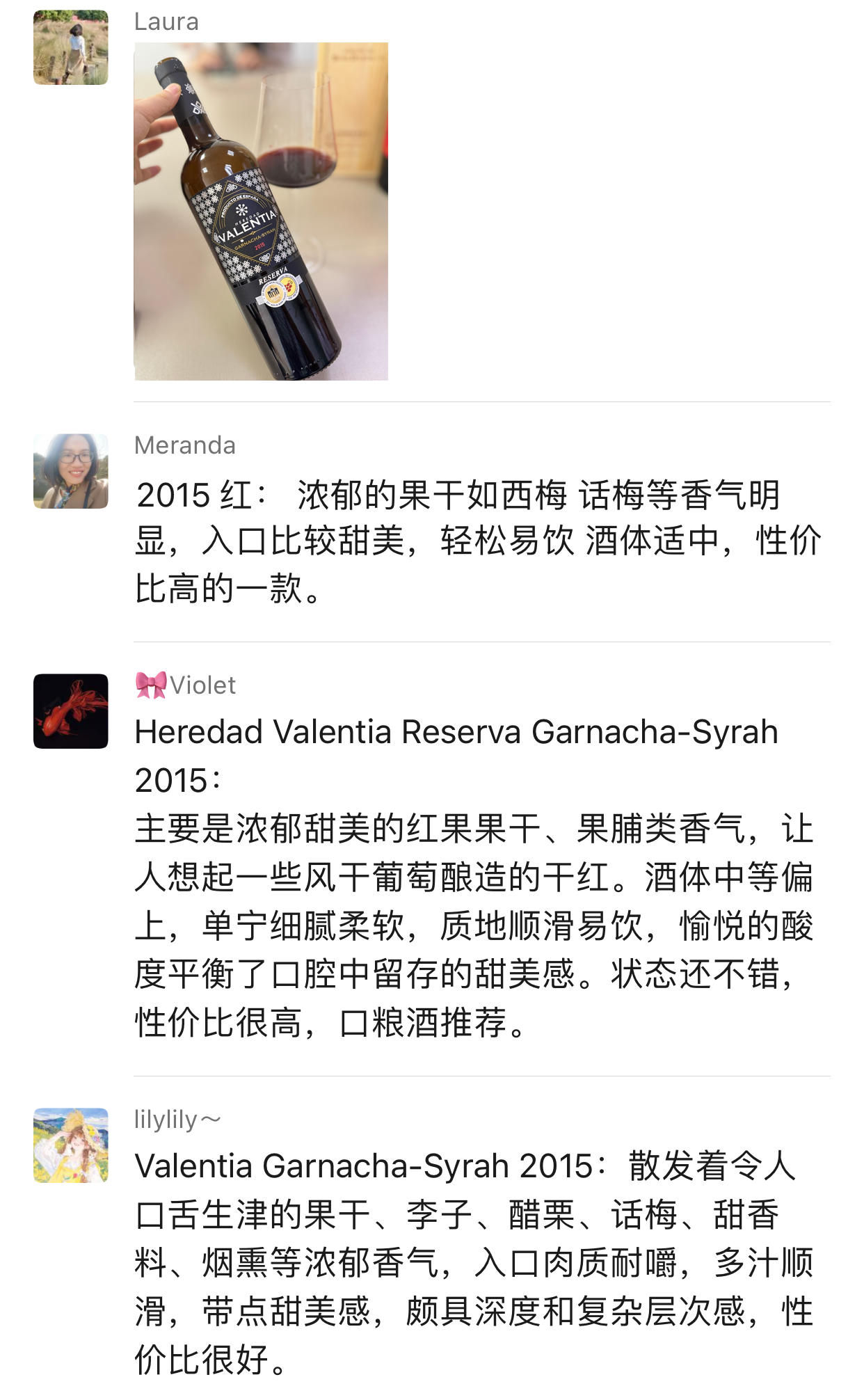 以下是 2015 年瓦伦珍藏干红(Valentia Reserva Garnacha-Syrah)的详细信息。