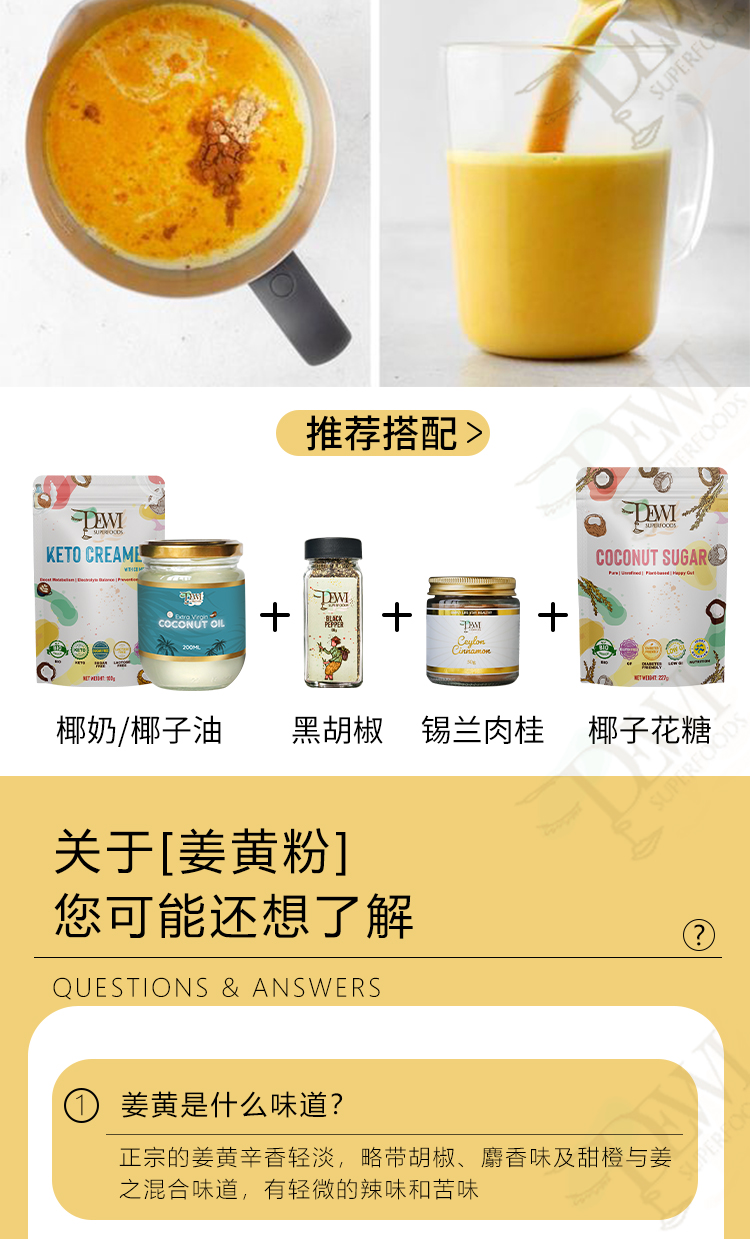 Dewi黛维印尼姜黄粉瓶装C3姜黃素无糖添加黄金奶冲饮Turmeric