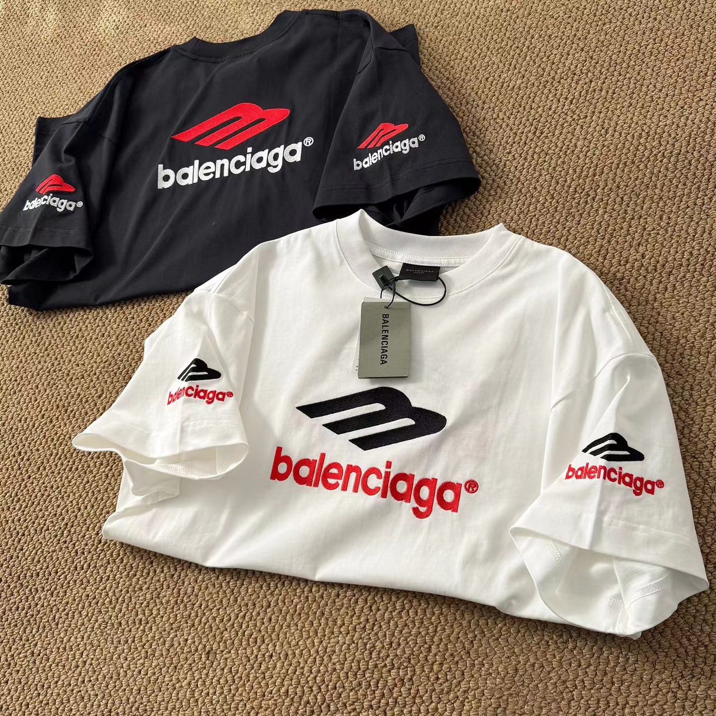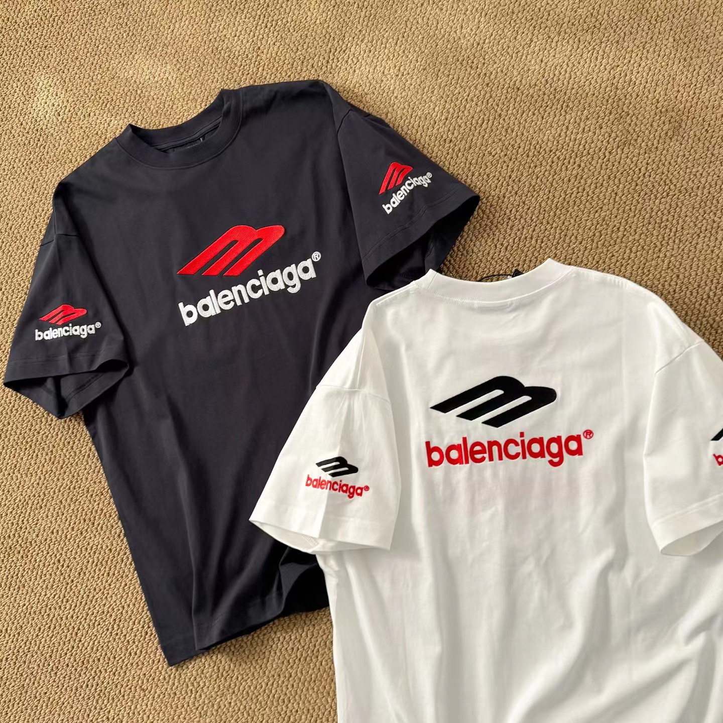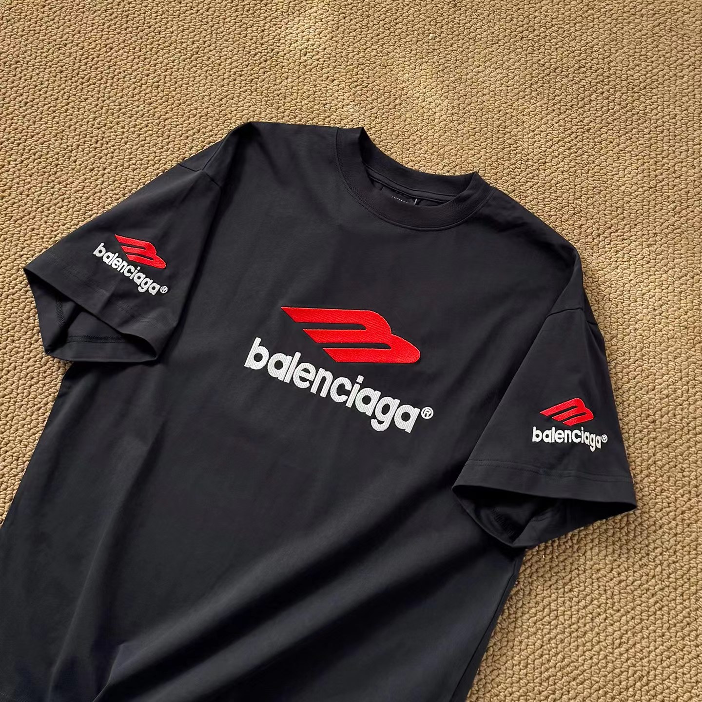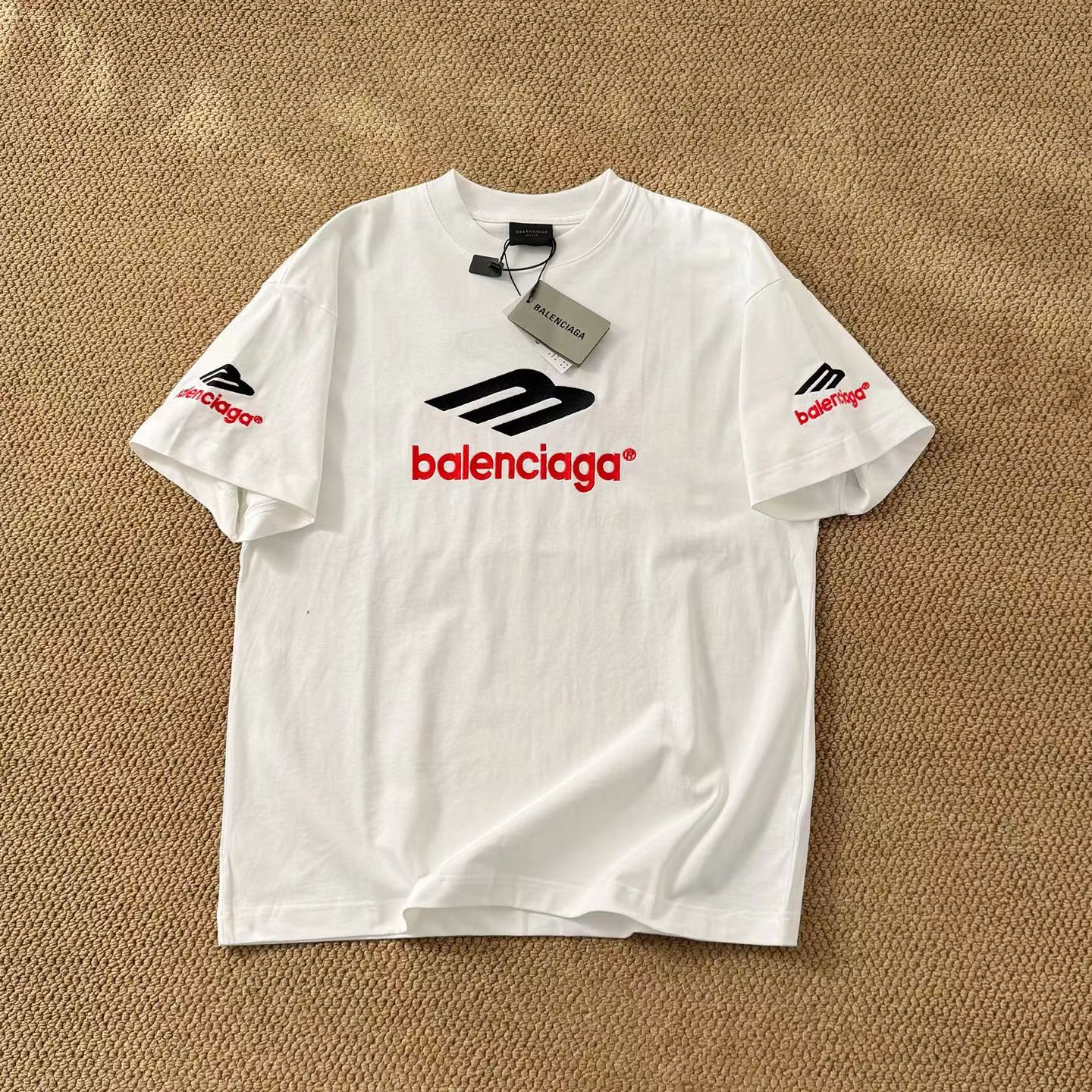 字母刺绣短袖经dian前后左LOGO刺绣短袖T恤多位手工磨烂,采用280克巴黎专用面料超重工艺