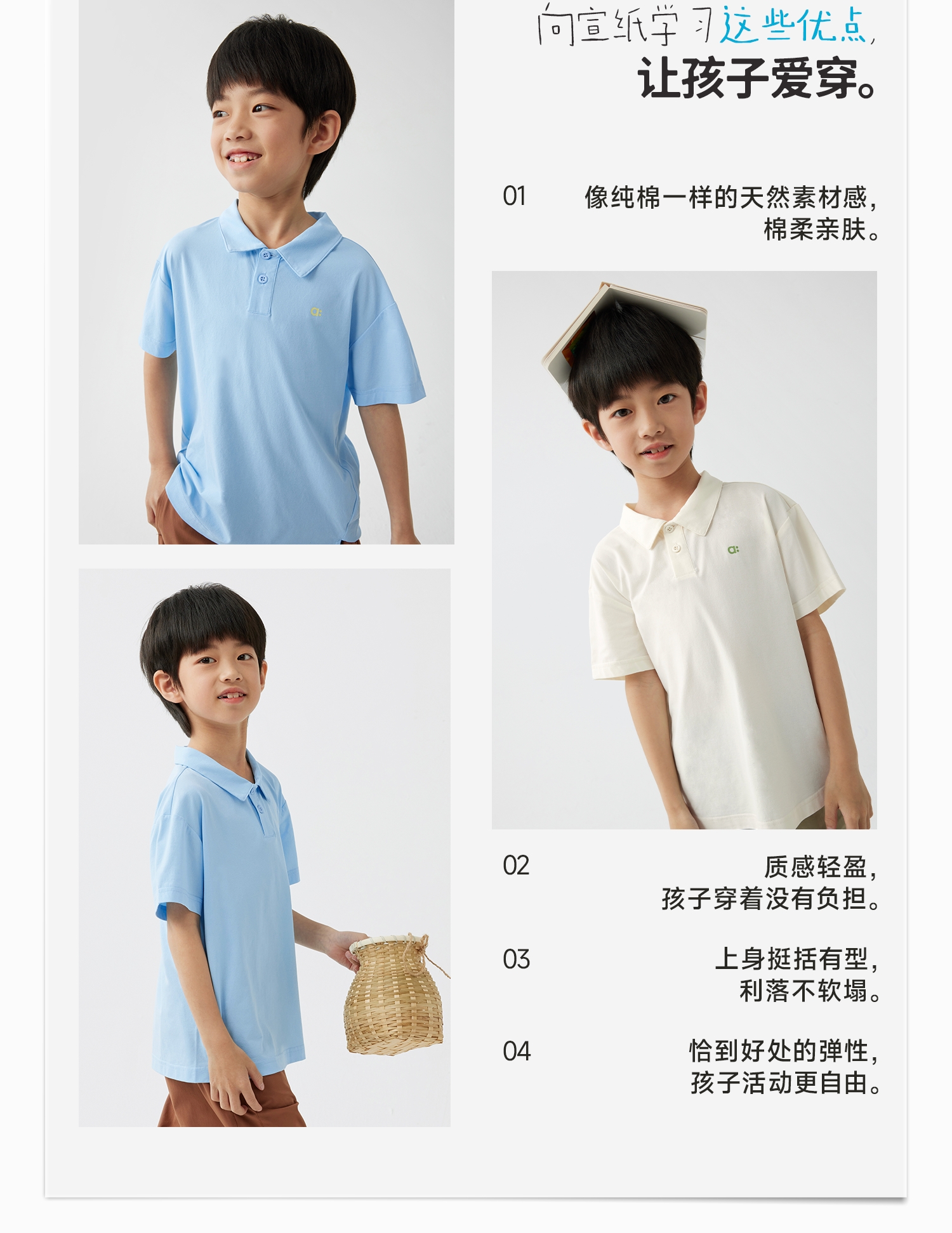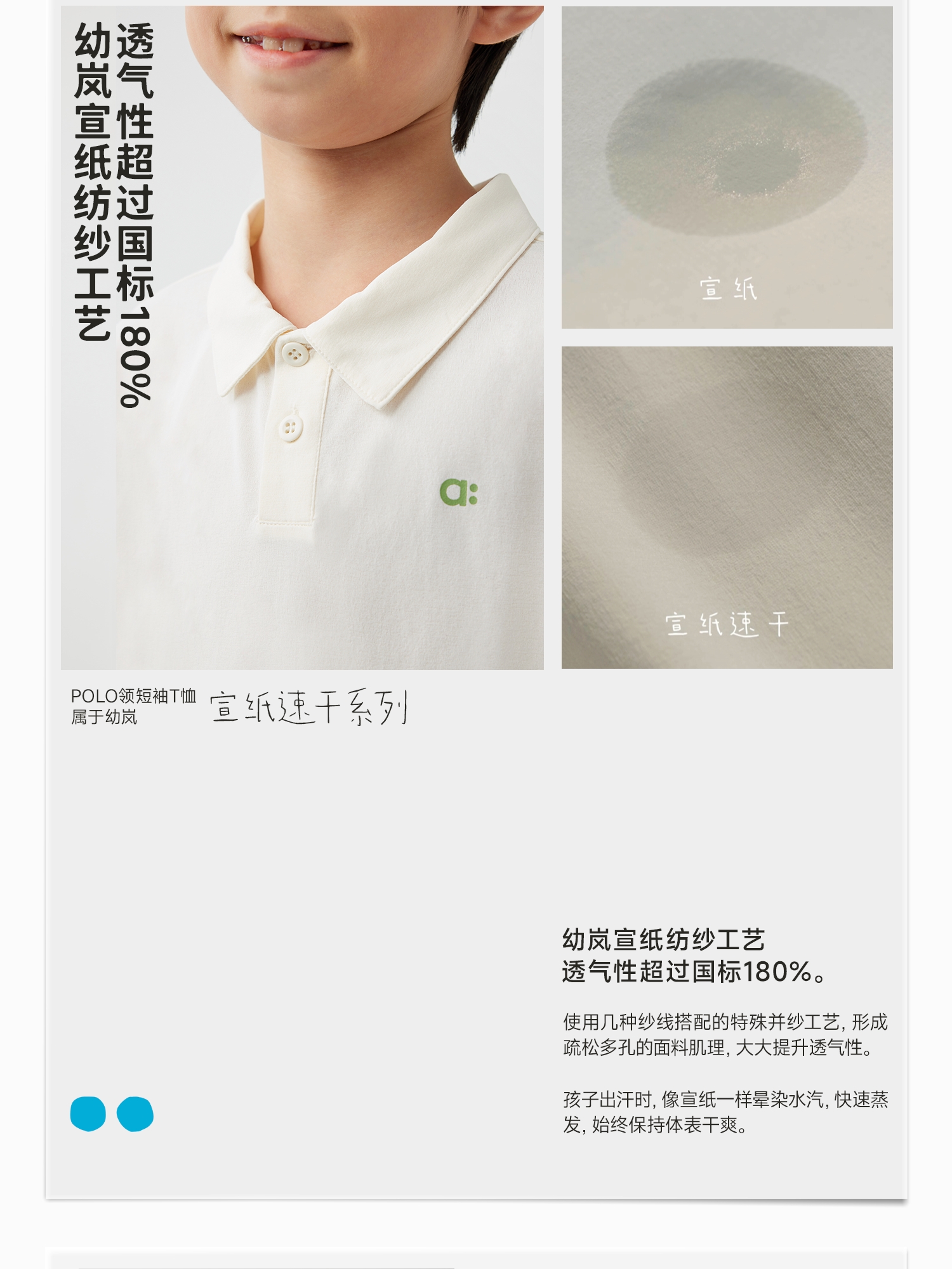 【春Vol.2】幼岚「宣纸速干」柔软亲肤POLO领短袖T恤24春季新款儿童男童T恤ZY