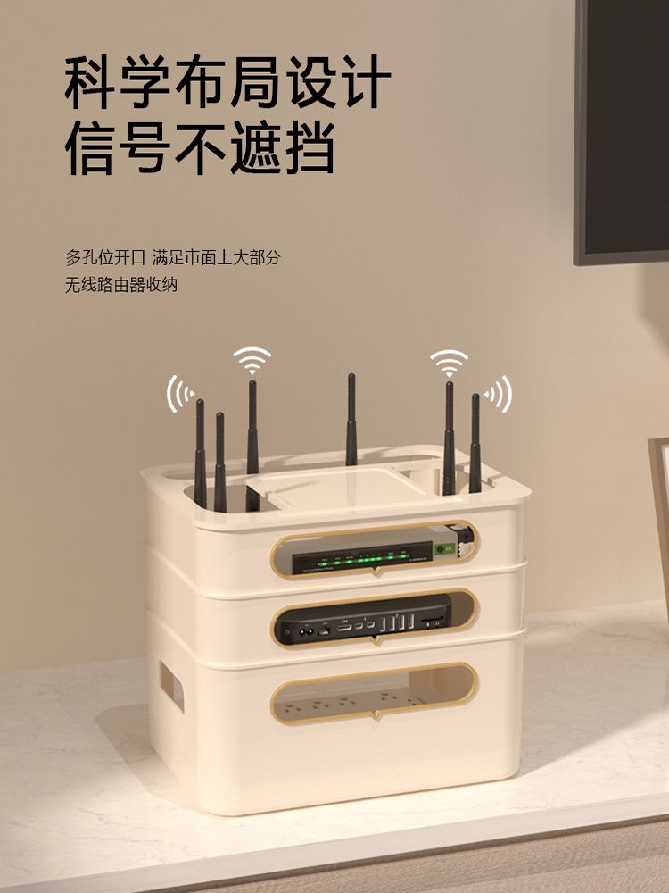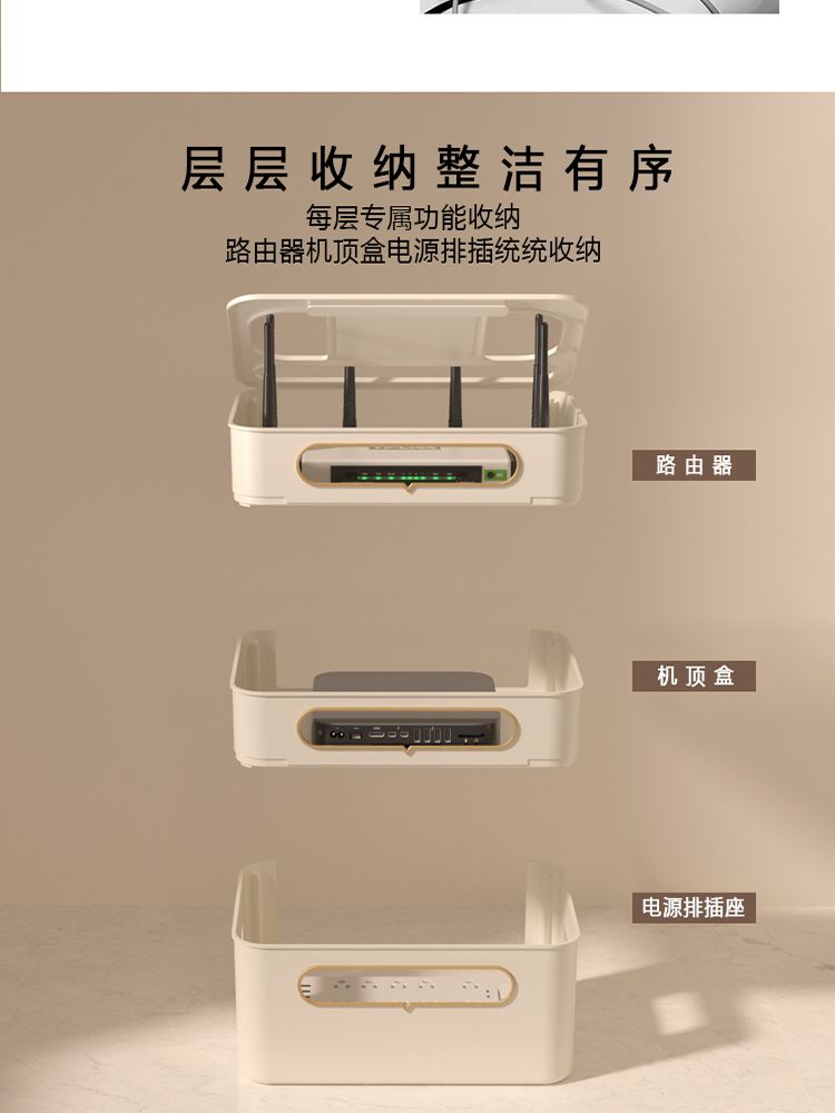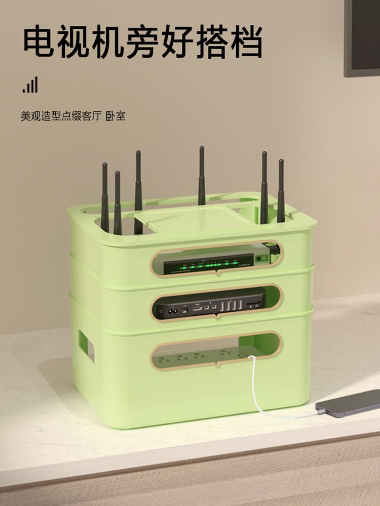 wifi路由器收纳盒电视机顶盒置物架插座电线整理无线光猫放置台面