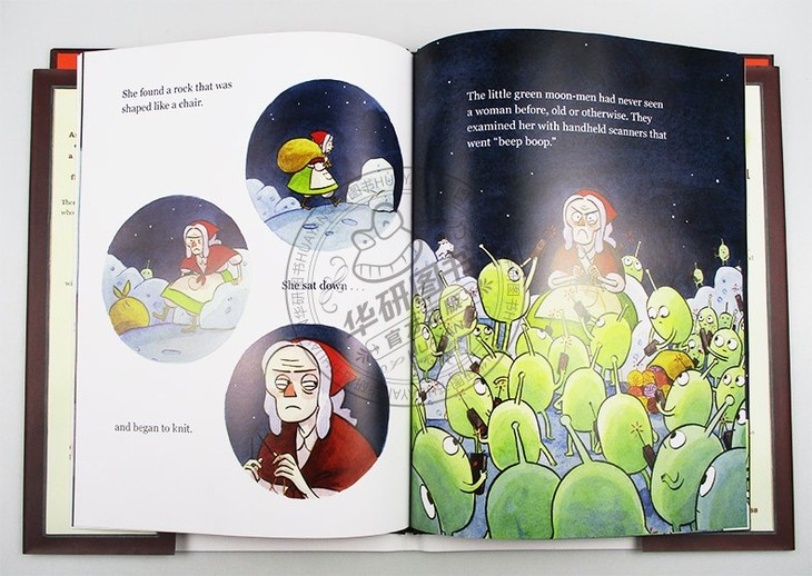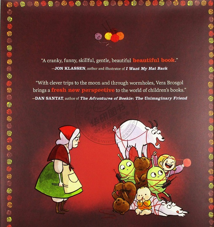 A grandmother leaves her tiny home and her very big family and journeys to the moon and beyond to find peace and quiet to finish her knitting. Along the way, she encounters ravenous bears, obnoxious goats, and even hordes of aliens! But nothing stops grandma from accomplishing her goal - knitting sweaters for her many grandchildren to keep them warm and toasty for the coming winter. This slyly clever and unexpectedly funny modern folktale is perfect for fans of Extra Yarn and is certain to warm even the coldest of hearts.