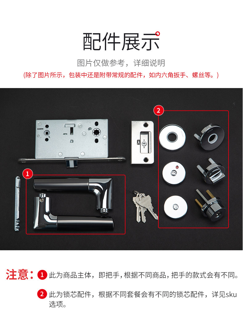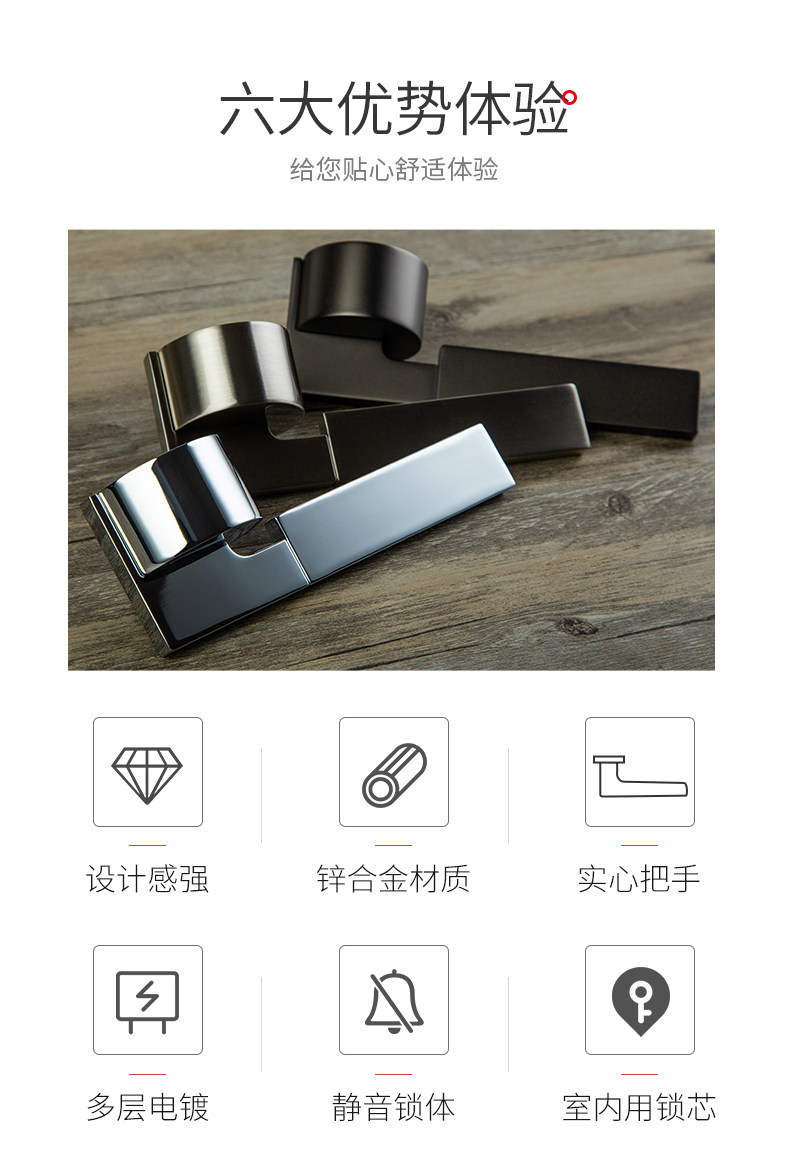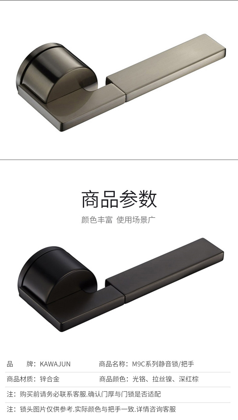 KAWAJUN静音门锁家用通用型把手锌合金室内卧室房门卫浴套装门锁