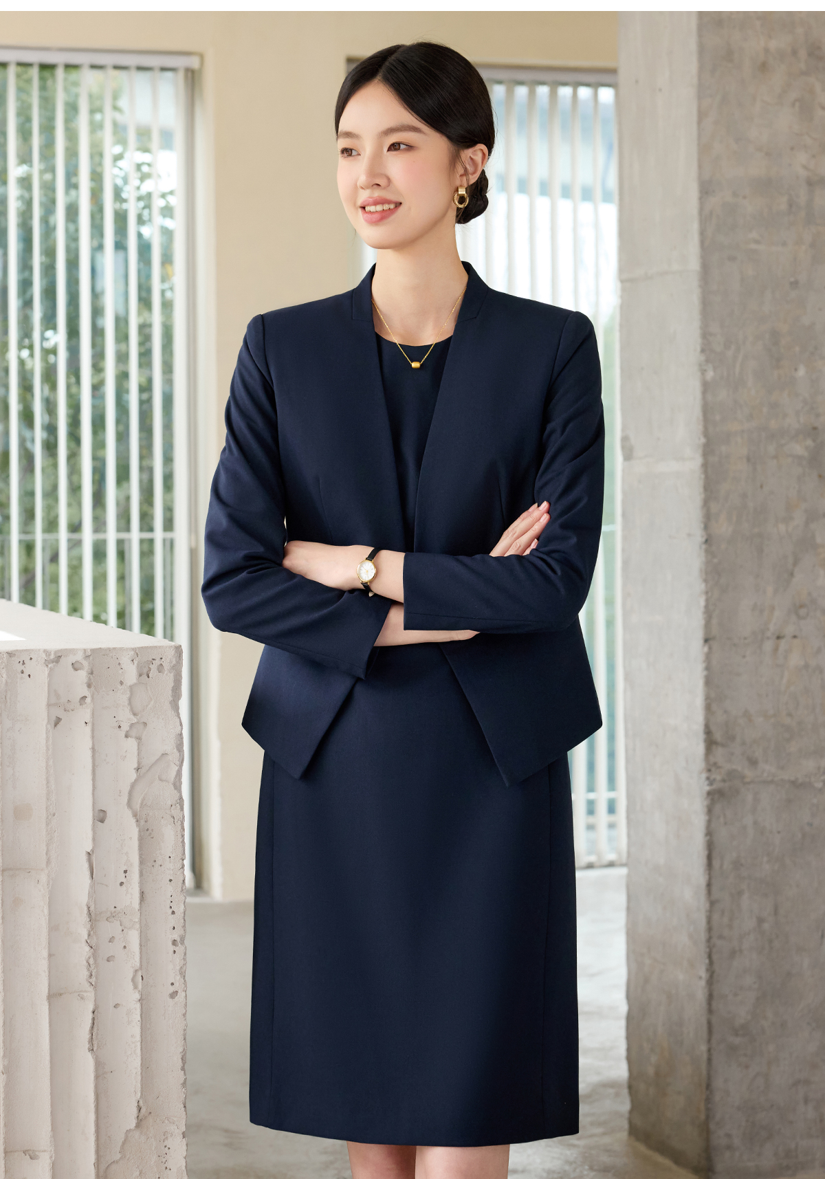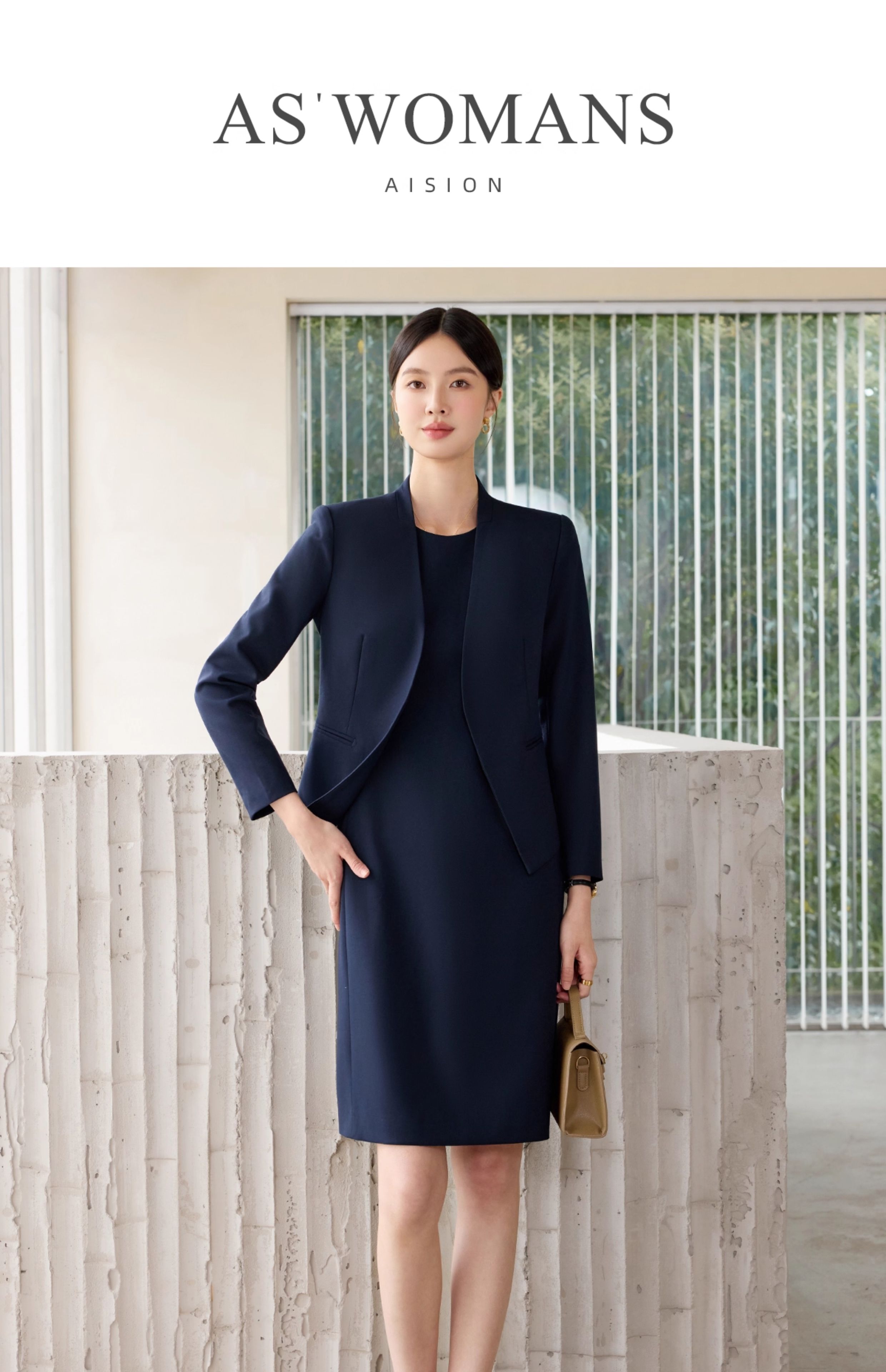 艾尚臣藏青色高级感时尚西装连衣裙气质商务修身显瘦两件套工作服