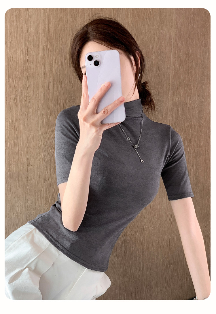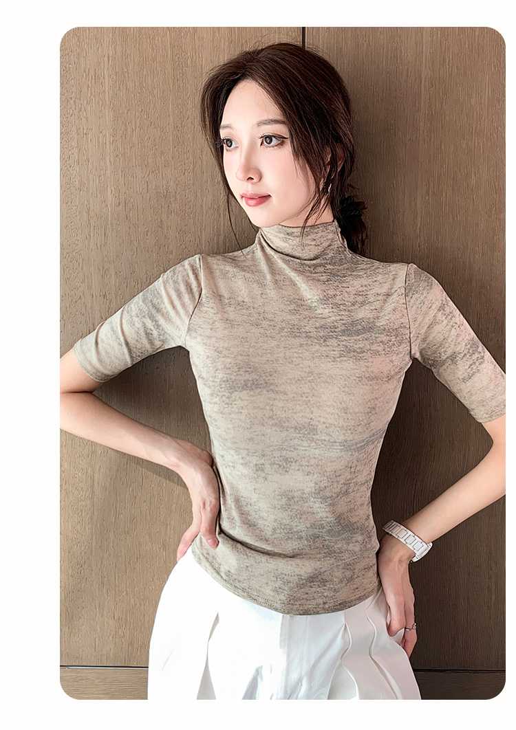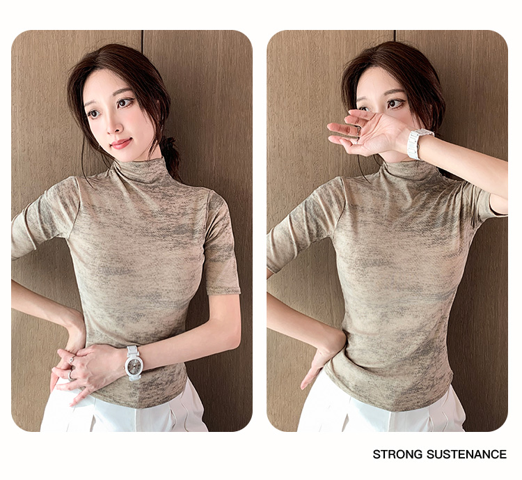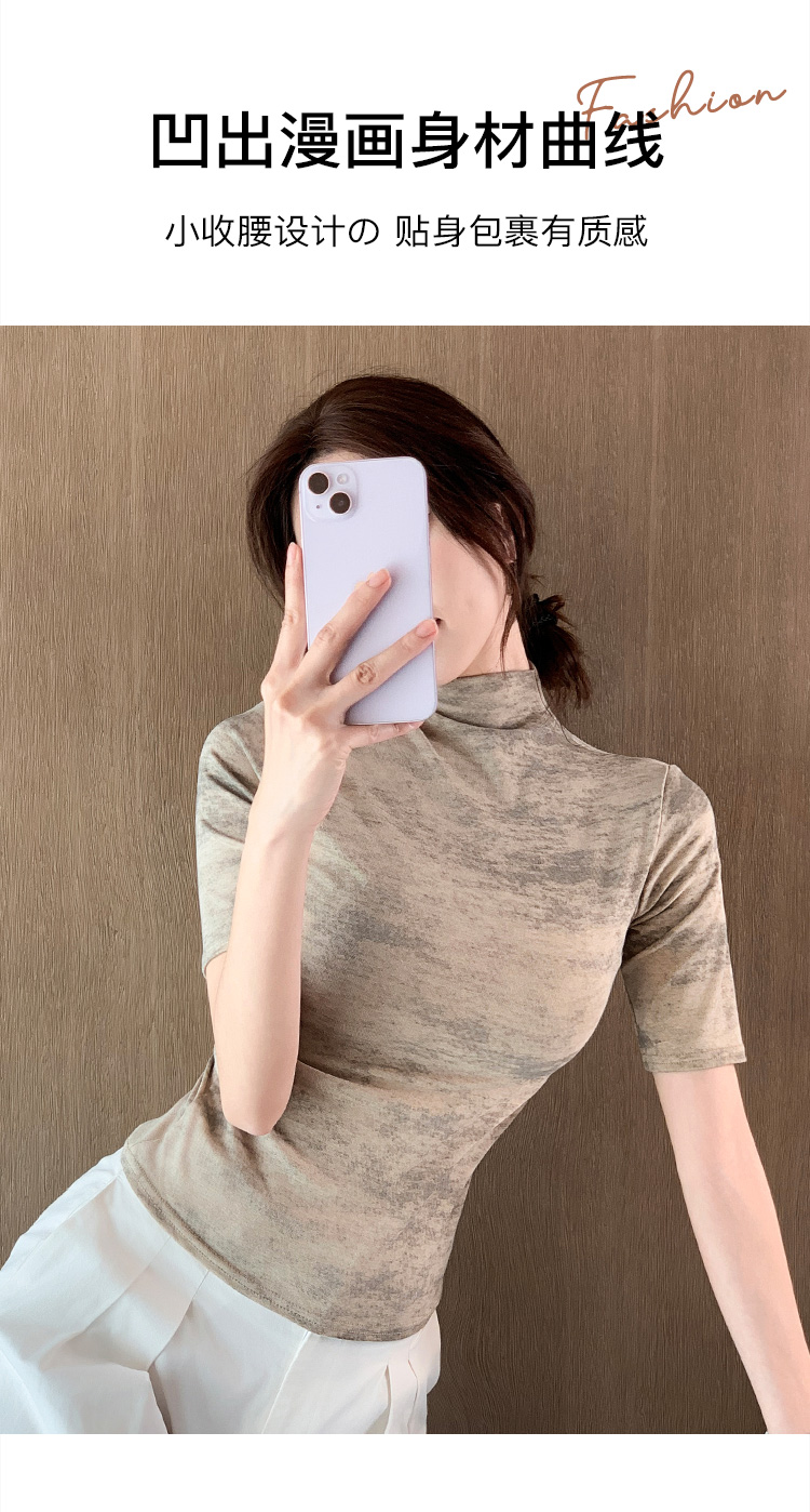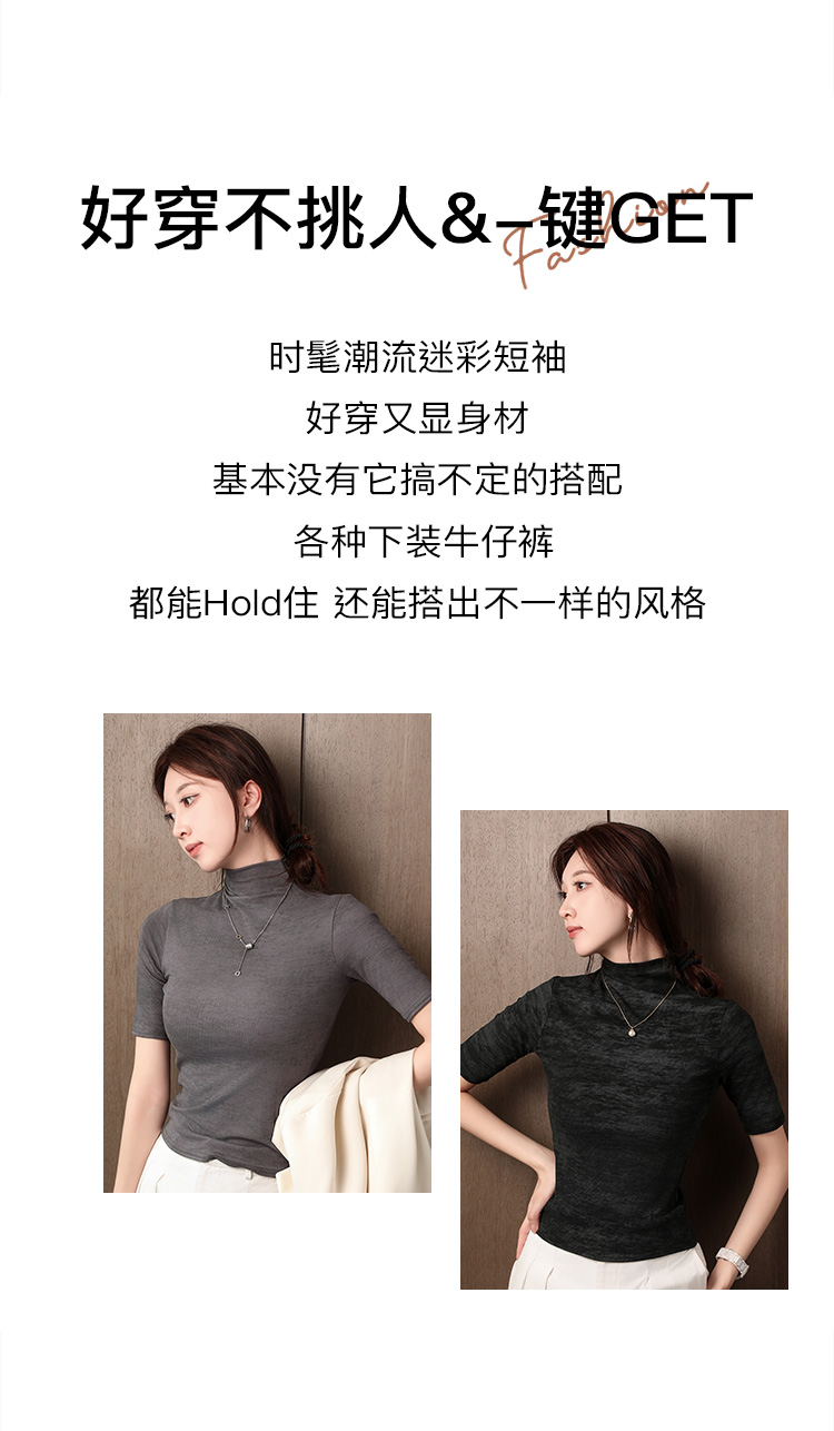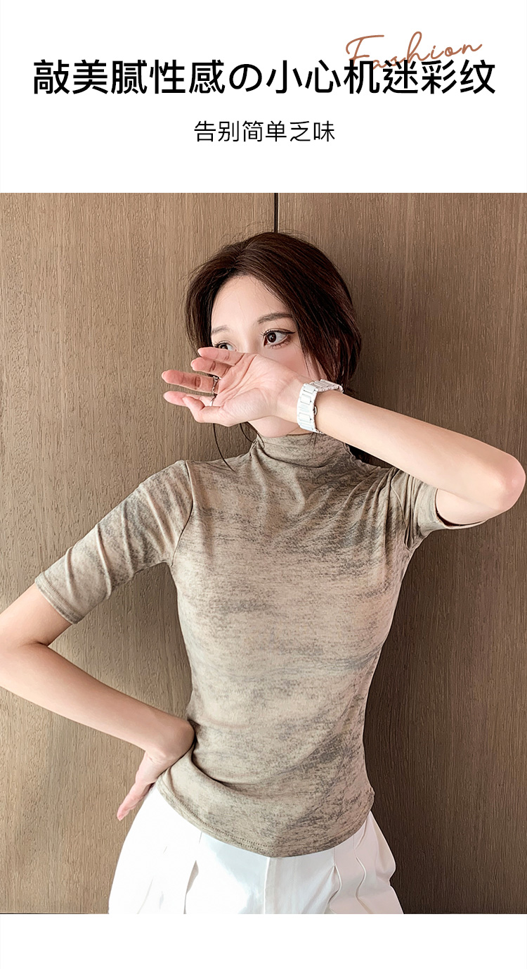 【小众设计感】时尚迷彩打底衫女洋气内搭修身显瘦打底t恤上衣女530迷彩短袖