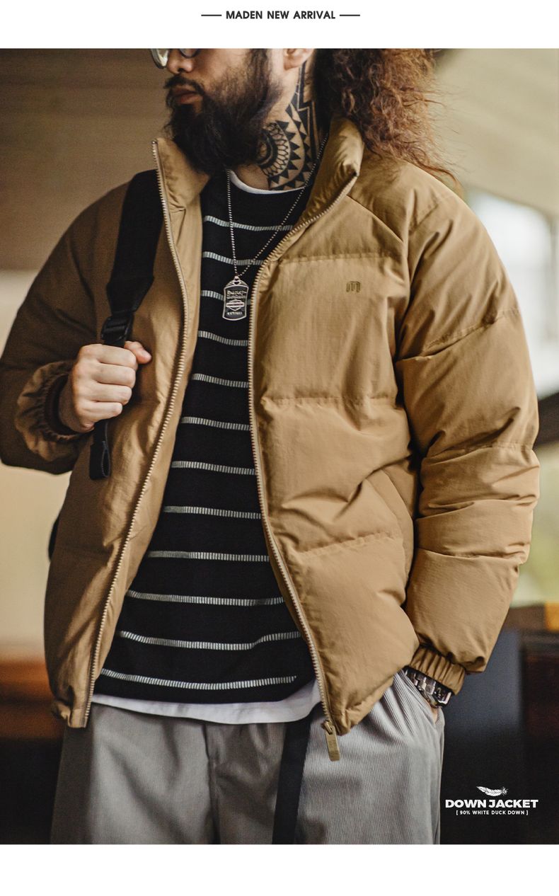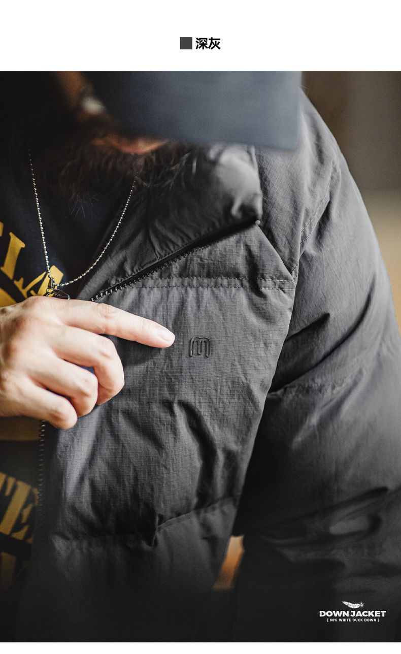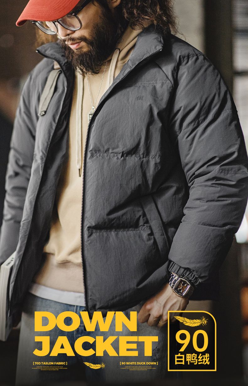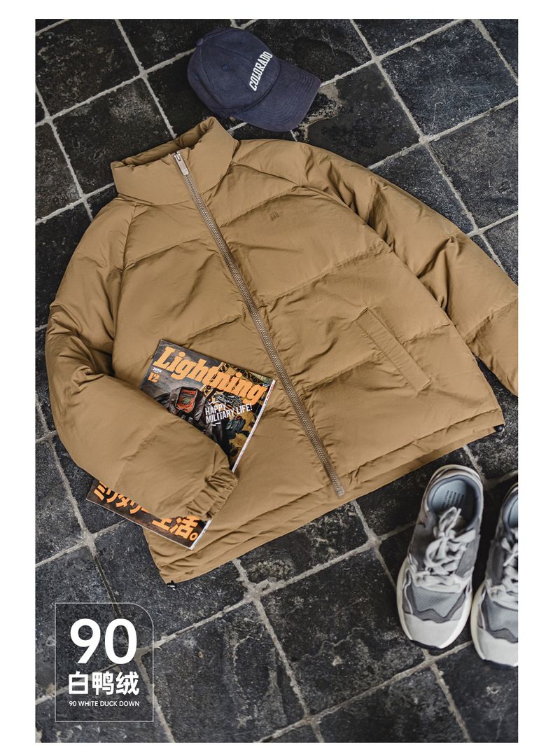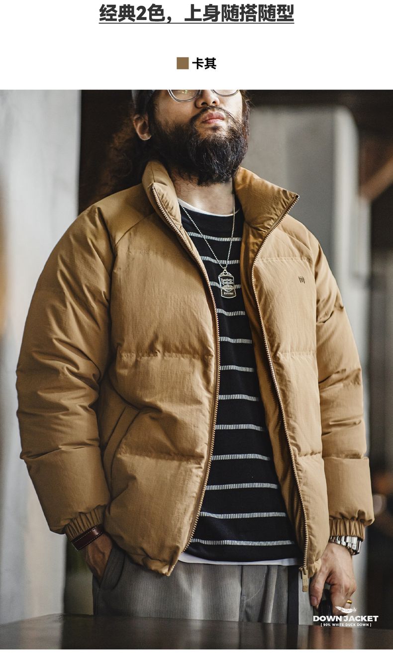 工装优选美式休闲立领90白鸭绒羽绒服户外防风面包服保暖外套男冬