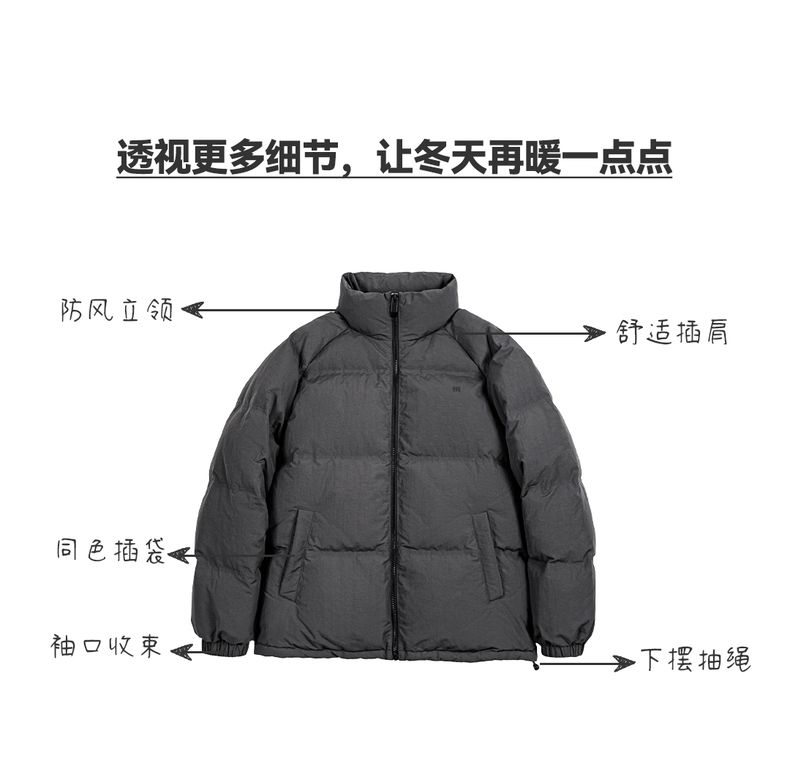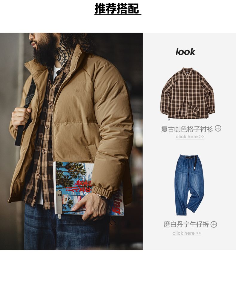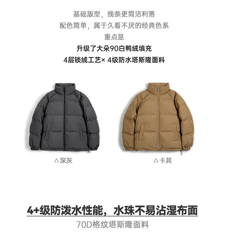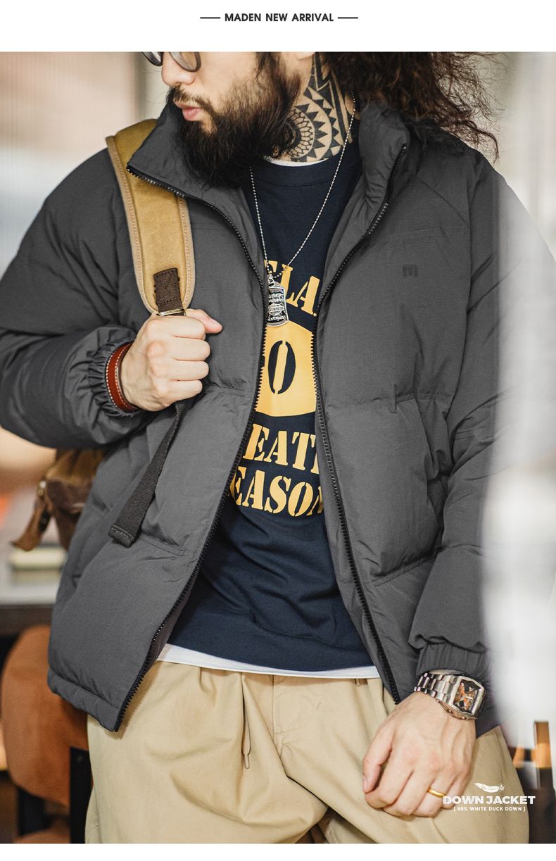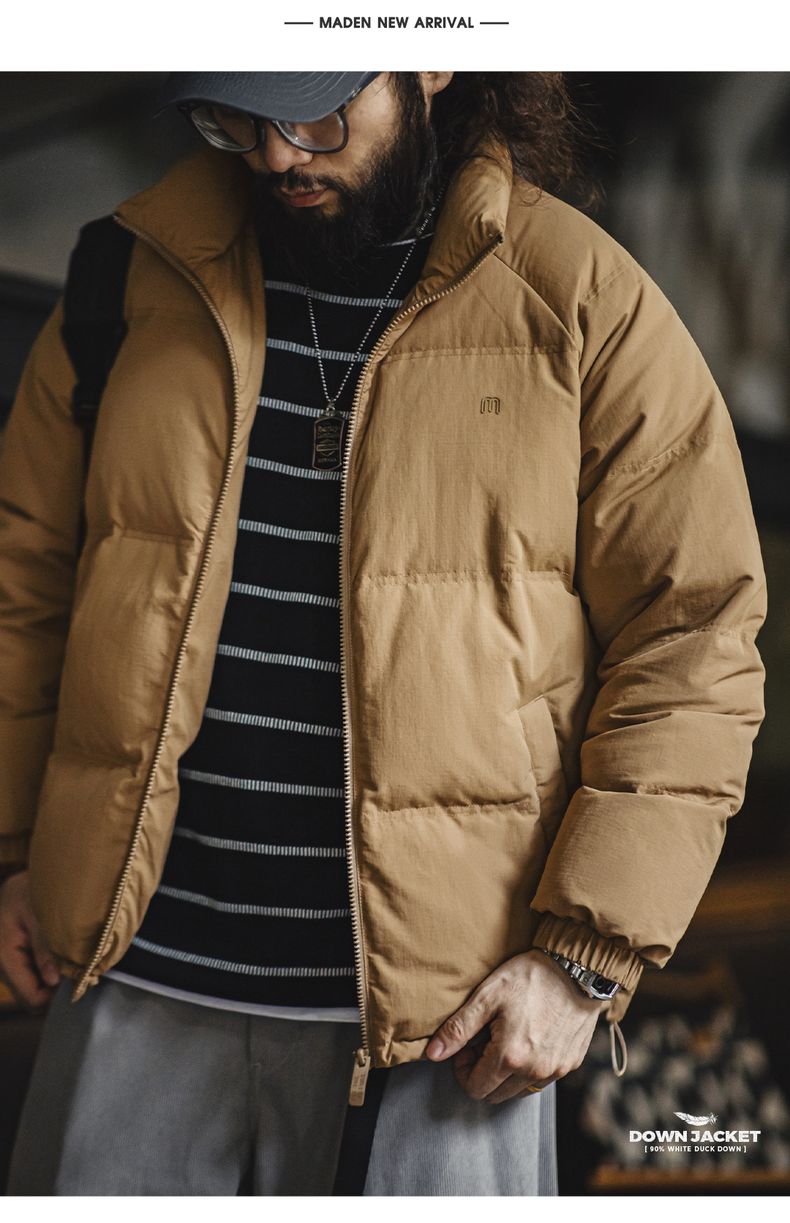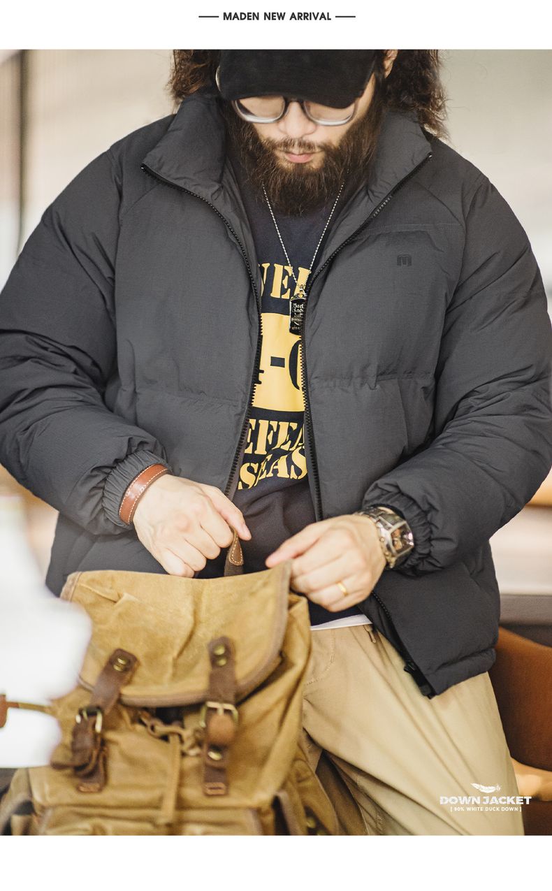 工装优选美式休闲立领90白鸭绒羽绒服户外防风面包服保暖外套男冬