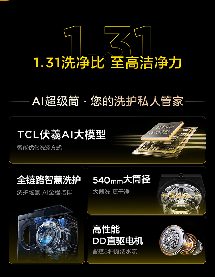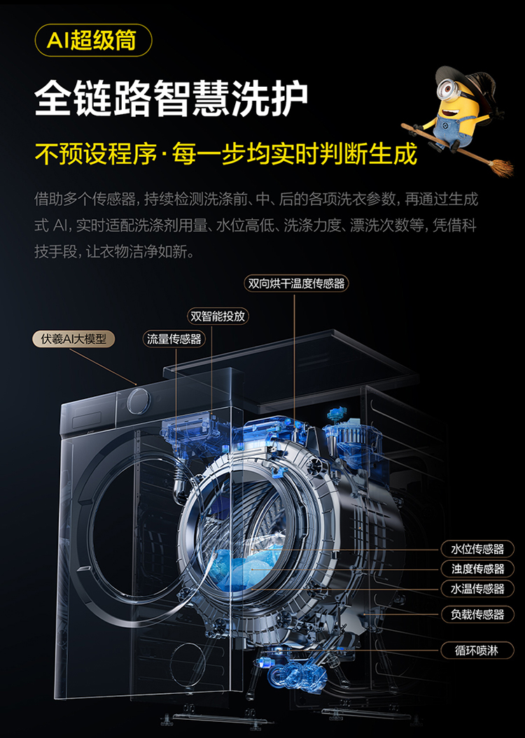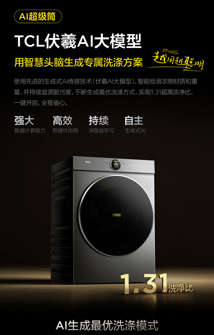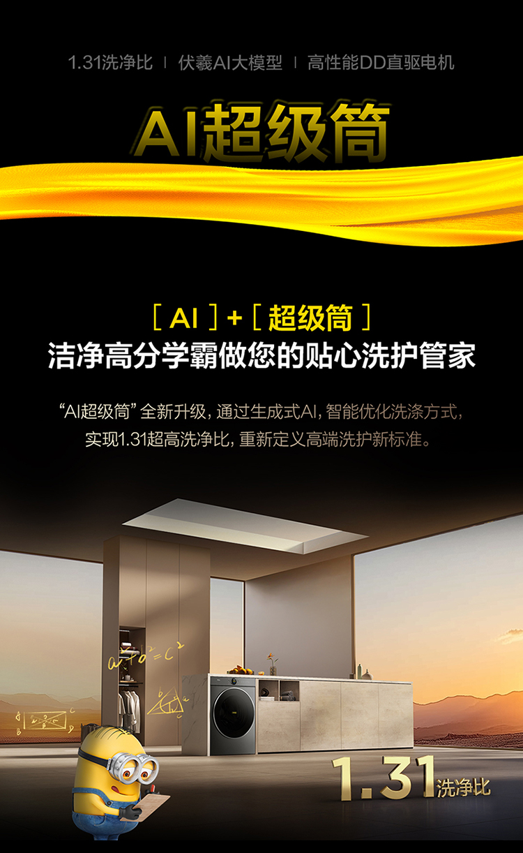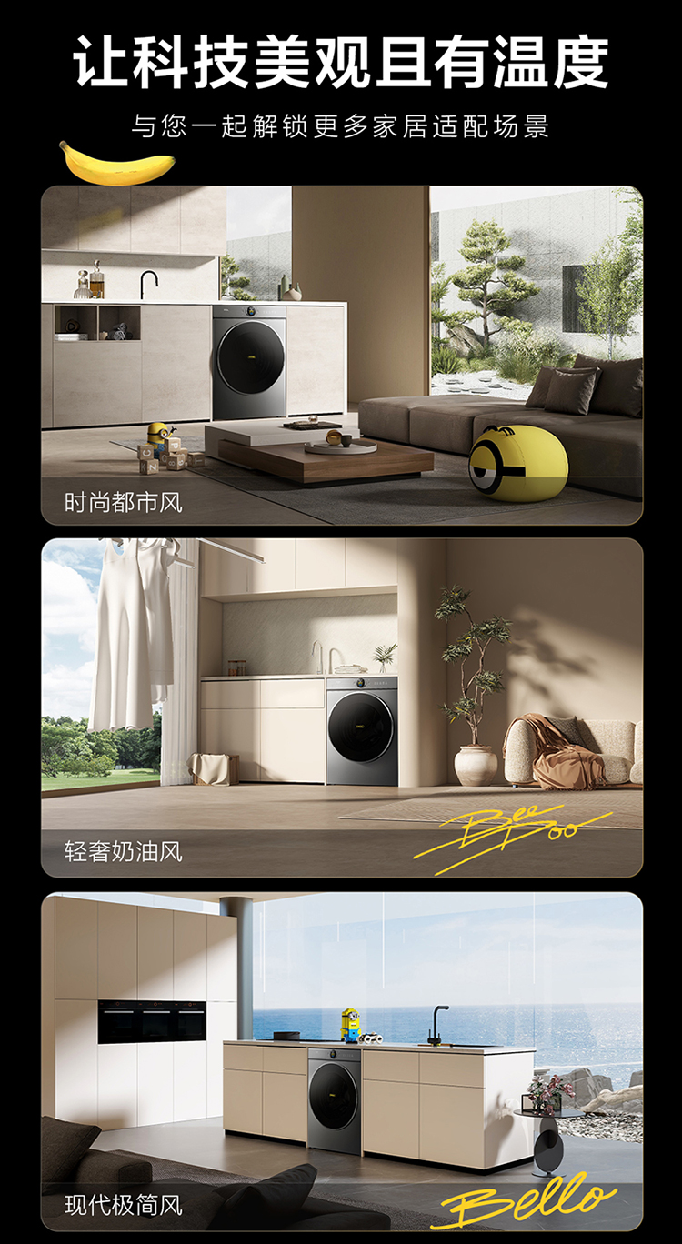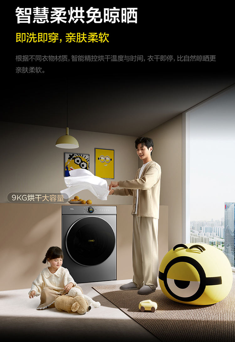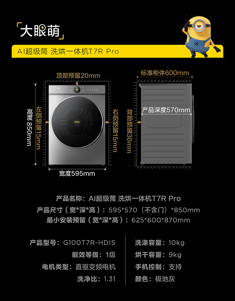 【新品上市】TCL小黄人·大眼萌AI超级筒T7R PRO 10公斤DD直驱洗烘一体 G100T7R-HDIS