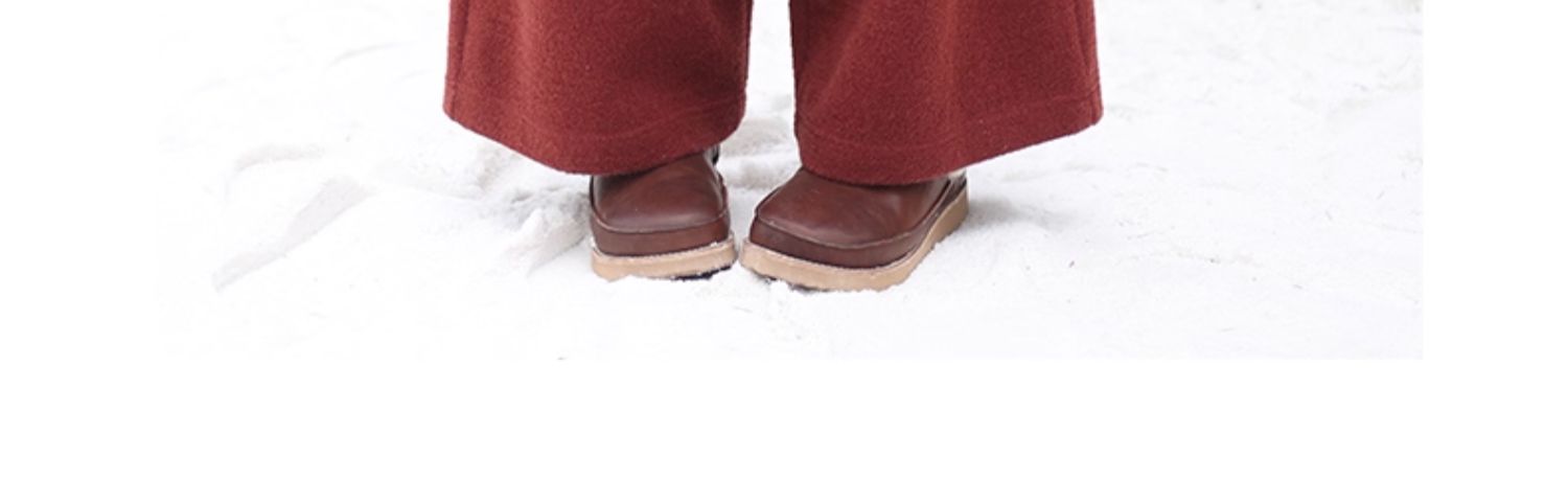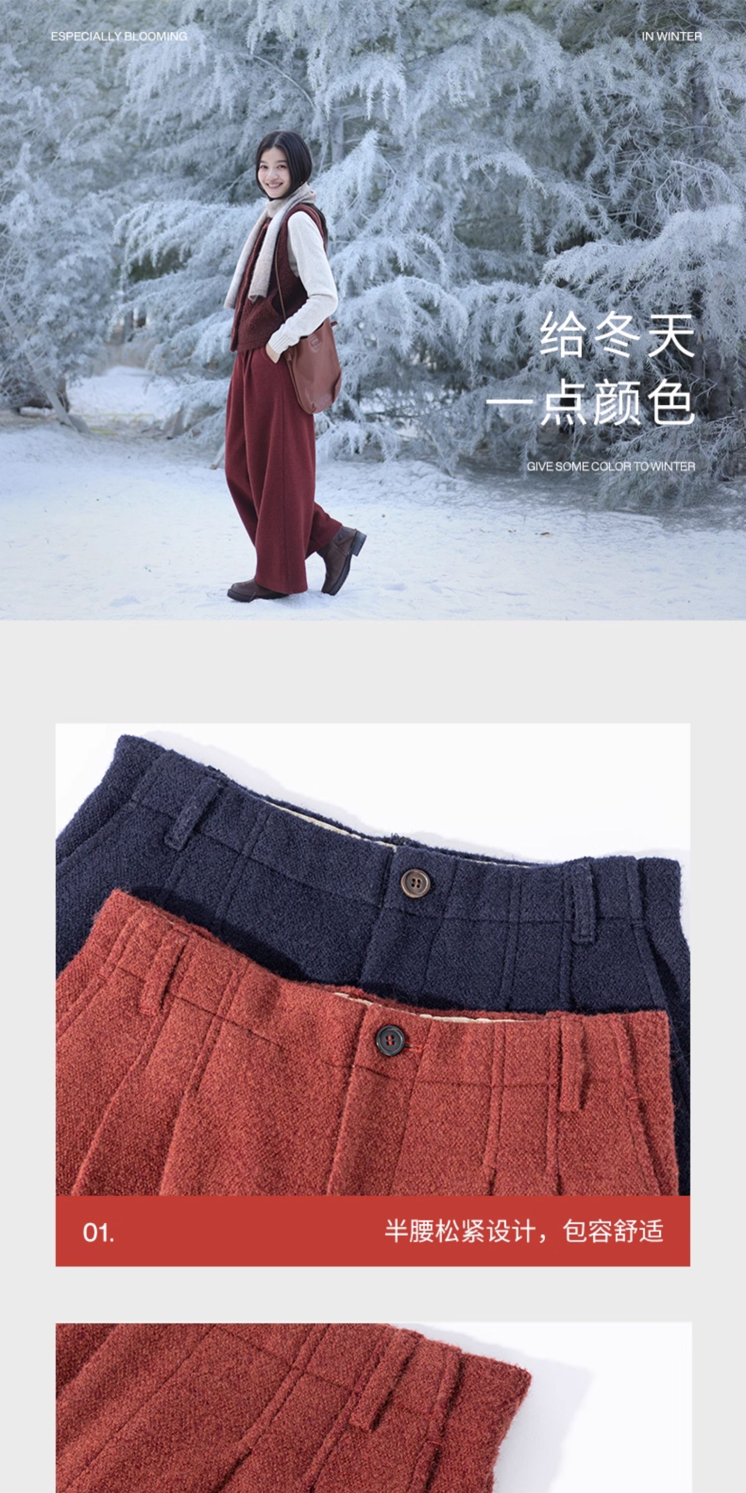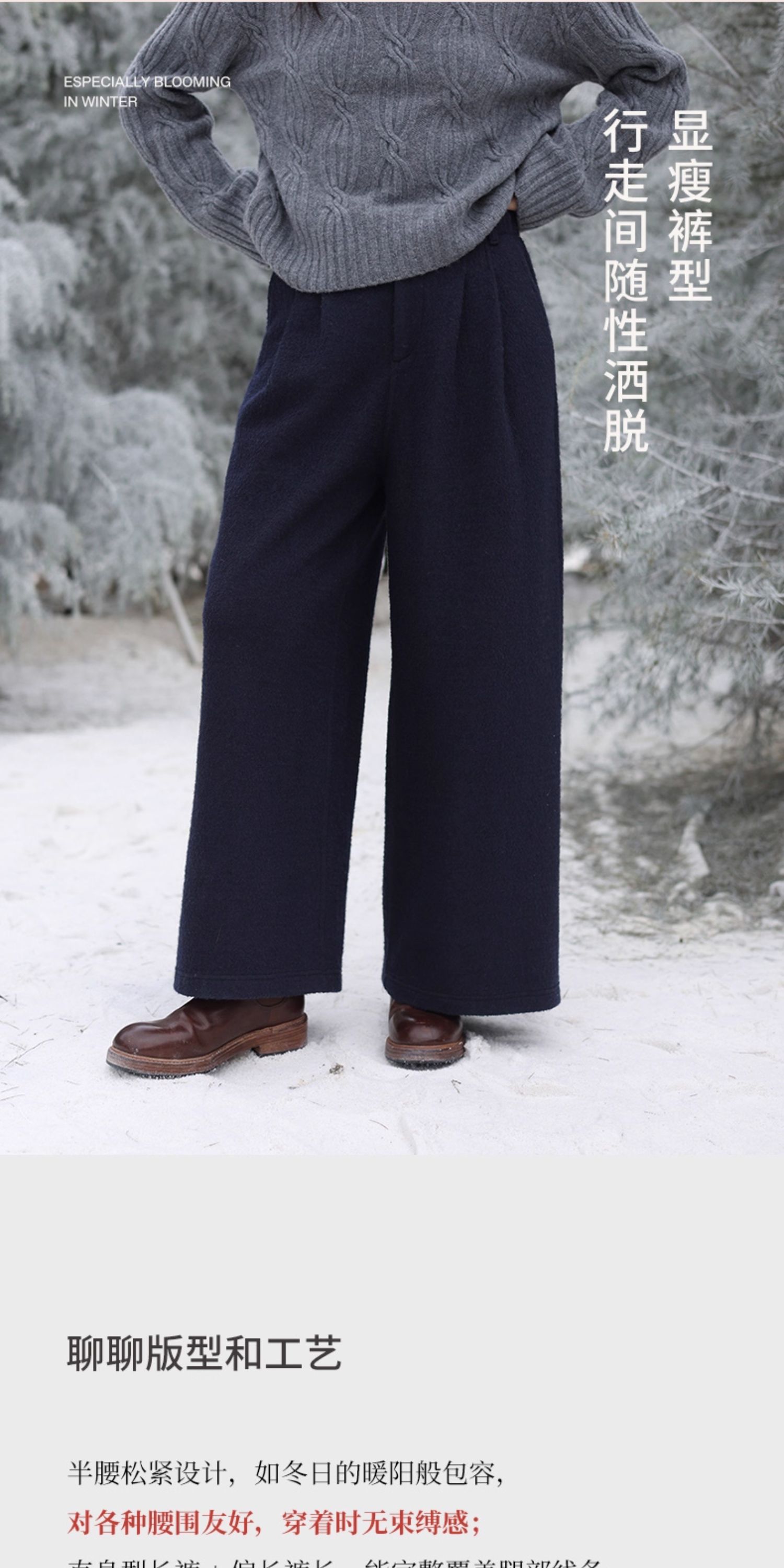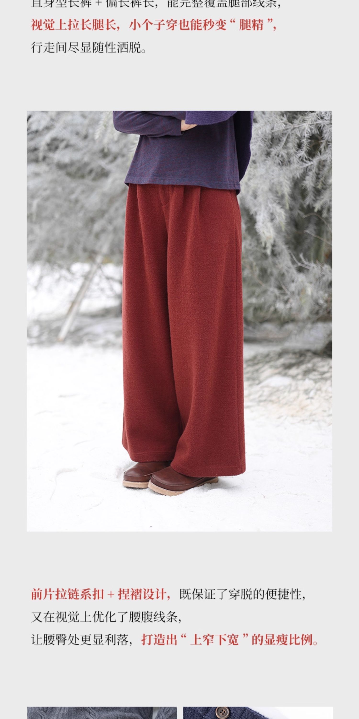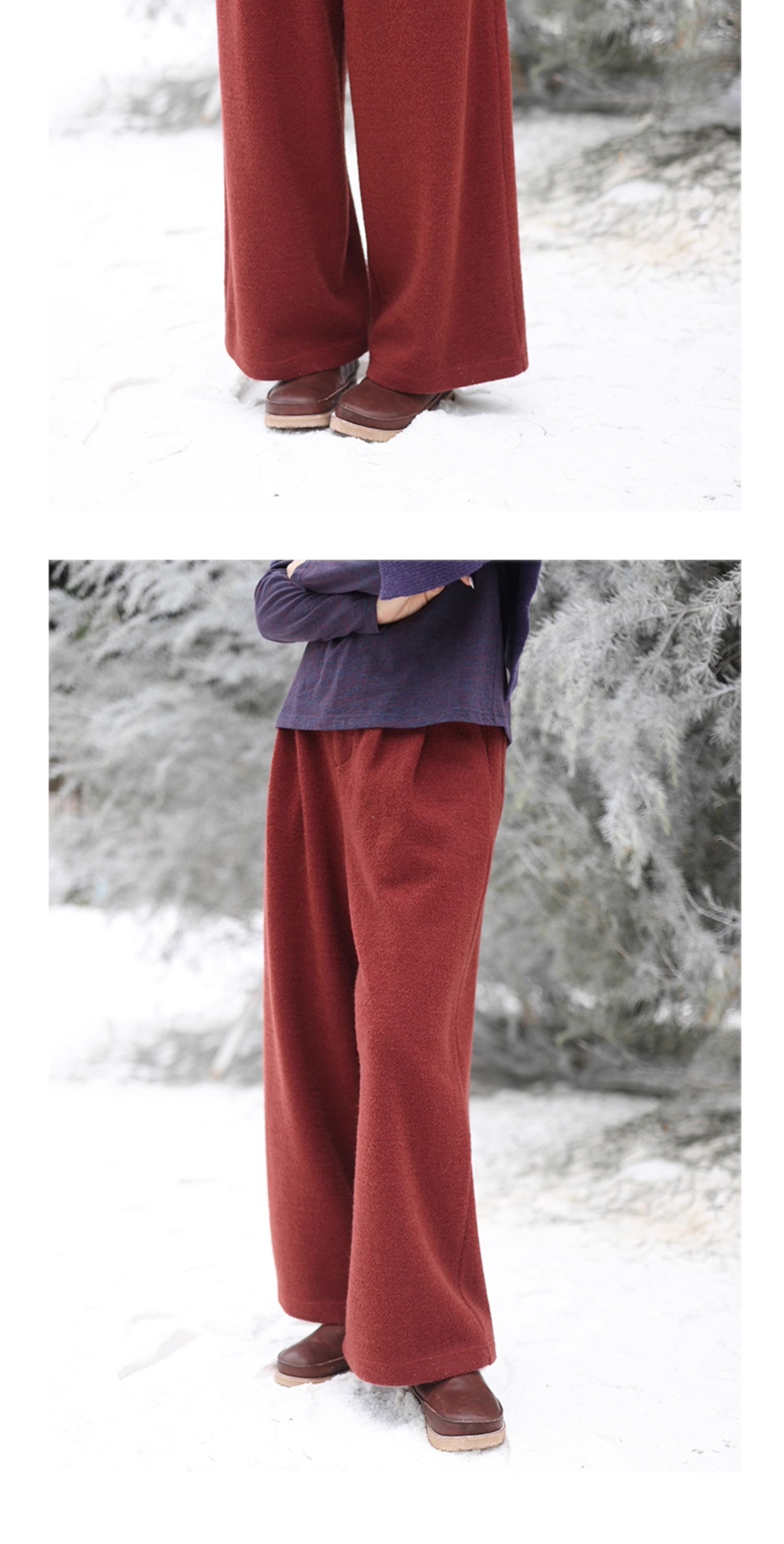 绽放726朵/热红酒·羊毛混纺针织毛呢半腰松紧捏褶休闲直筒长裤
